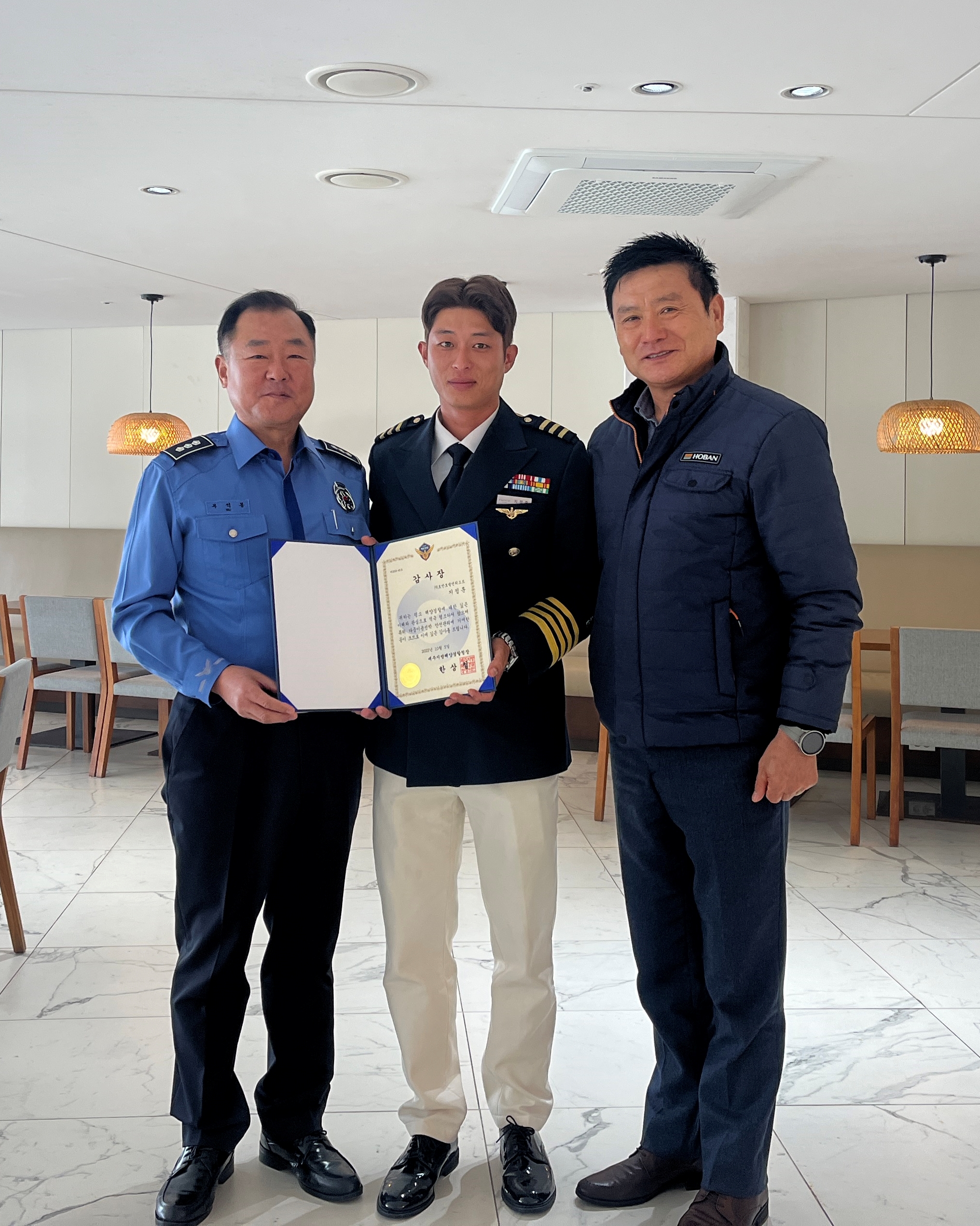호반호텔앤리조트 지정훈 선원은 지난 7월 주상절리 앞 해상 익수자 발생 시 해양경찰 수색업무에 협조하는 등 유선 안전관리에 적극 기여하였으며,