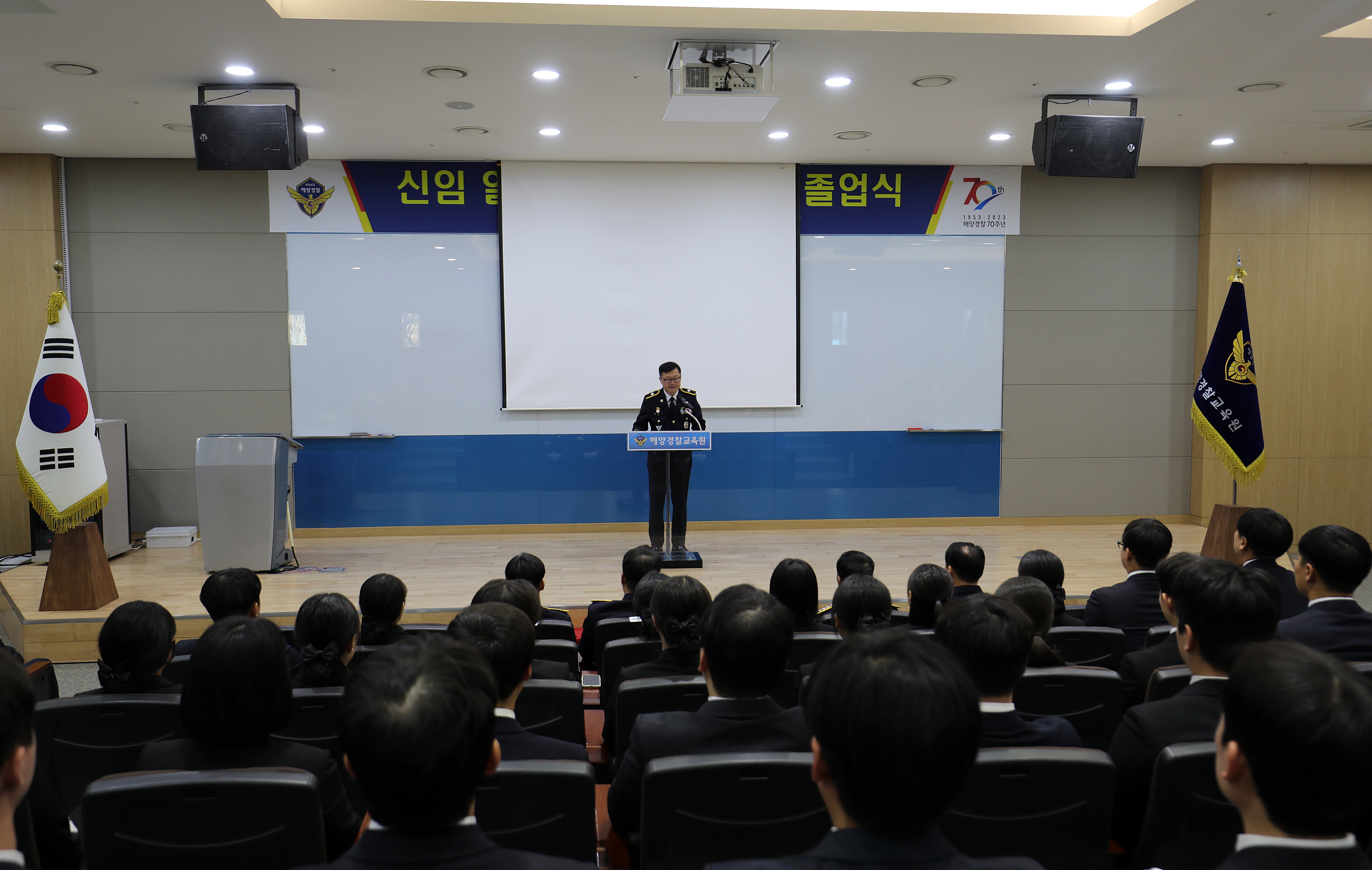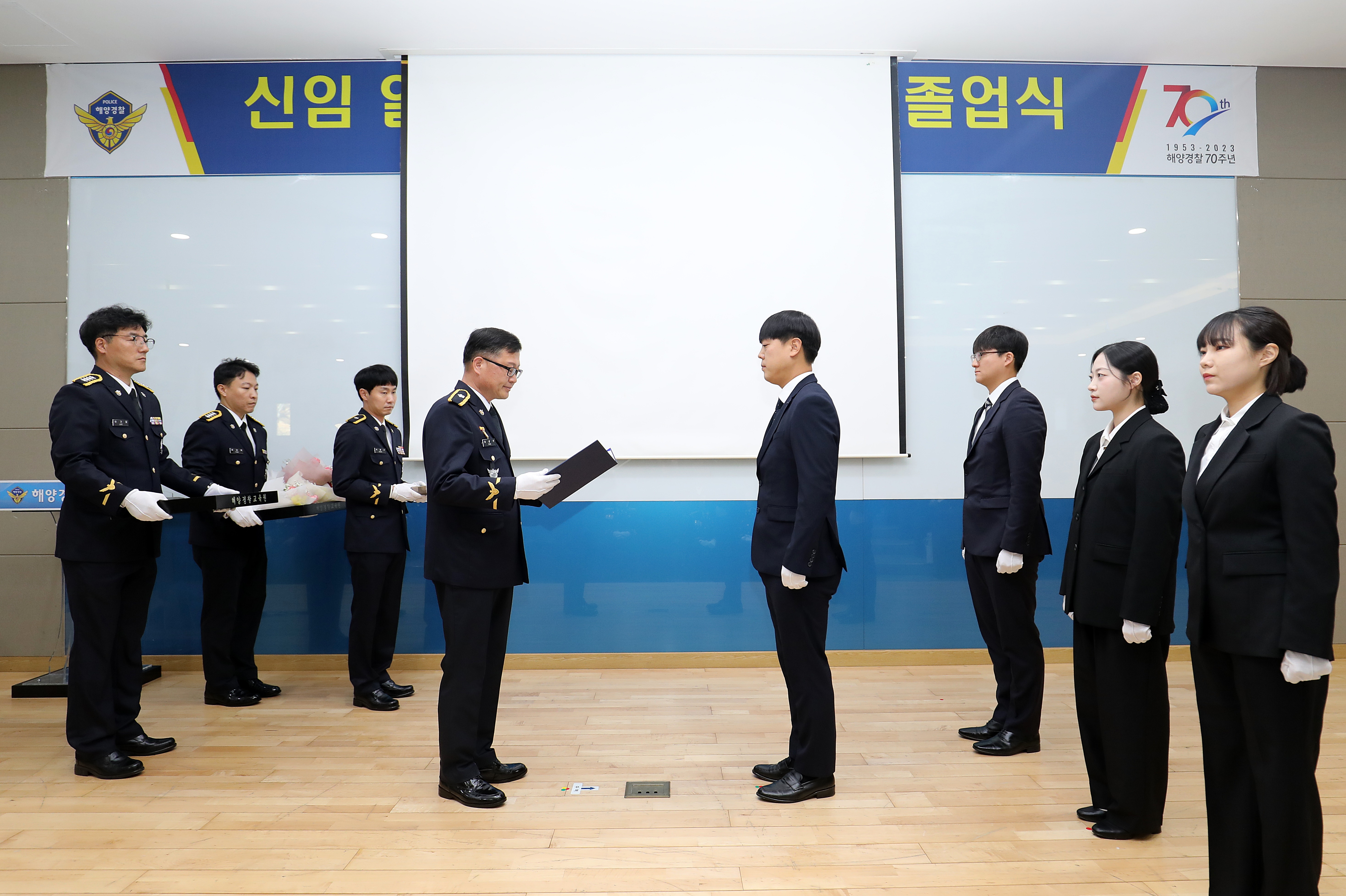 졸업생과 가족 등 110여 명이 참석한 가운데 신임 일반직 공무원(해양오염방제 과정) 38명에 대한