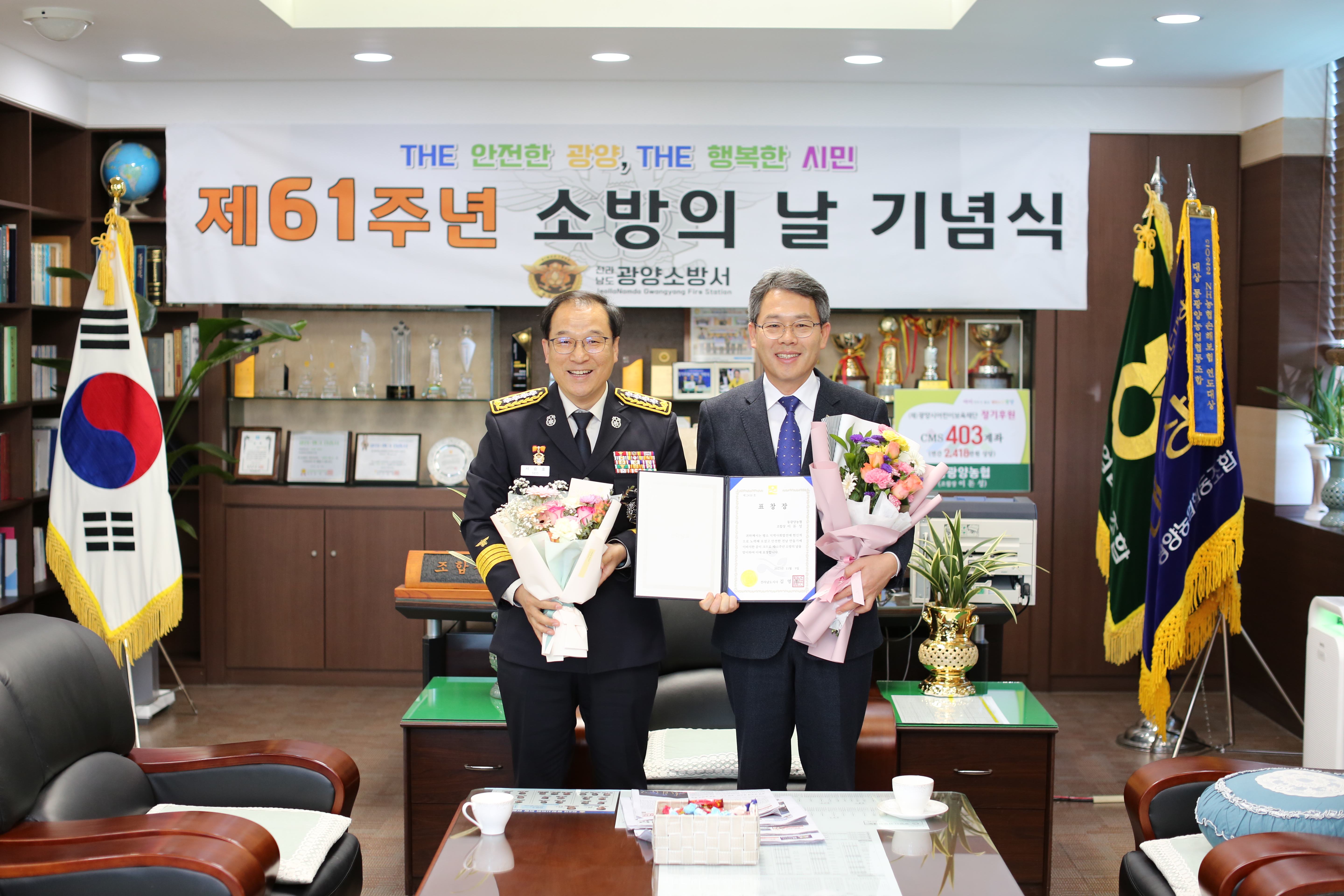 또한, 이돈성 조합장은 61주년 소방의 날을 맞이하여 안전한 전남 만들기에 이바지한 공을 인정 받아 김영록 전남도지사로부터 표창장을 수여했다.