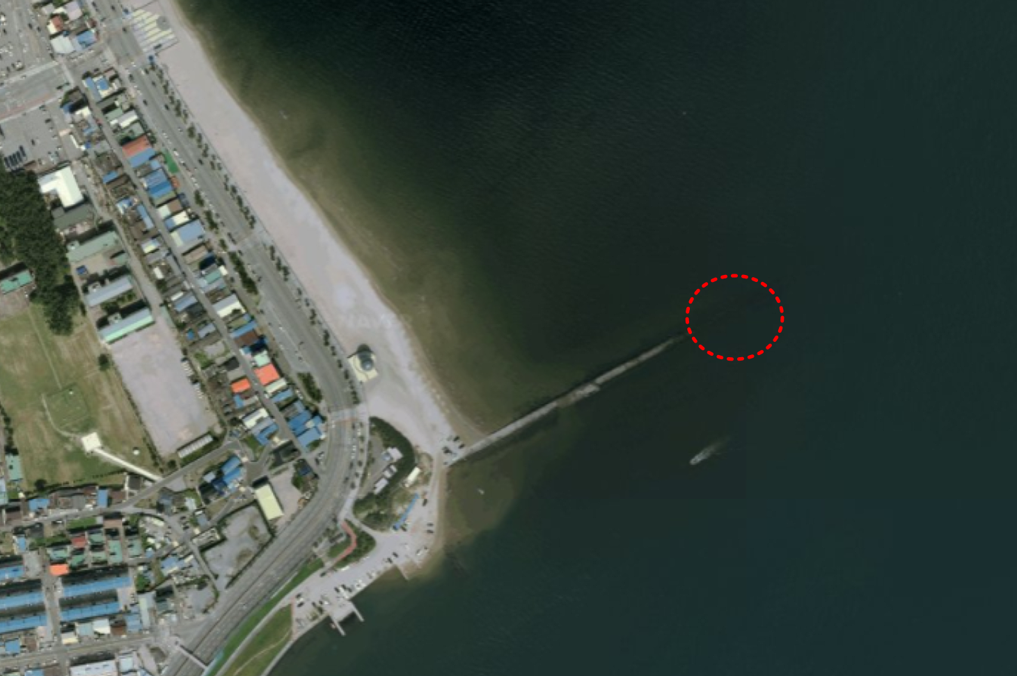 길이 약 100m의 석축이 설치되어 있고 이 끝단은 수면 아래에 있는데다