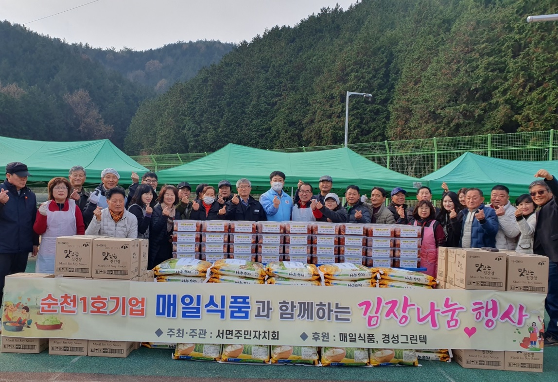2013년부터 올해로 11회를 맞이하는 본 행사는, 순천 서면산단 입주 기업체인 매일식품 주식회사에서 절임배추와 양념 등 김장재료 및 매일식품 진간장(36박스)을, 또 경성그린텍에서 백미(20kg, 60포대)를 후원하여 총 약 1,000만원 상당의 온정의 손길이 모여 이루어졌다.