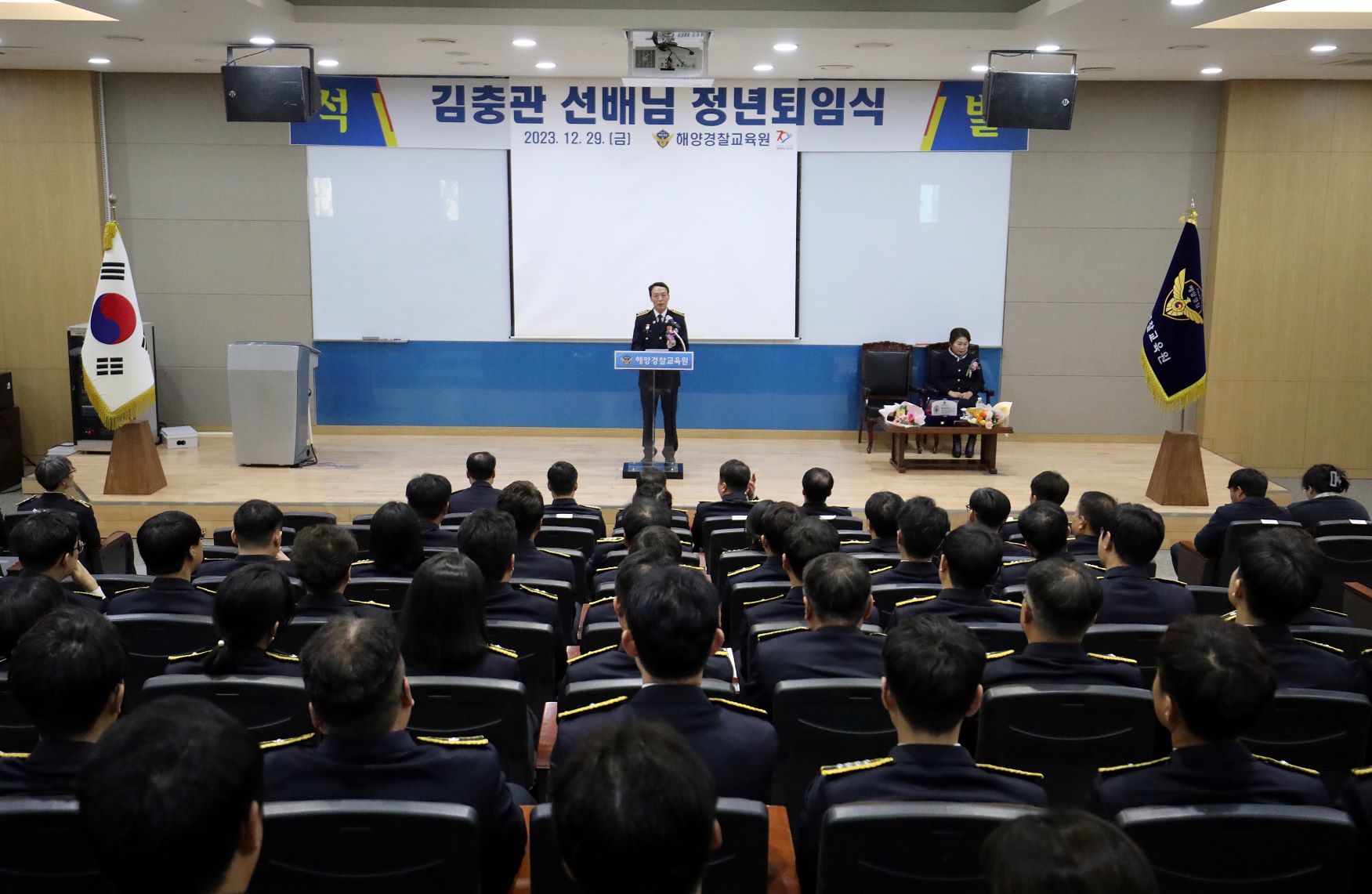해양경찰교육원(원장 여성수)은 29일 오전 소강당에서 김충관 총경의 정년퇴임식을 가졌다고 밝혔다.