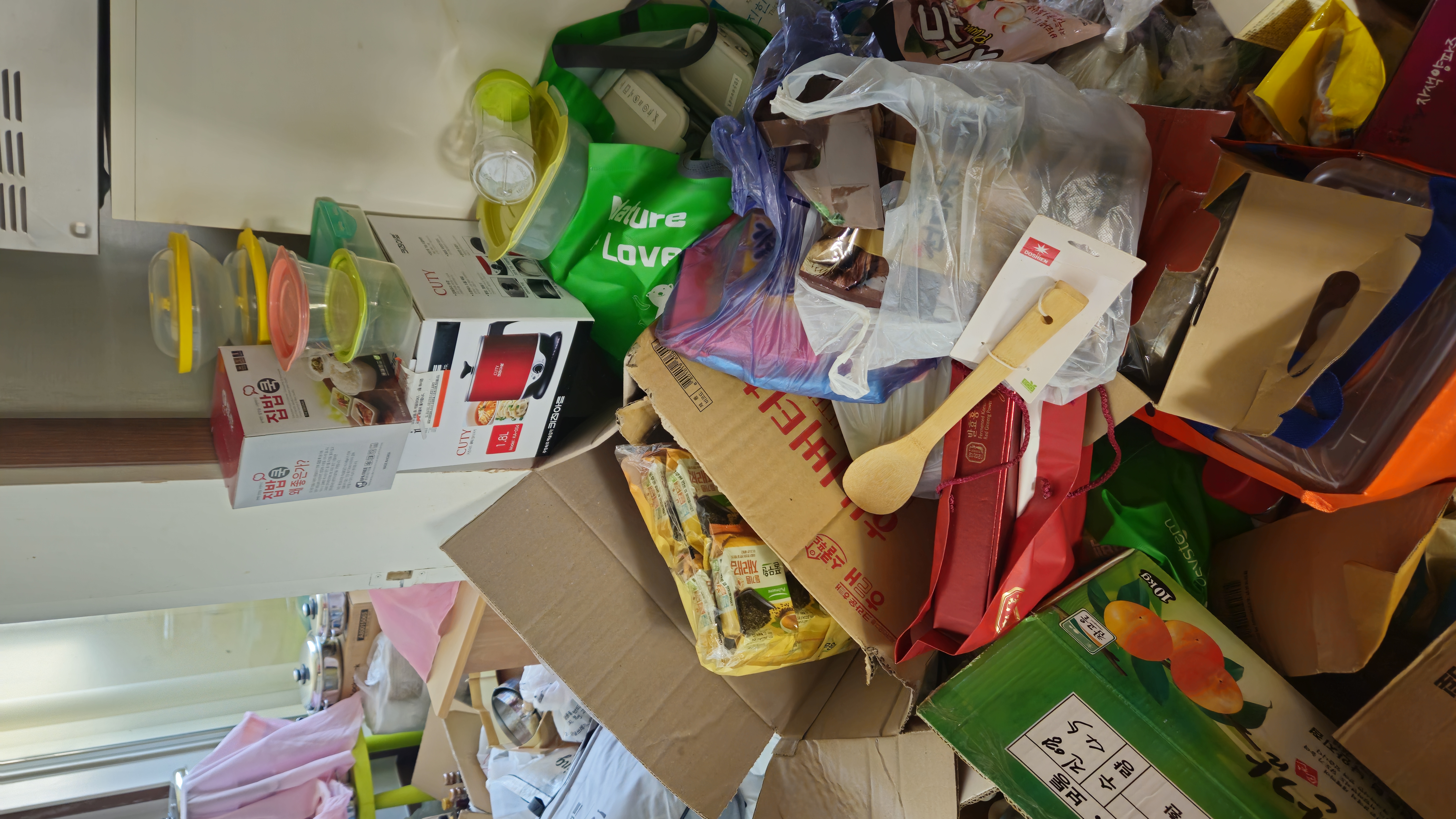 사용하지도 않는 물건이나 유통기간이 지나서 냄새가 나는 물건도 버리지 못하게 하여 집안 정리정돈 해주는 사이 맛있는 식사를 대접해주고 커피도 사준다고 집밖으로 유도해서 광양읍 맞춤형복지팀과 주거환경 재능기부 활동을 꾸준히 해주신 (유)우주환경과 함께 대상자가 돌아 올까봐 쉬지도 못하고 지독한 악취를 맞아가면서 집안 정리정돈으로 산더미 같은 쓰레기 약2톤 정도를 치우자 집안이 한결 밝고 넓어졌다.