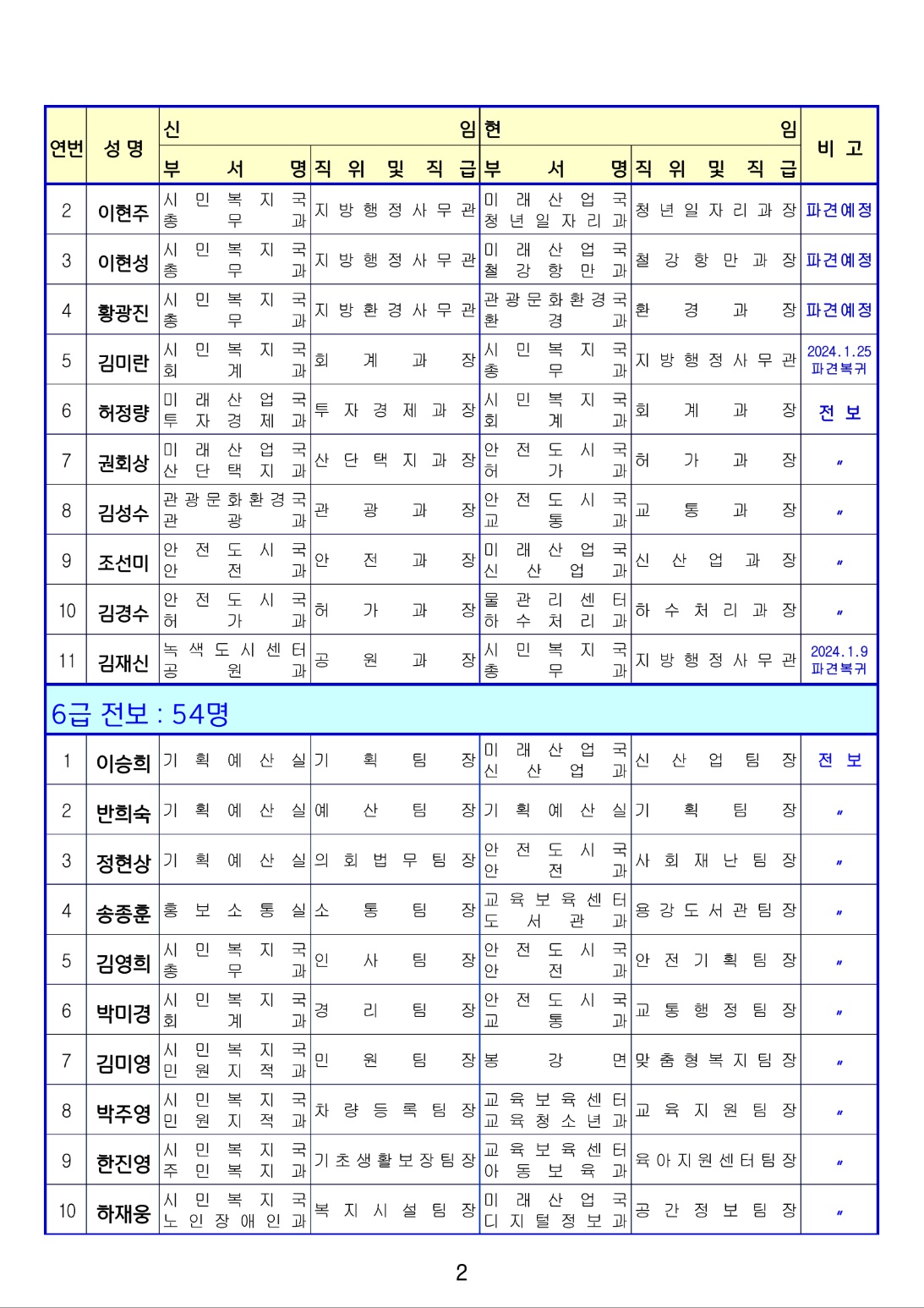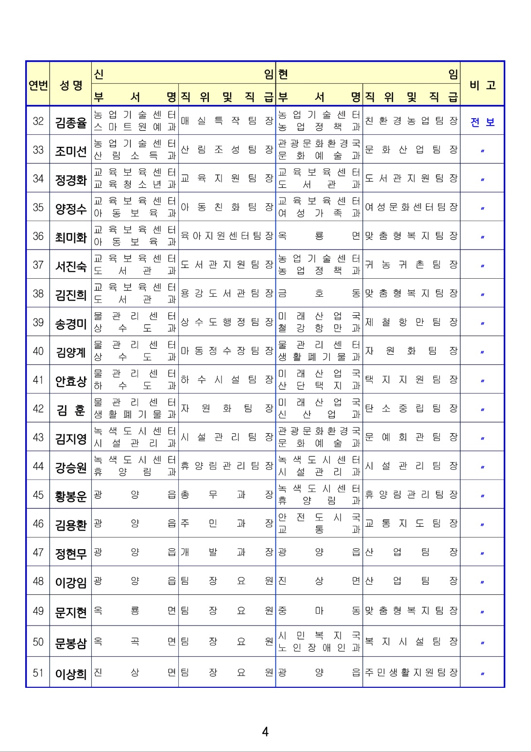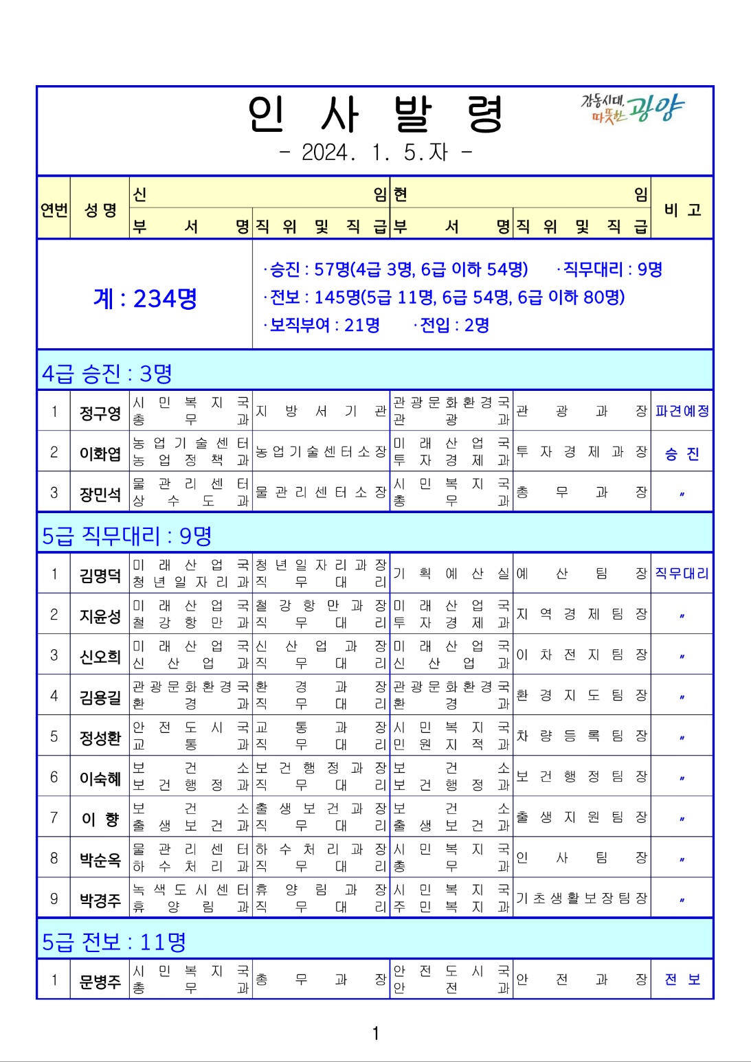 [광양] 유경열 대표기자=광양시는 금일(1월4일) 상반기 인사발령를 단행 발표하였다. (총12 페이지)