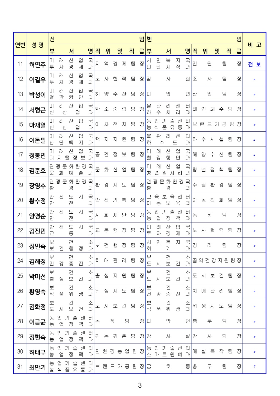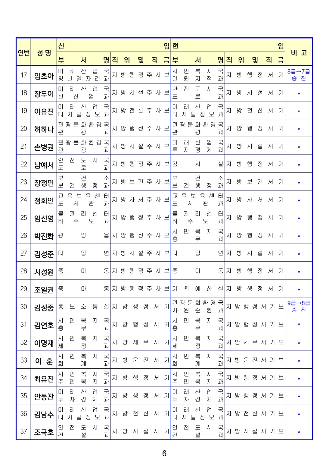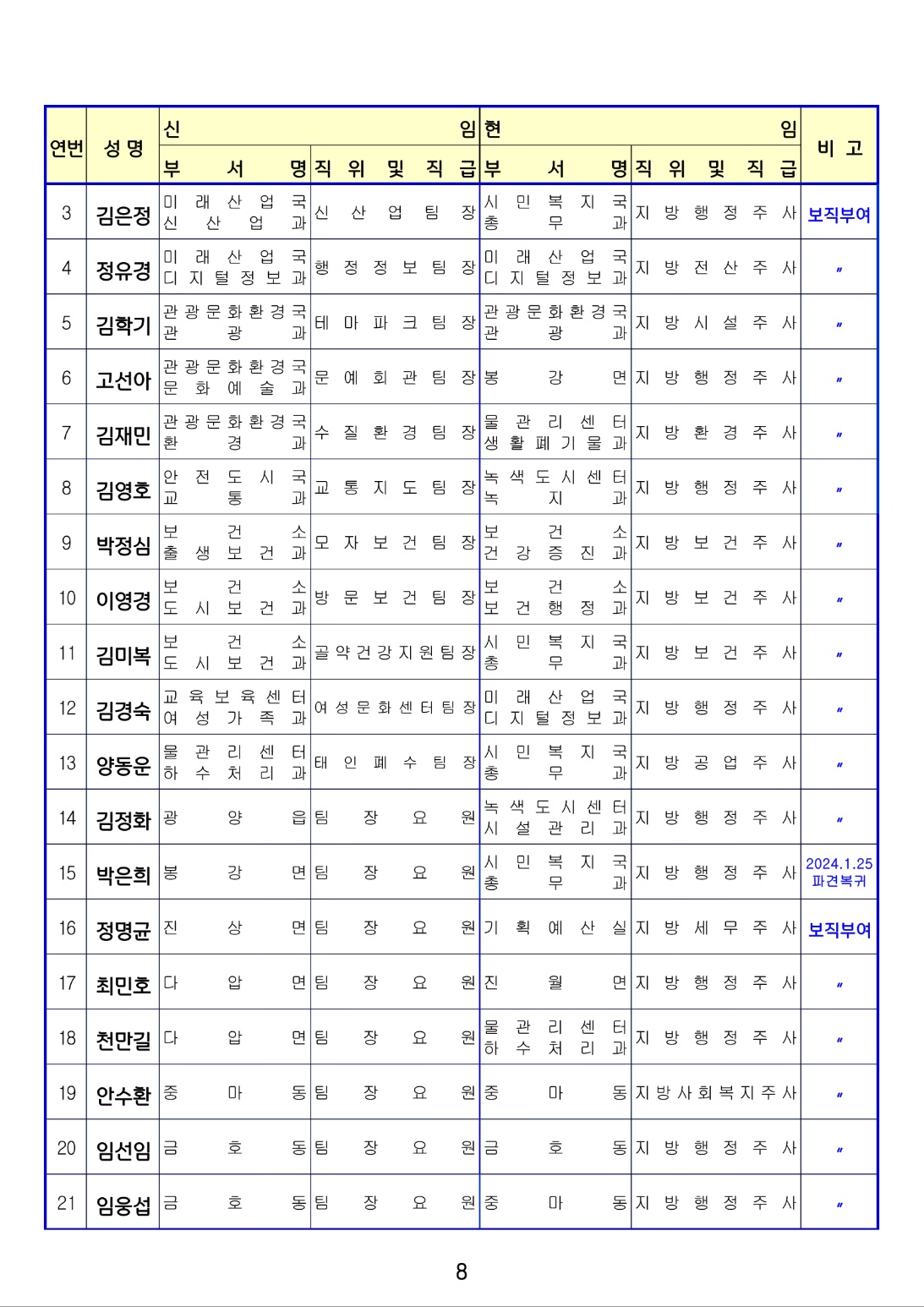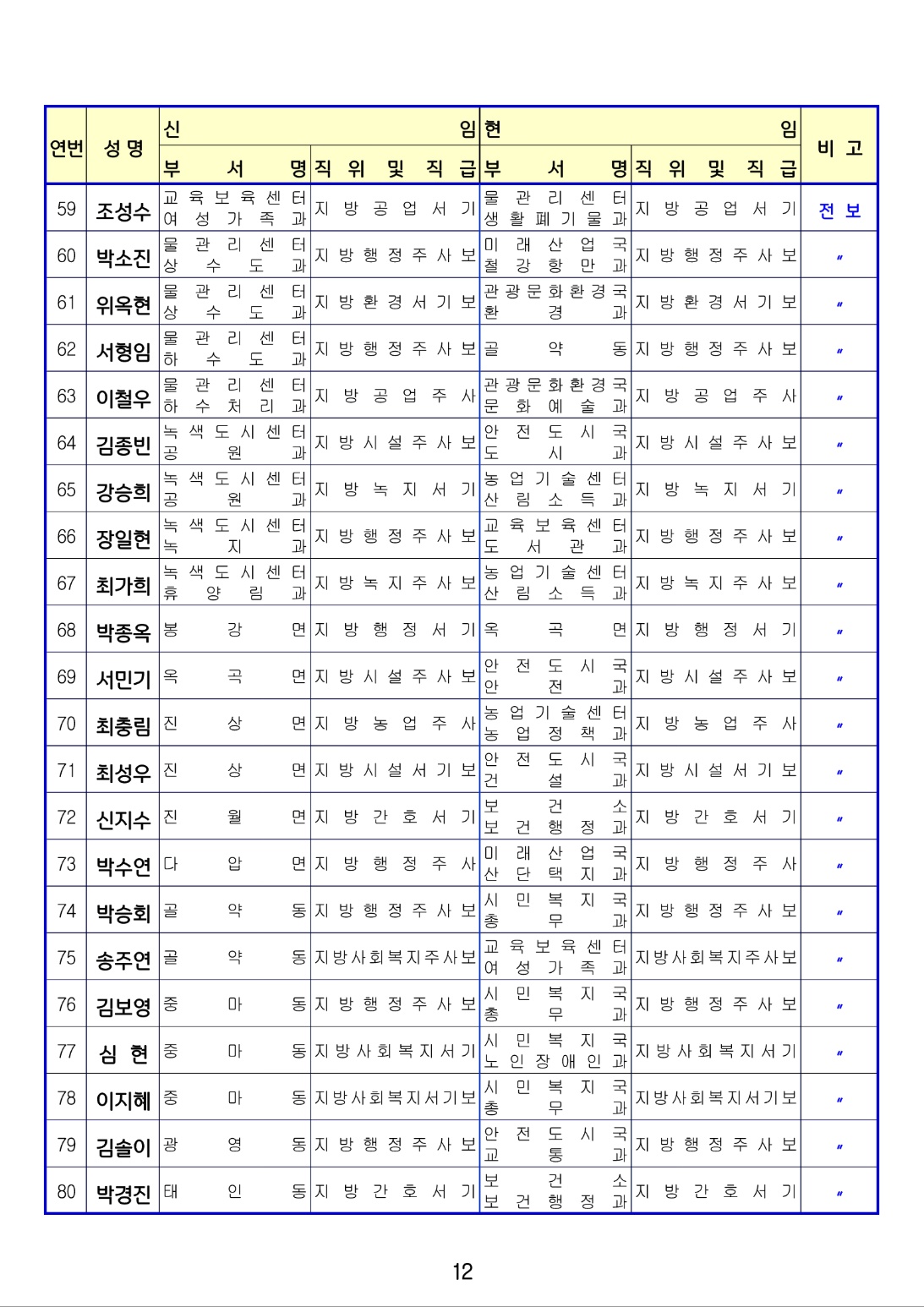 [광양] 유경열 대표기자=광양시는 금일(1월4일) 상반기 인사발령를 단행 발표하였다. (총12 페이지)