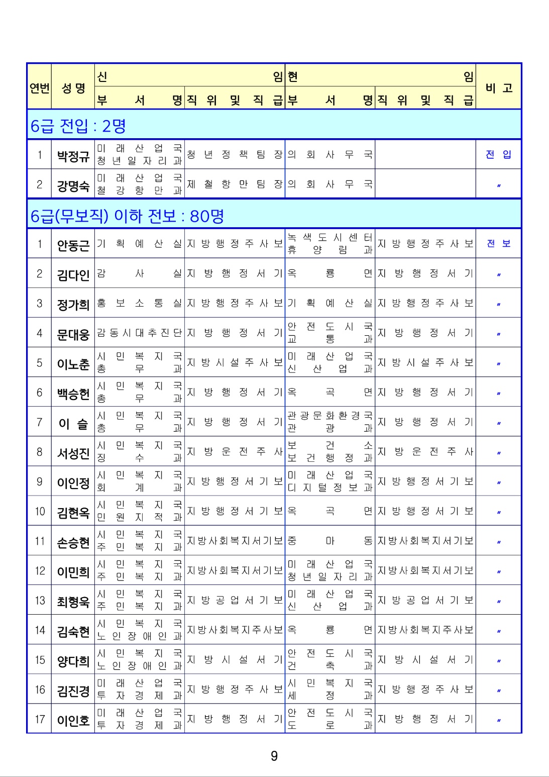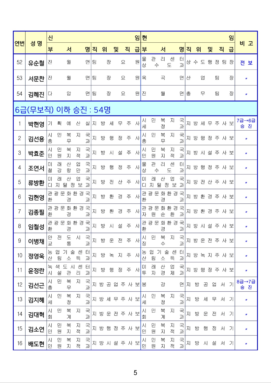 전보 : 145명(5급 / 11명. 6급 / 54명. 6급이하 / 80명)