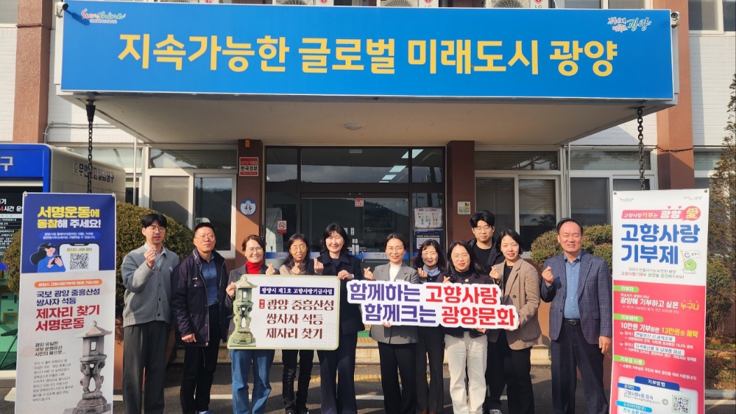 봉강면 직원은 광양시 고향사랑기부제 기금 제1호 사업인 ‘국보 광양 중흥산성 쌍사자 석등 제자리’ 찾기 사업이 반드시 성공해 쌍사자 석등이 시민의 품으로 돌아올 수 있도록 한마음으로 염원했다.