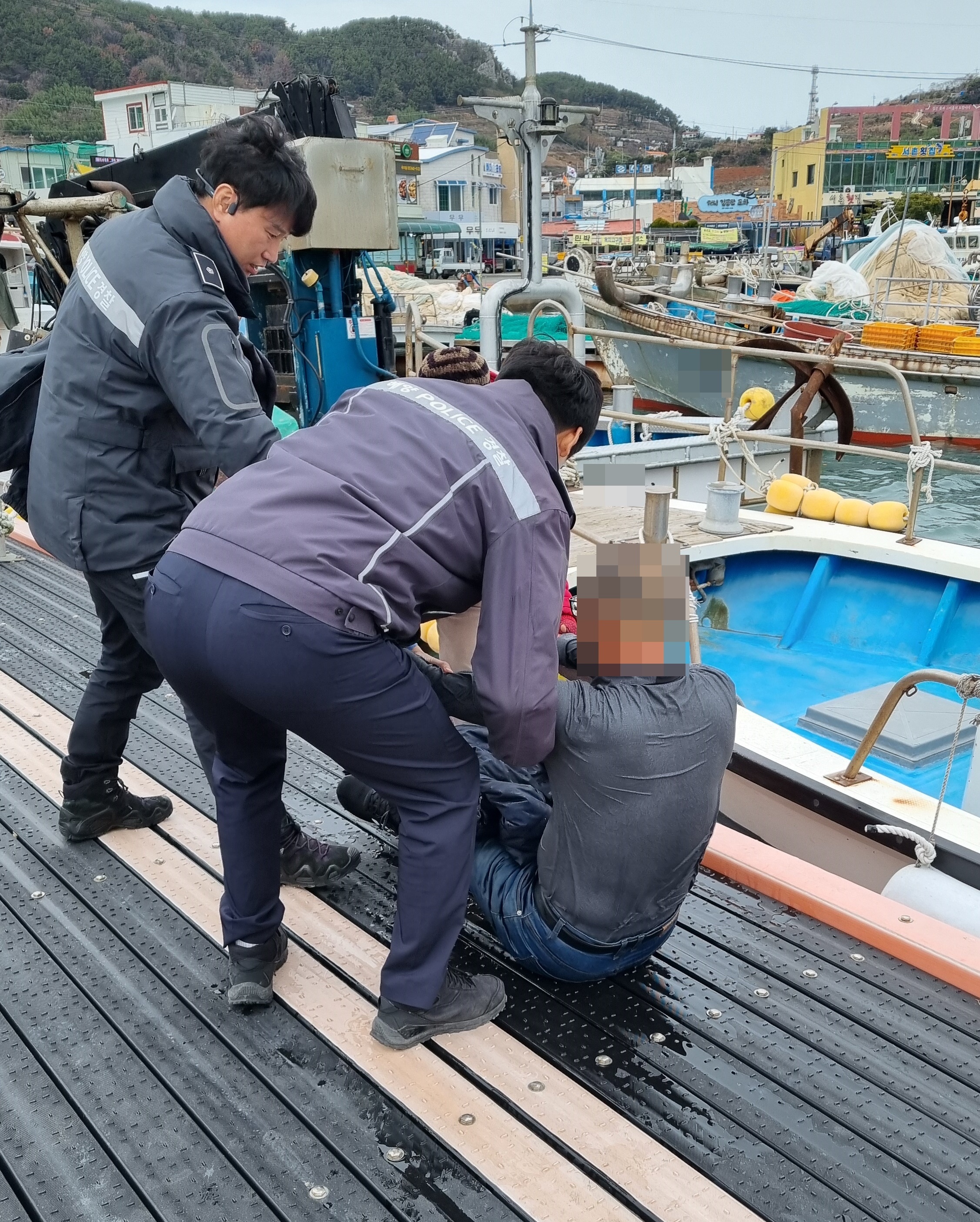 이때, 소내근무중이던 통영해경 욕지출장소 경찰관은 어디선가 소리가 들리는 것을 인지하여 주변을 살펴보다가 바다에 빠져 허우적대는 A씨를 발견, 긴급구조하였다.