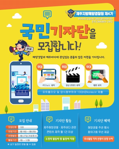 제주지방해양경찰청(청장 한상철)에서는 제주해양경찰의 주요 정책과 다양한 활동상을 국민에게 알리는 역할을 담당...