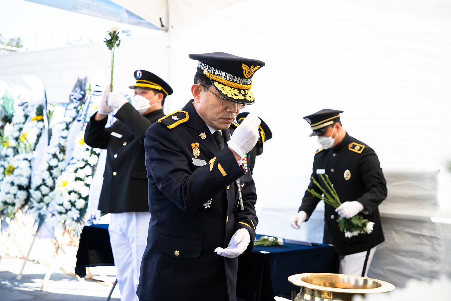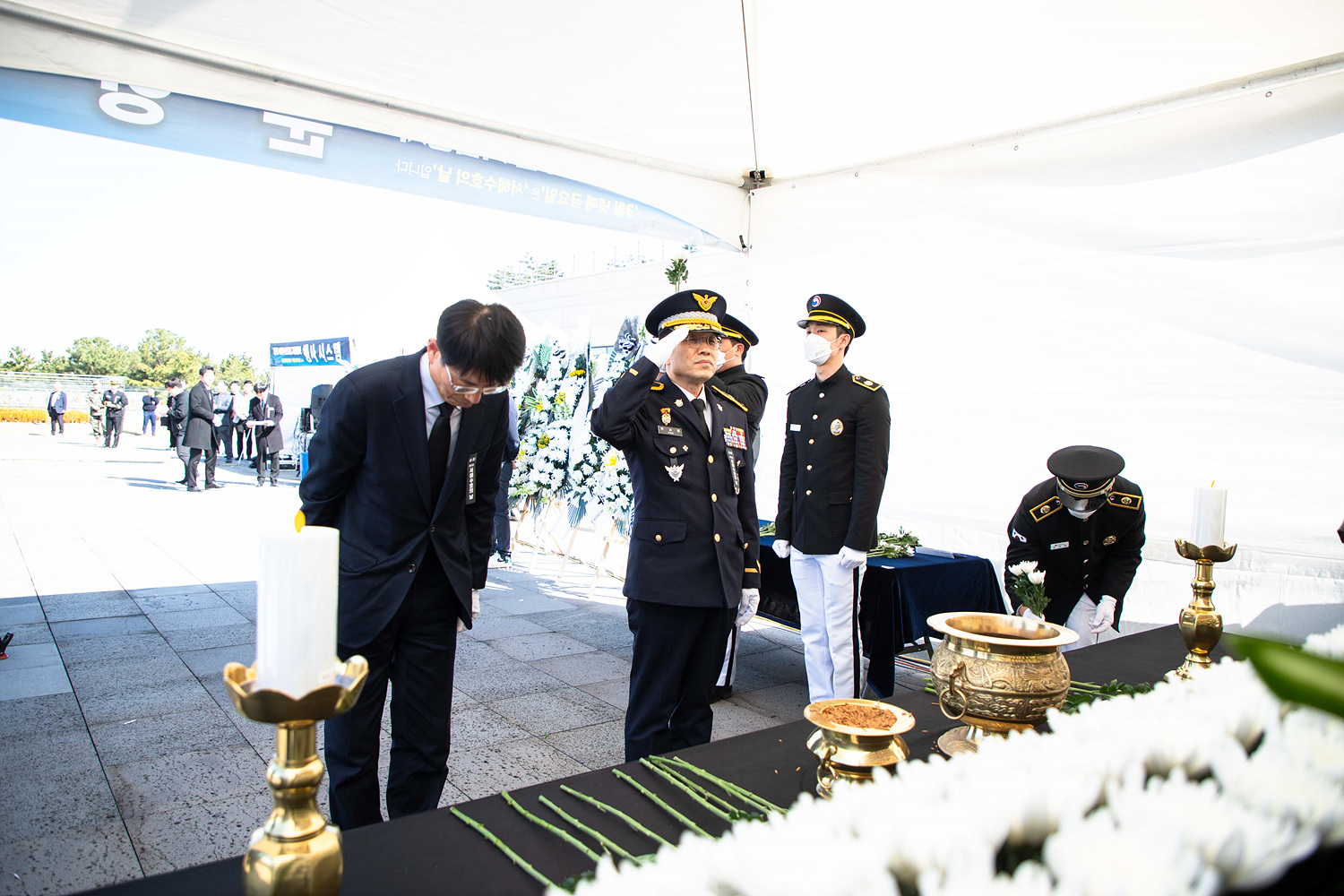 이번 기념식은 오전 10시부터 한시간 동안 국립제주호국원 현충광장에서 제주지방해양경찰청장(한상철) 비롯 도지사, 주요 기관장, 보훈·안보단체, 장병 등 350여 명이 참석한 가운데,