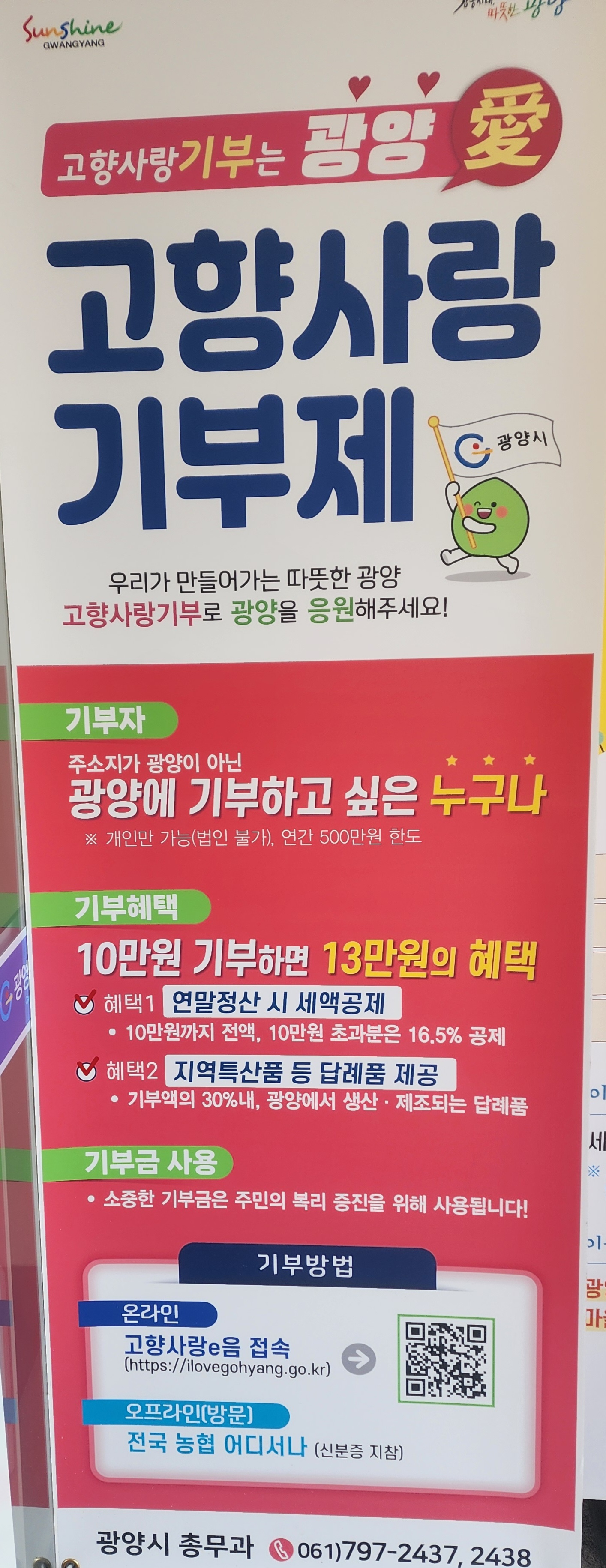 신희섭 광영동장은 “고향사랑 기부에 동참해 준 양 이․통장회원들에게 감사드린다”며 “고향사랑 기부제로 받은 소중한 마음은 지역 균형발전과 상생협력을 위한 소중한 밑거름이 될 것”이라고 전했다.