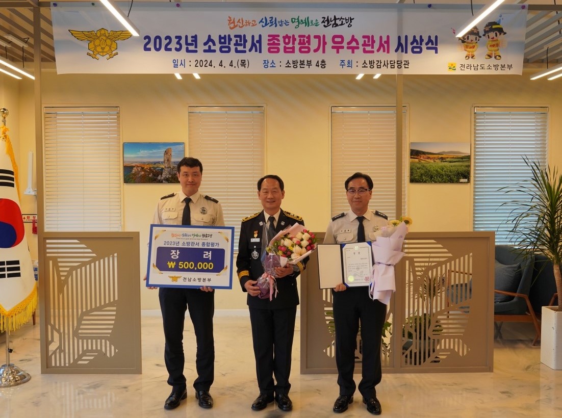 [해륙뉴스1]=서정민기자.광양소방서(서장 정강옥)는 4일 전남소방본부(본부장 홍영근)에서 진행된 ‘2023년 수행 소방관서 종합평가’에서 A그룹 장려상을 수상했다고 밝혔다.