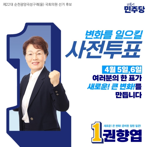 제22대 국회의원선거를 위한 사전투표가 5일부터 이틀 간 전국적으로 실시될 가운데 더불어민주당 권향엽 국회의...