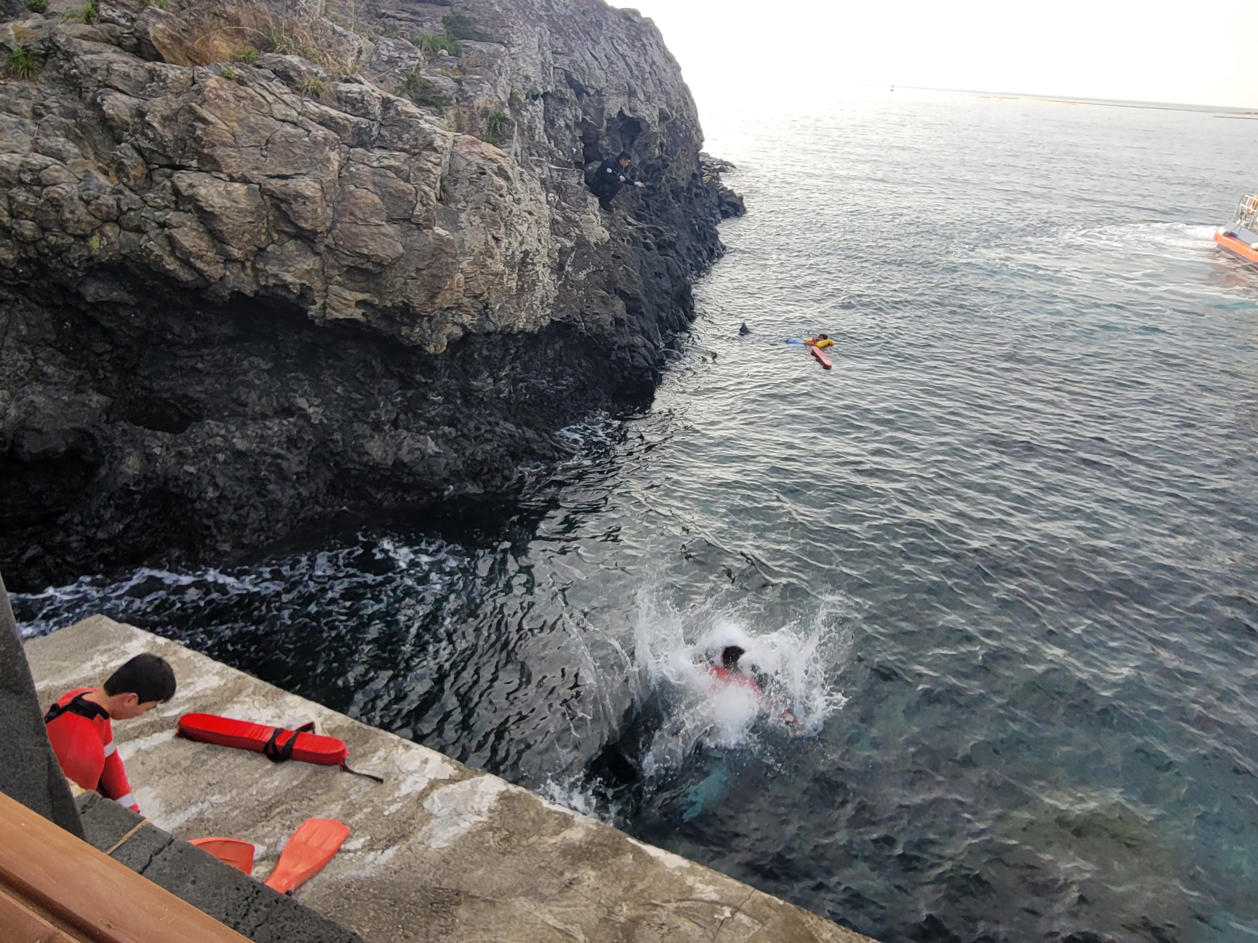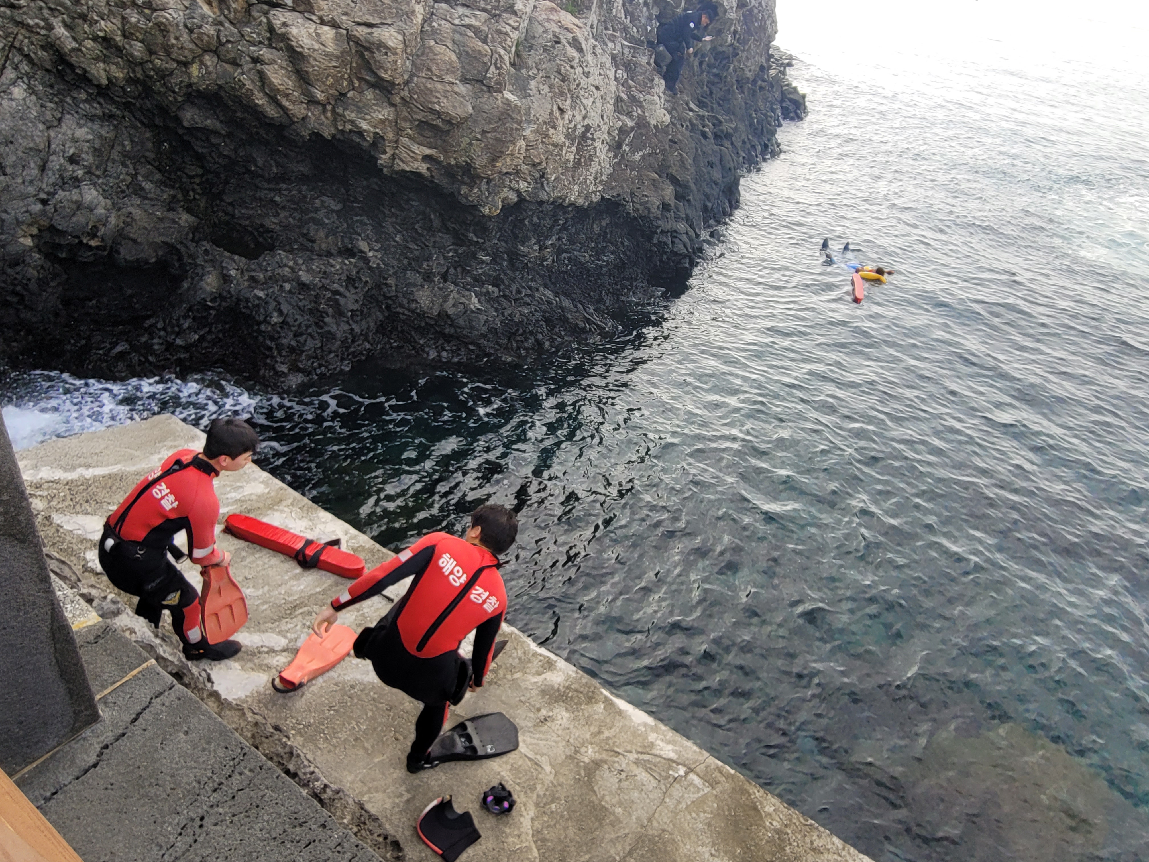 서귀포해양경찰서(서장 고성림)는 오늘(6일) 오전 7시 51분경 서귀포시 자구리 해안 소낭머리 인근 절벽 해상에서 익수자가 있다는 신고를 접수받고 구조세력을 현장으로 급파하여 익수자를 구조했다고 밝혔다.