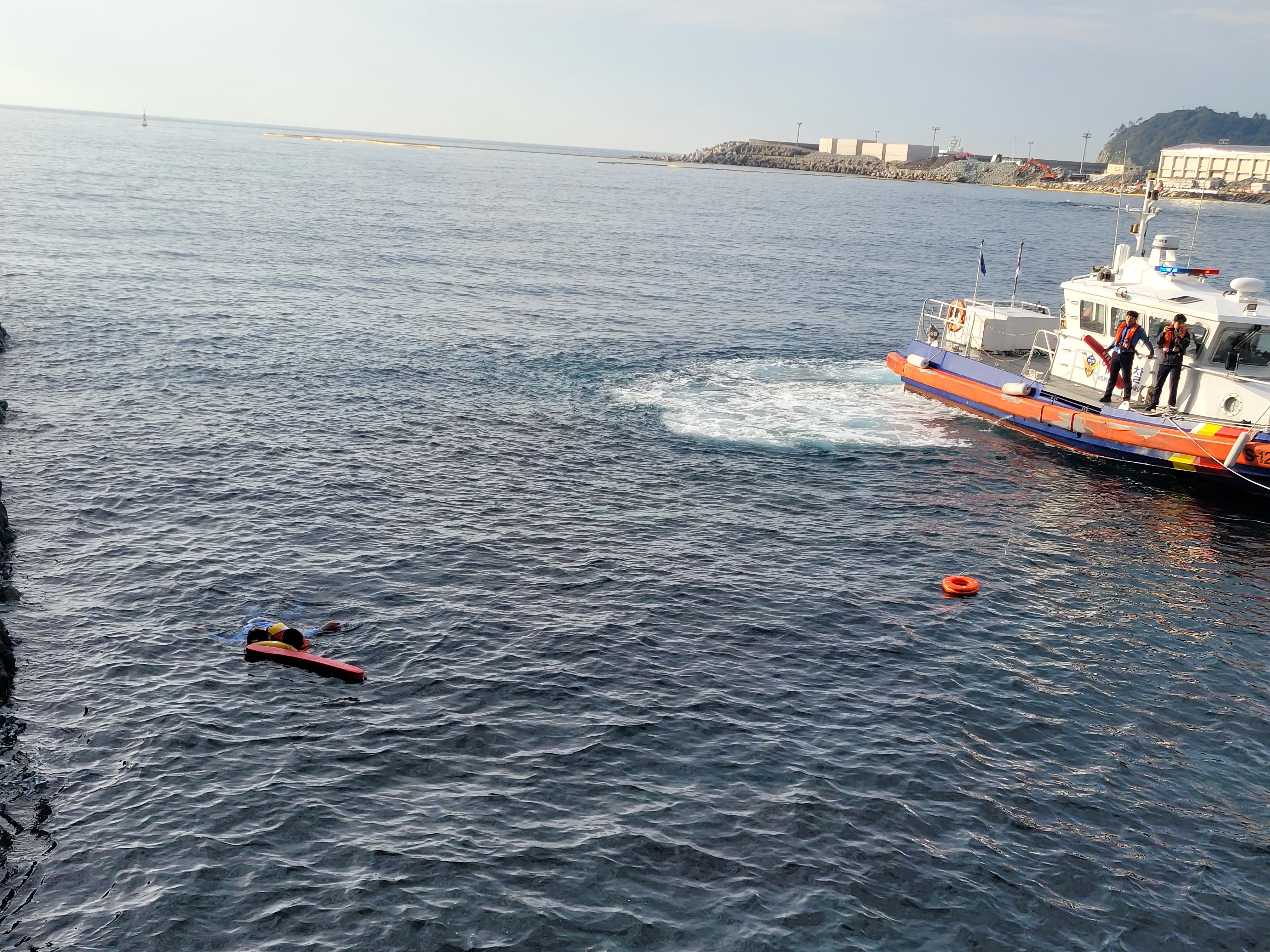 해상순찰 중이던 서귀포파출소 연안구조정은 신고접수 4분만에 현장한 후 구조요원이 입수, 익수자에 접근하여 확인결과 익수자는 하늘을 보며 수면에 떠 있는 상태로 의식과 호흡은 없는 상태였다.