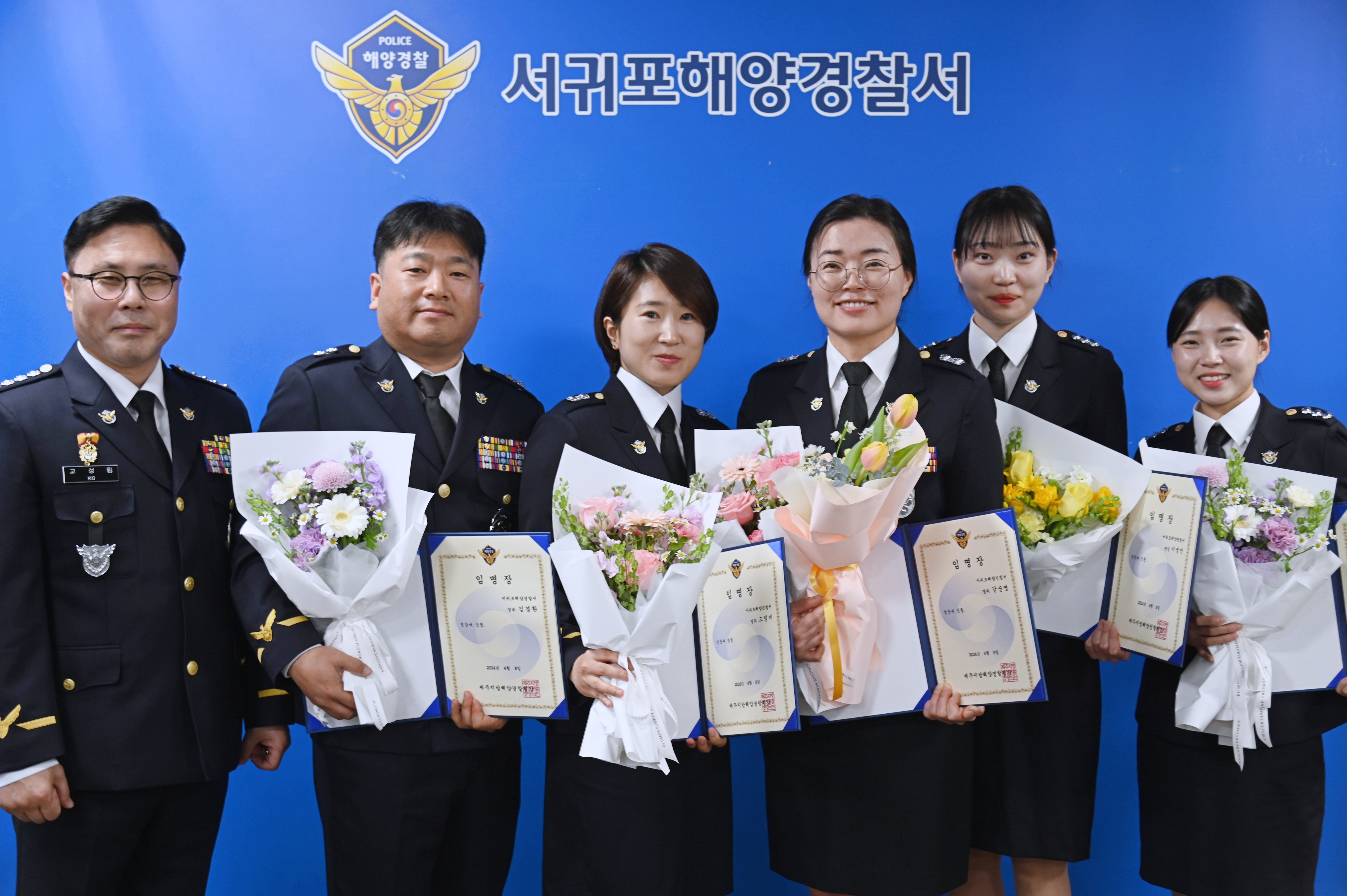 서귀포해경은 그간 승진자만 참석하여 이뤄지던 승진임용식을 전 직원들이 축하할 수 있는 자리를 마련하여, 승진 기념 사진촬영과 더불어 꽃다발을 나누며 서로 축하하며 기쁨을 나눴다.