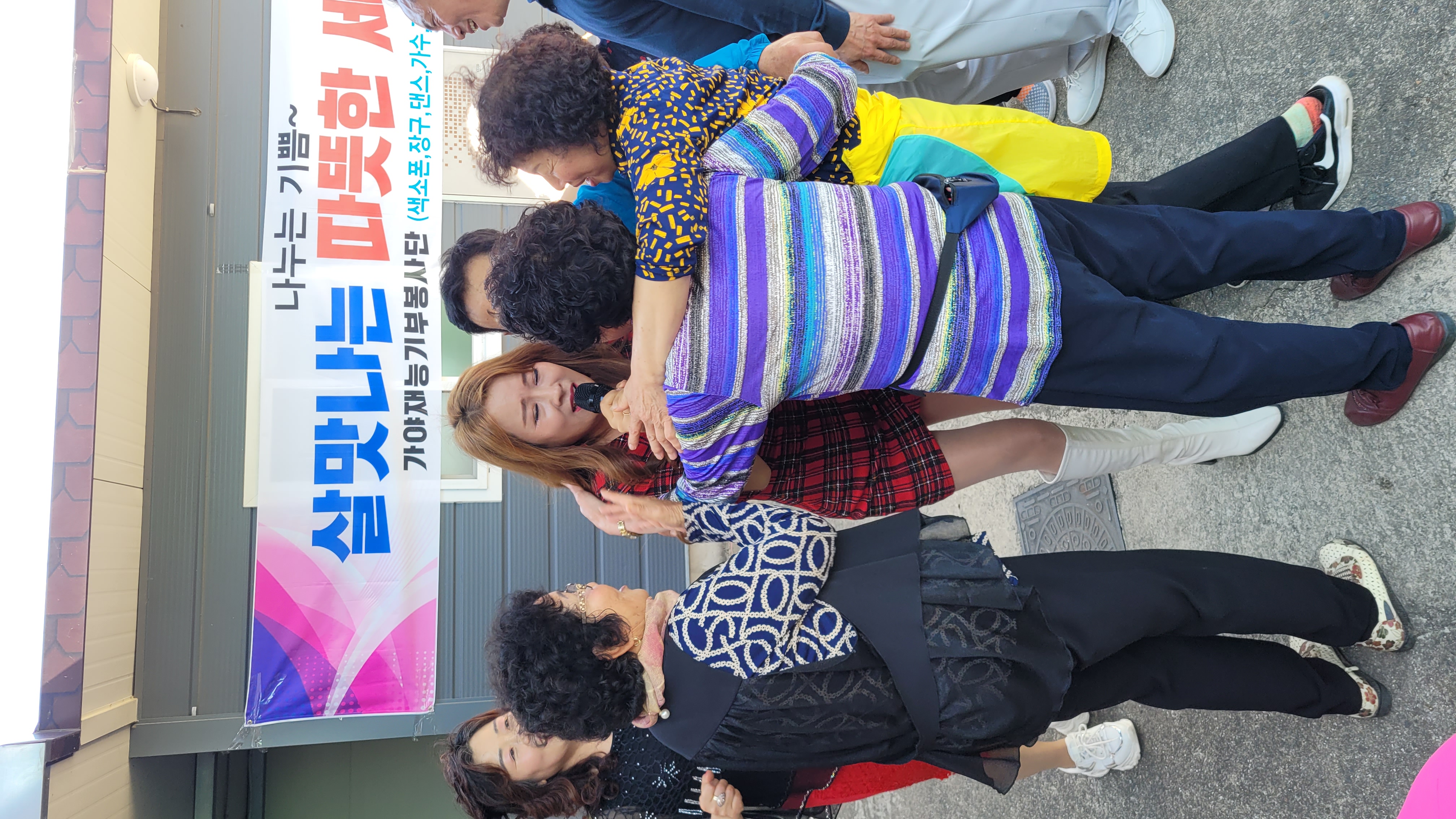 이날 행사는 가야재능 봉사단원인 김미소의 사회로 하모니카 연주 서순주. 하숙자. 김매화(다연). 조정희. 트로트 가수. 추달막 각설이가 참석한 오추마을 주민들과 생신 잔치 어르신들의 흥겨운 시간을 함께하였다.