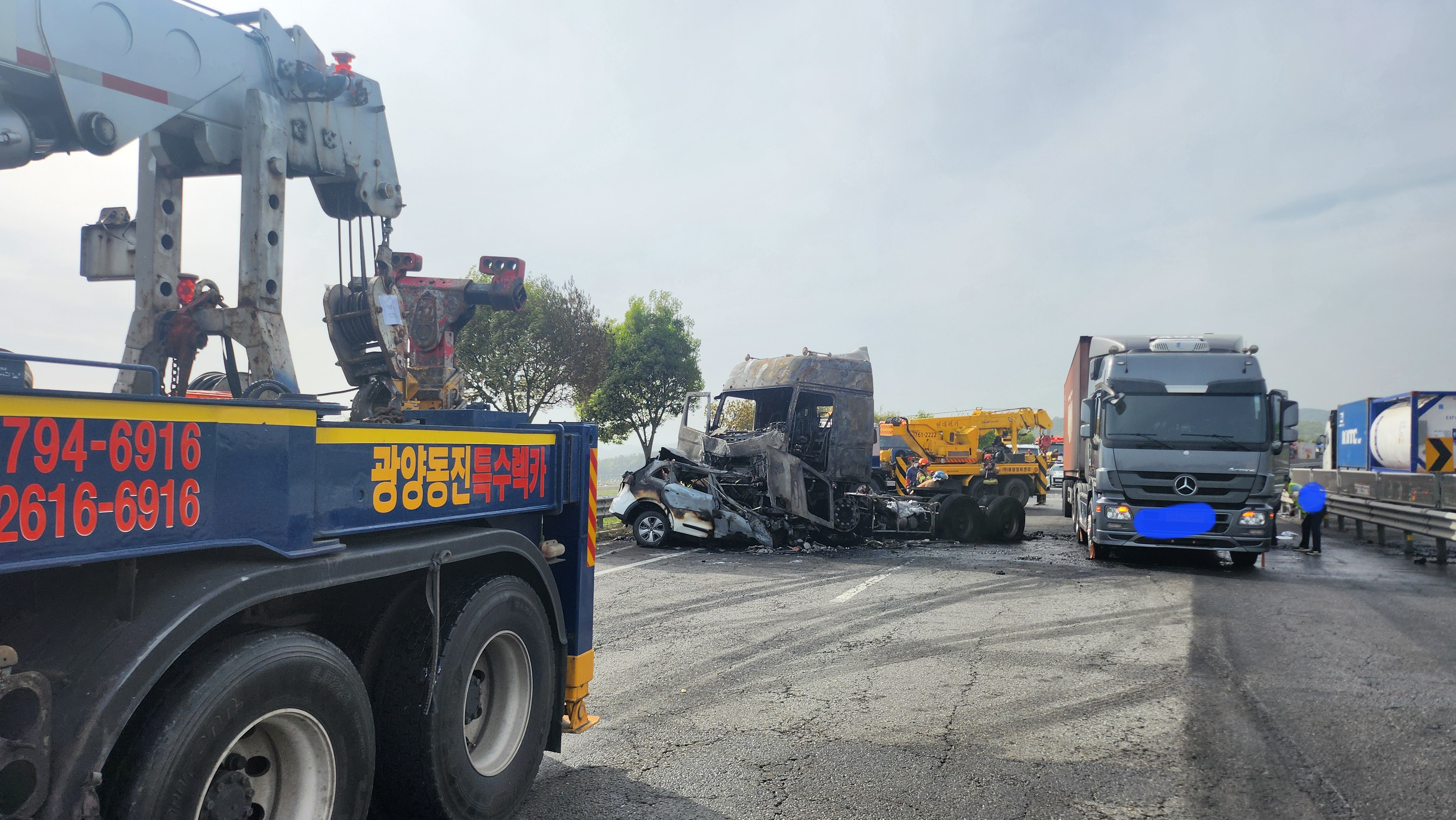 금일 사고는 광양컨테이너 부두방면에서 SUV차량이 순천방면으로 역주행하다가 순천에서 광양컨테이너 부두로 향하는 트레일러 차량과 정면 충돌로 인하여 2대의 차량에서 화재가 발생했다. 이 사고로 인하여 SUV(30대 남자)차량 운전자가 사망하는 사고가 발생했다.