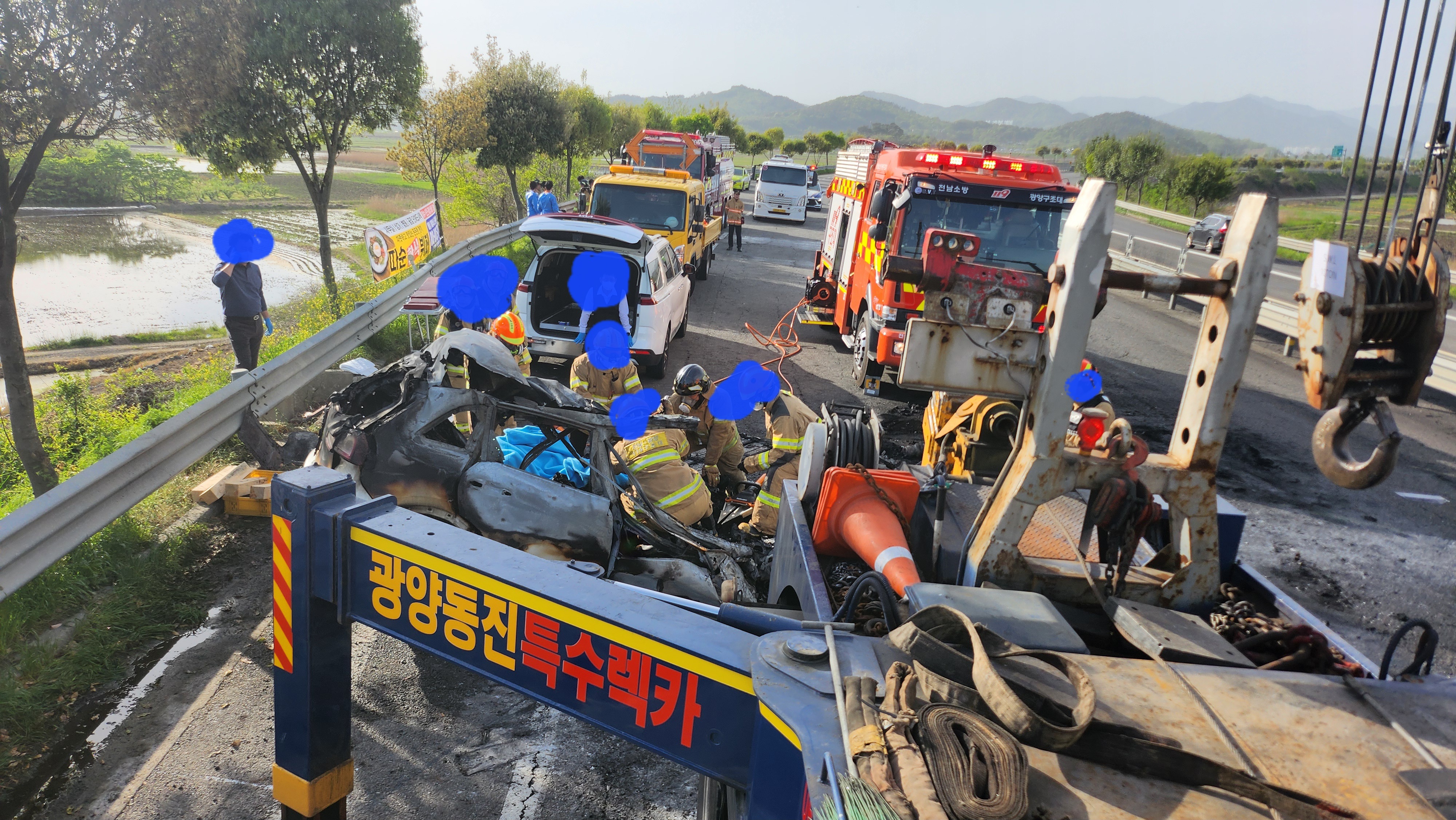 사고는 소방서에 사고로인하여 차량에 화재가 발생했다고 신고가되어 소방인력20여명과 장비를 투입하여 40여분만에 화재를 진압하였다.
