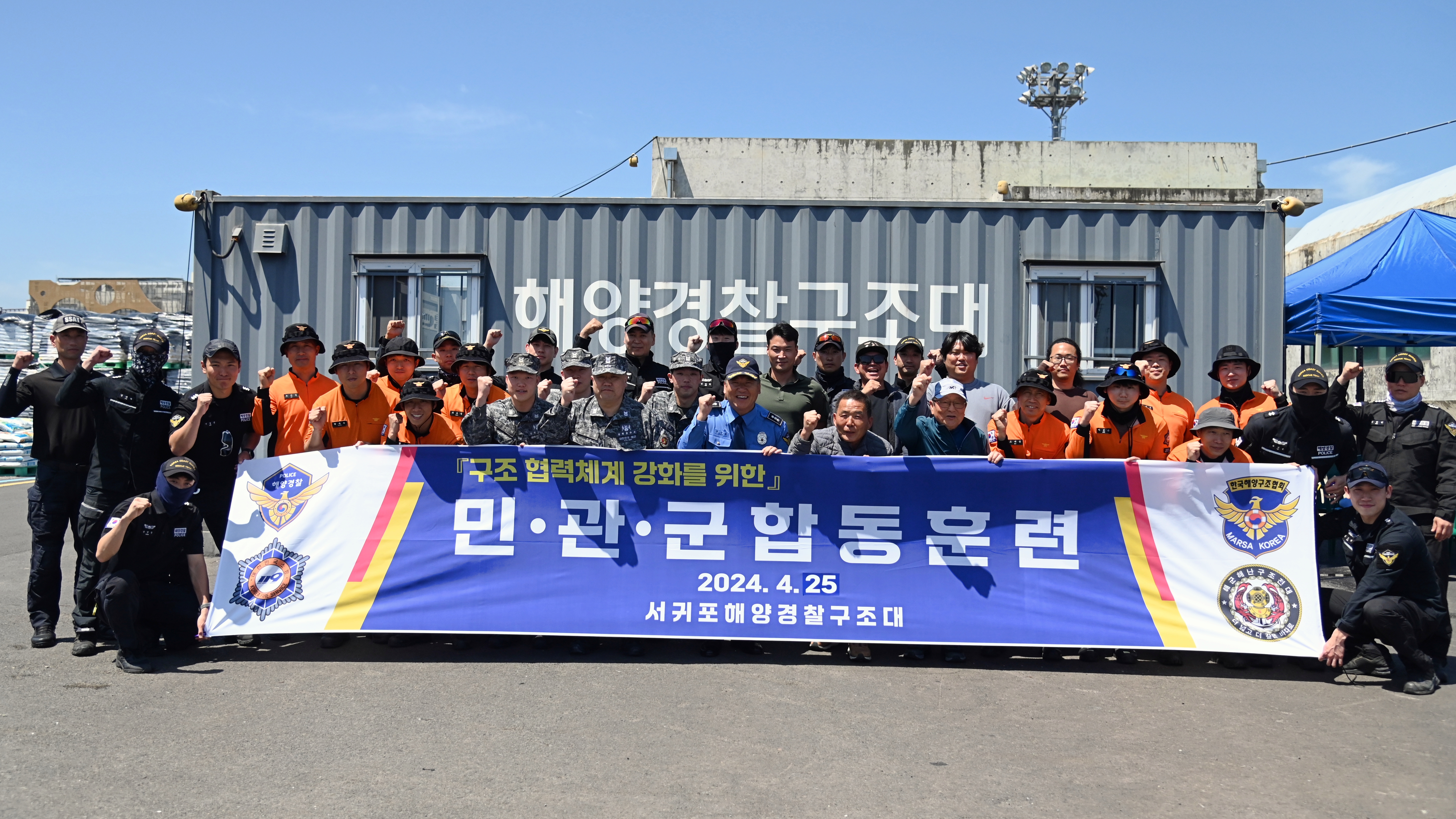 서귀포해양경찰서(서장 고성림)는 오늘(25일) 해양사고 발생 시 구조 협력 체계 강화를 위해 서귀포항 인근 해상에서 민·관·군 합동훈련을 실시했다.