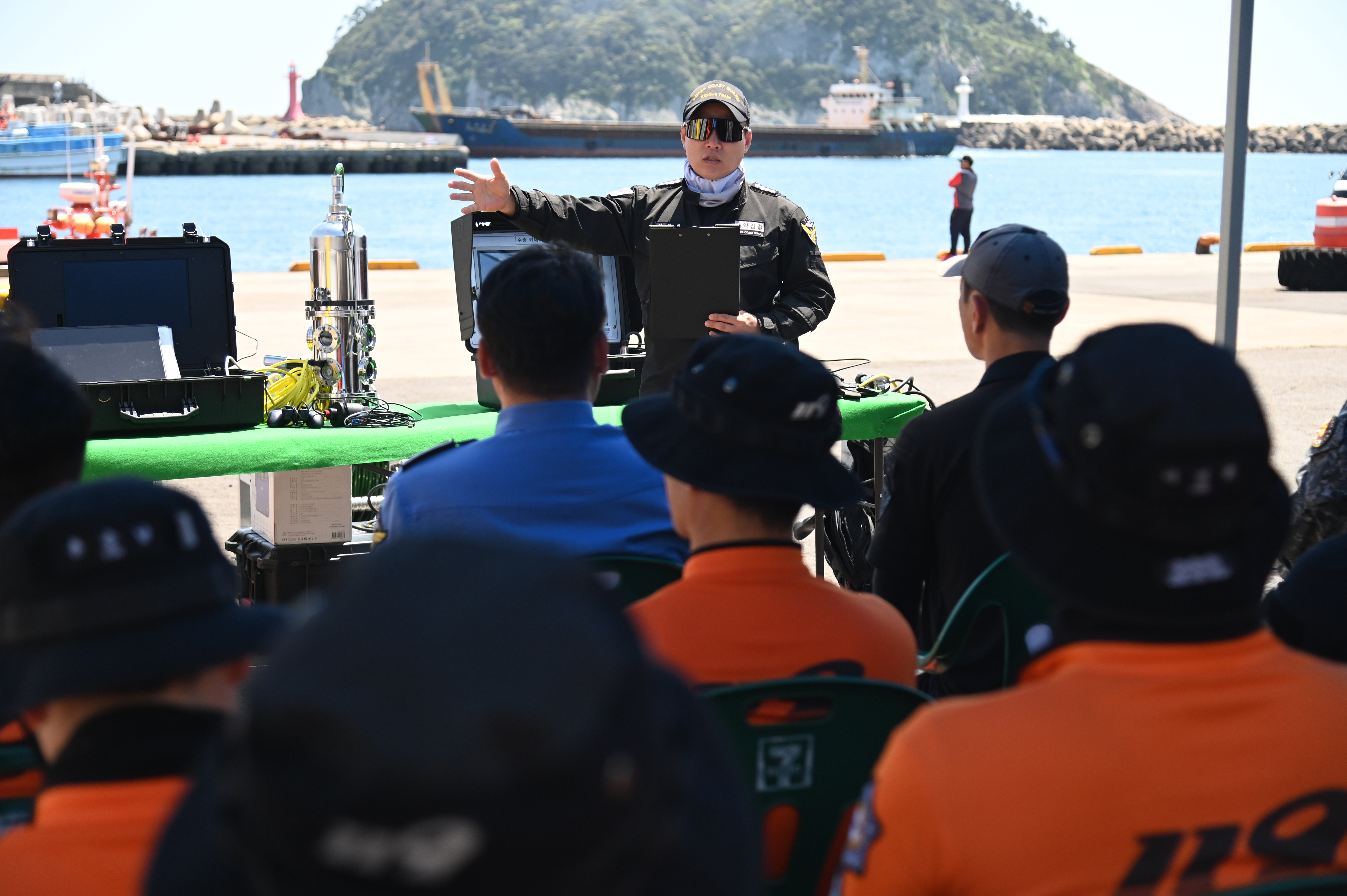 서귀포해경은 효율적인 구조 체계 구축을 주요 목표로 △수중구조훈련 △수중수색기법 △수중드론 및 구조용 동력서프보드 운용술 등 수중수색 중심으로 훈련을 진행하였다.