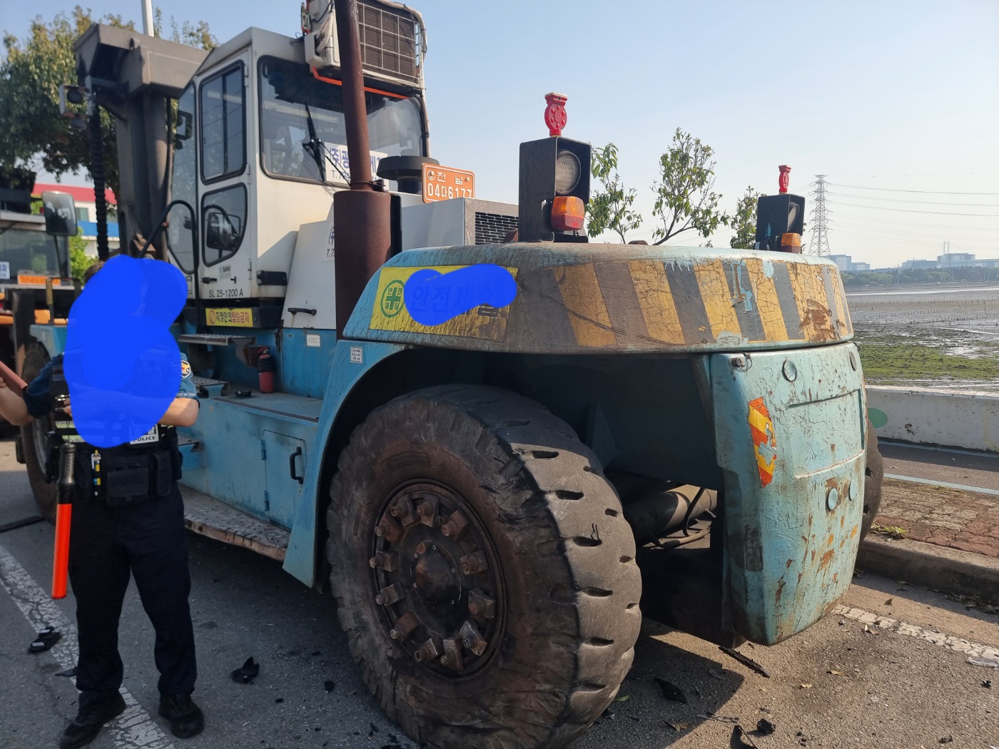 [해륙뉴스1] 서정민기자=전남 광양시 태인동에서 주행하던 승용차량이 편도2차선중 2차선에 주차된 지게차와 충돌사고가 발생하였다.