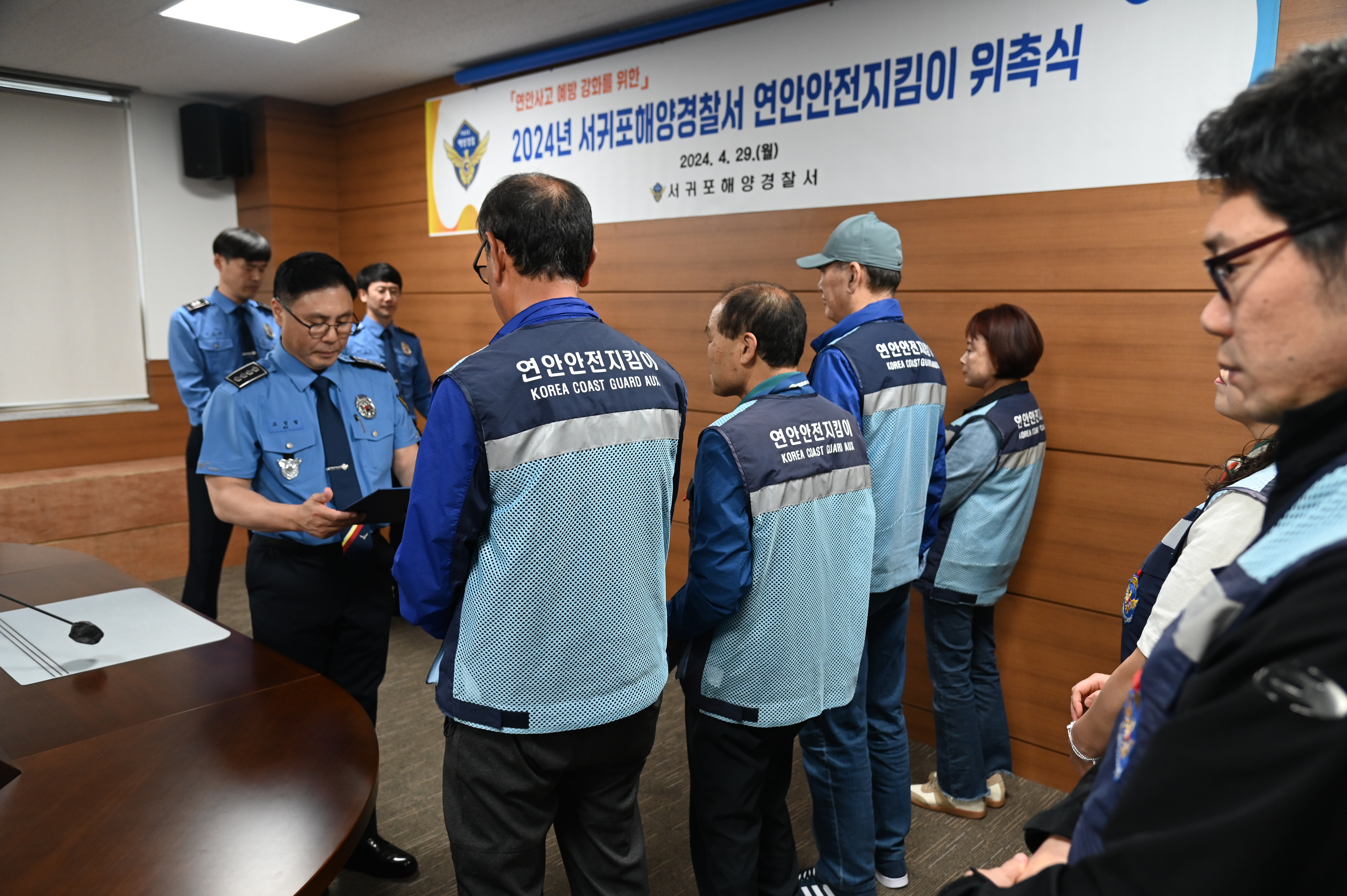서귀포해양경찰서(서장 고성림)는 서귀포지역 연안사고 예방을 위해 선발한 연안안전지킴이 8명에 대해 오늘(29일) 위촉식을 개최하였다.