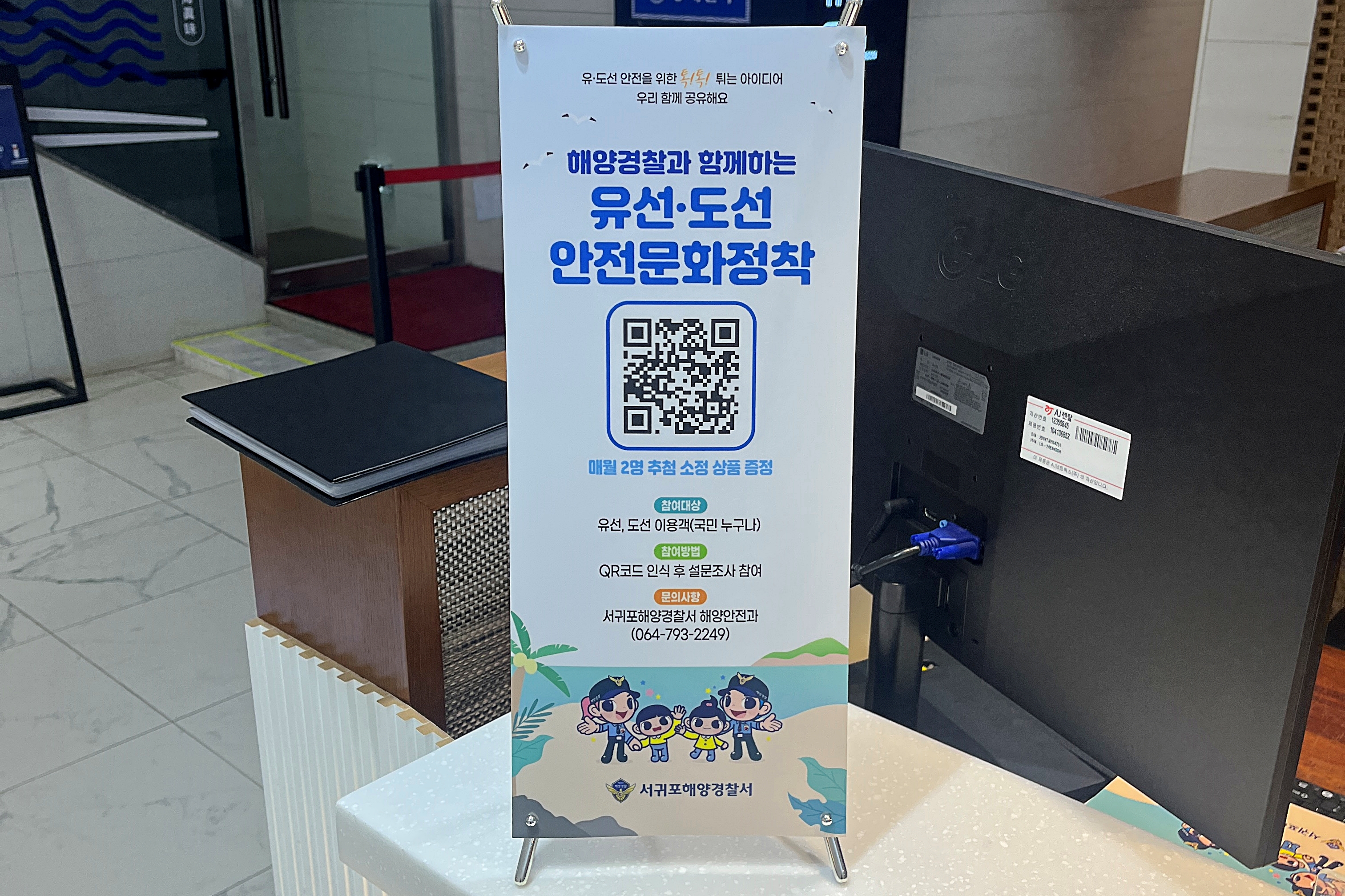 서귀포 관내의 유·도선(20척) 및 매표소(11개소)에 비치된 배너와 포스터의 QR코드를 통해 참여할 수 있고, 참여자에 한해 매월 2명씩 추첨을 통한 기념품을 지급한다.