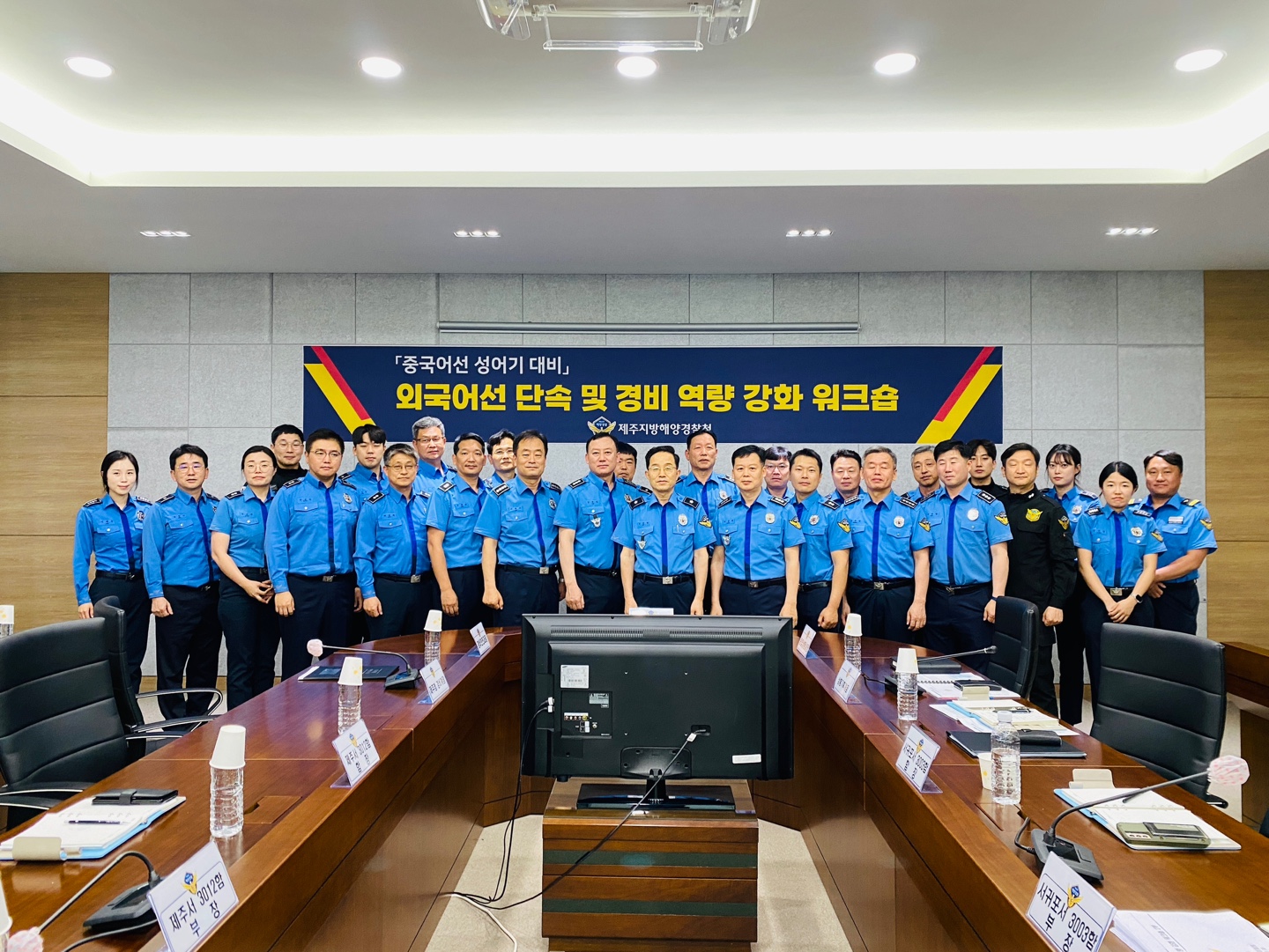 이번 워크숍은 제주해양경찰청장 주관으로 제주해경청 경비안전과장을 비롯한 업무담당 경찰관 및 함장 등 30여 명이 참석*해 하반기 불법조업 외국어선 성어기 대비 경비 역량 강화에 대해 논의했다.