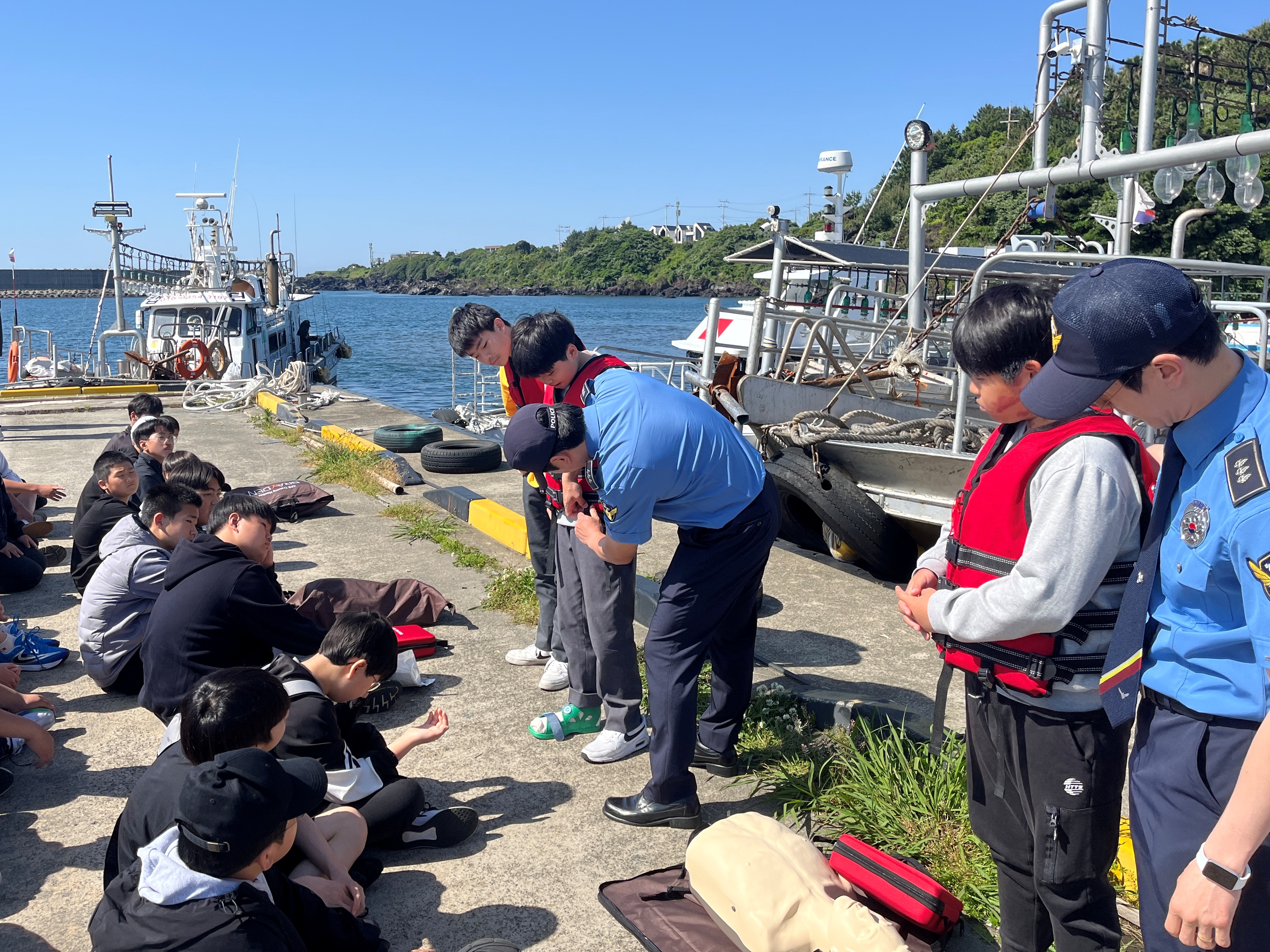 서귀포해경은 바다와 친숙해지고 해상에서 안전수칙을 알게되는 계기를 마련하기 위해 서귀포 낚시어선협회에서 주최한 선상낚시 체험행사에 참여한 청소년 대상으로 안전교육에 나섰다.