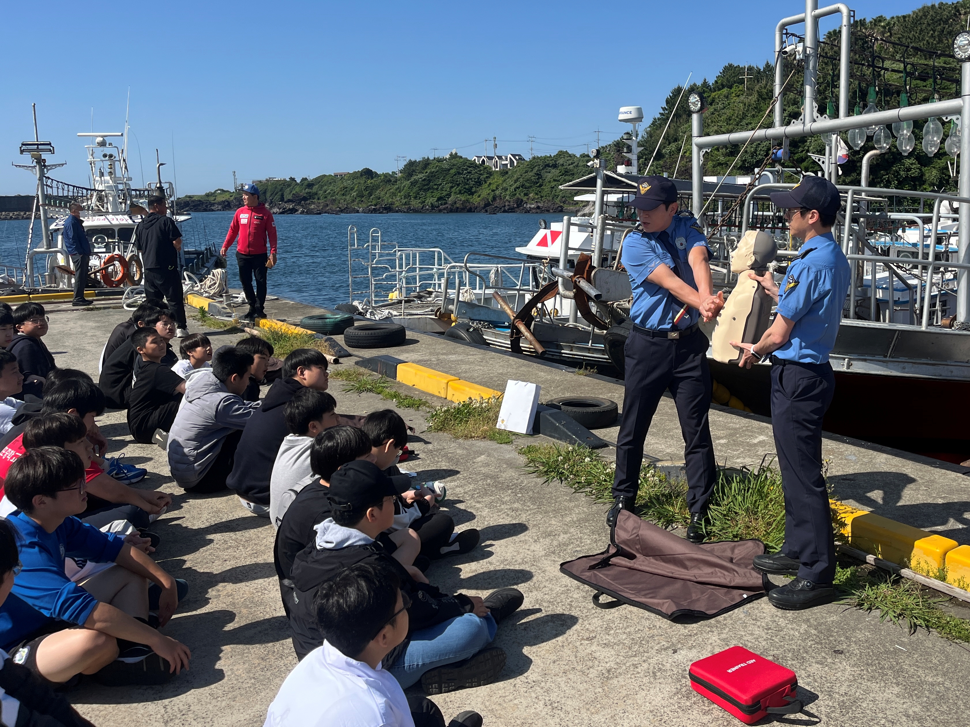 이번 안전교육은 ▲비상시 행동요령 ▲ 선상 안전수칙 ▲ 심폐소생술·자동심장충격기 사용법 ▲ 구명조끼 착용법 등 해상에서의 안전수칙에 관하여 교육했다.
