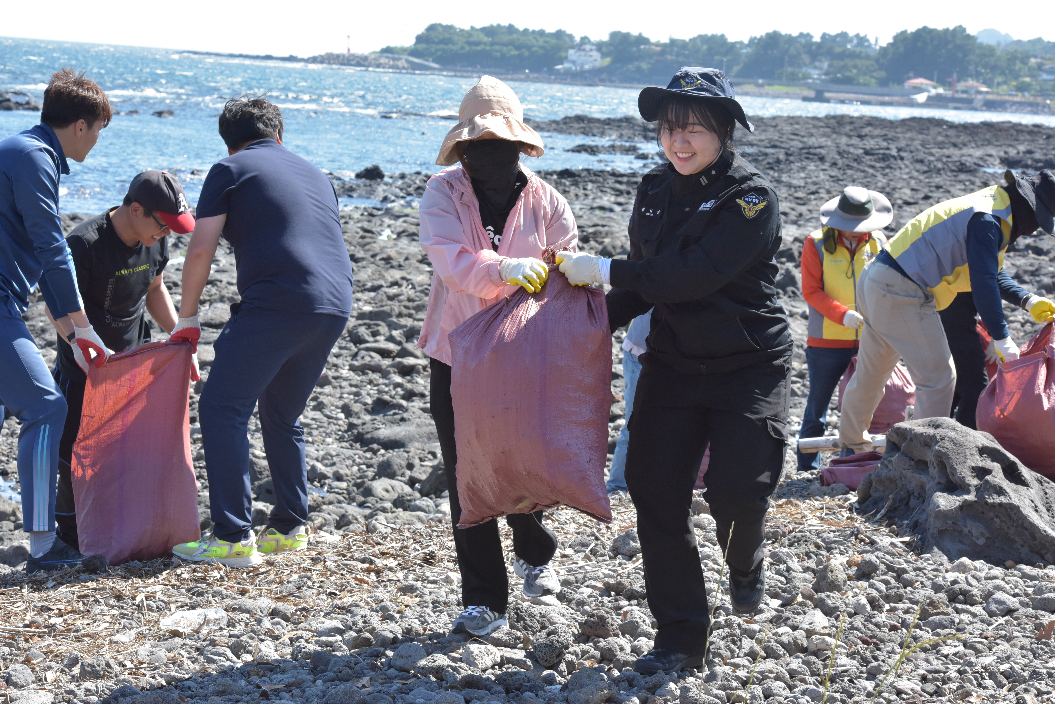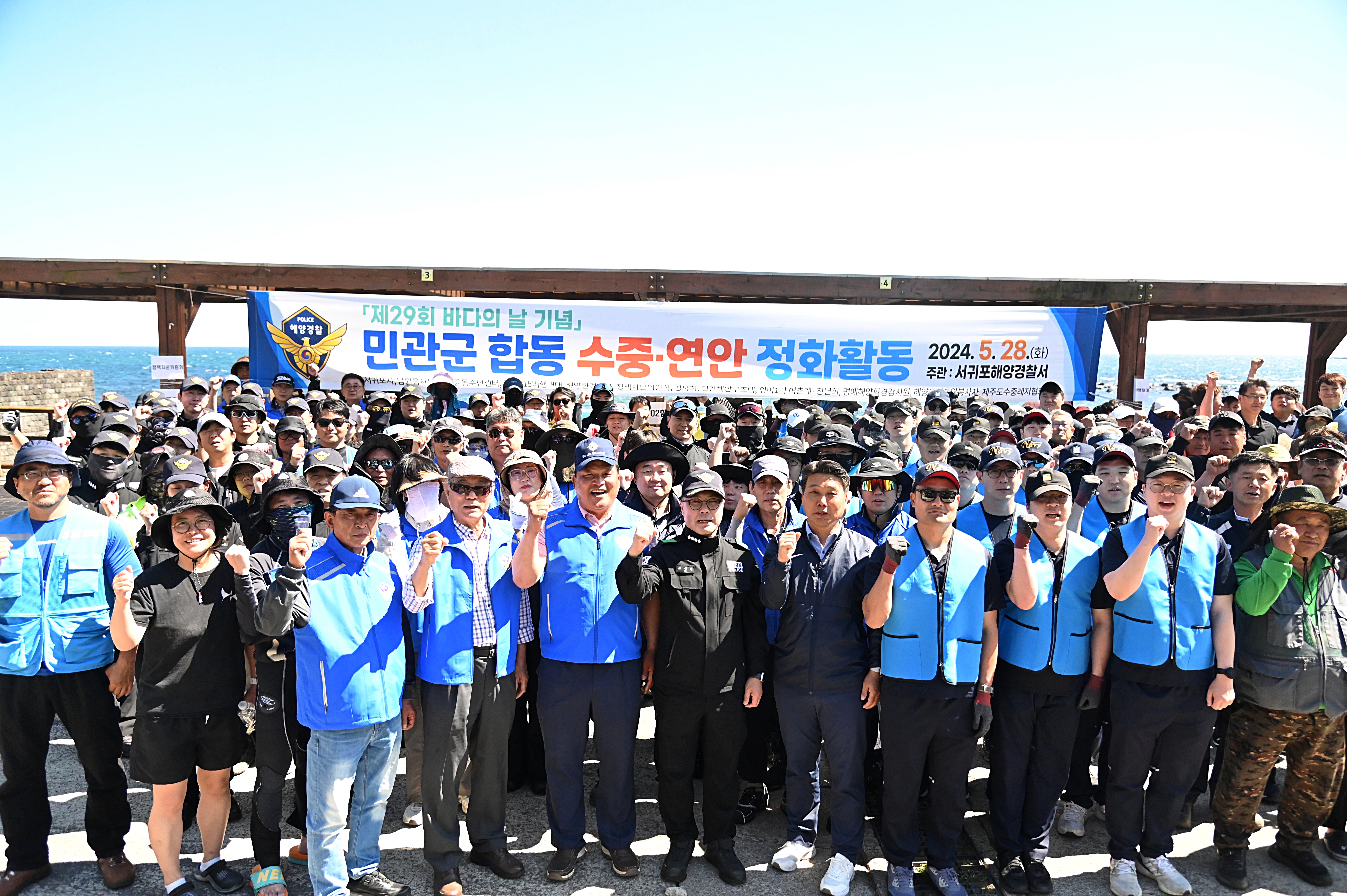 서귀포해경은 제29회 바다의 날*을 맞아, 민·관·군과 협력하여 해안 및 수중(해녀조업구역) 일대 쓰레기를 수거함으로써 제주 바다를 청정하게 보전하기 위해 이번 행사를 마련했다.