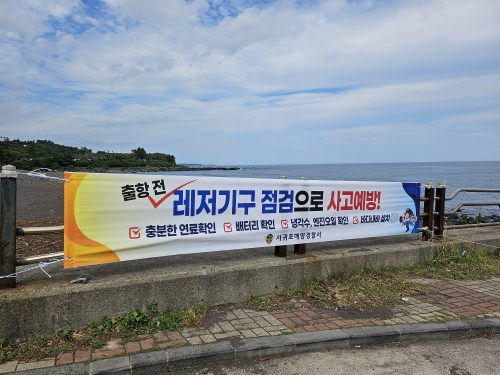 서귀포해양경찰서(서장 고성림)는 동력수상레저기구 출항 전 점검에 대한 인식 개선과 사고 예방을 위하여 현수막...