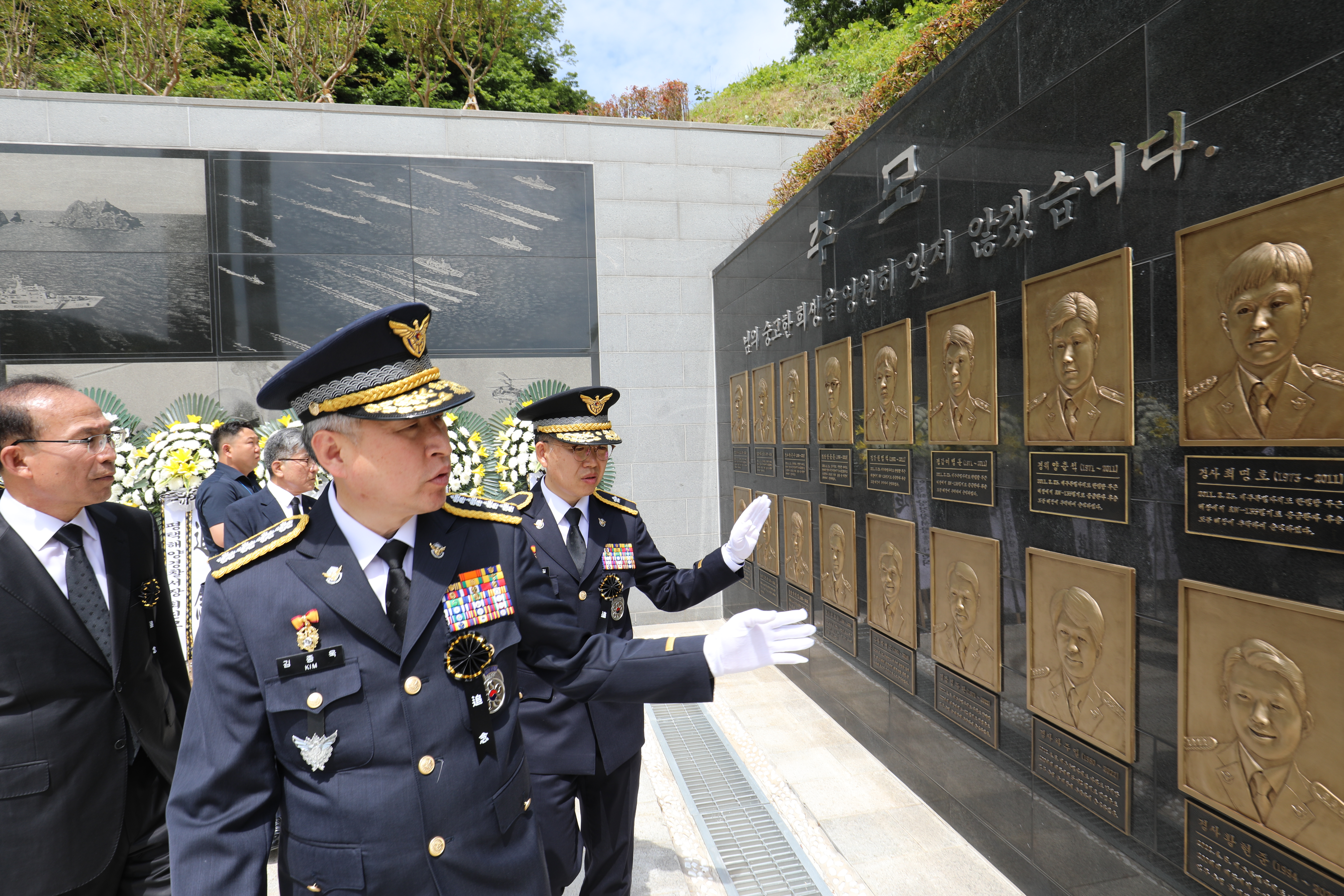 김종욱 해양경찰청장과 임명길 해양경찰교육원장, 교직원, 유가족, 해양경찰재향경우회 및