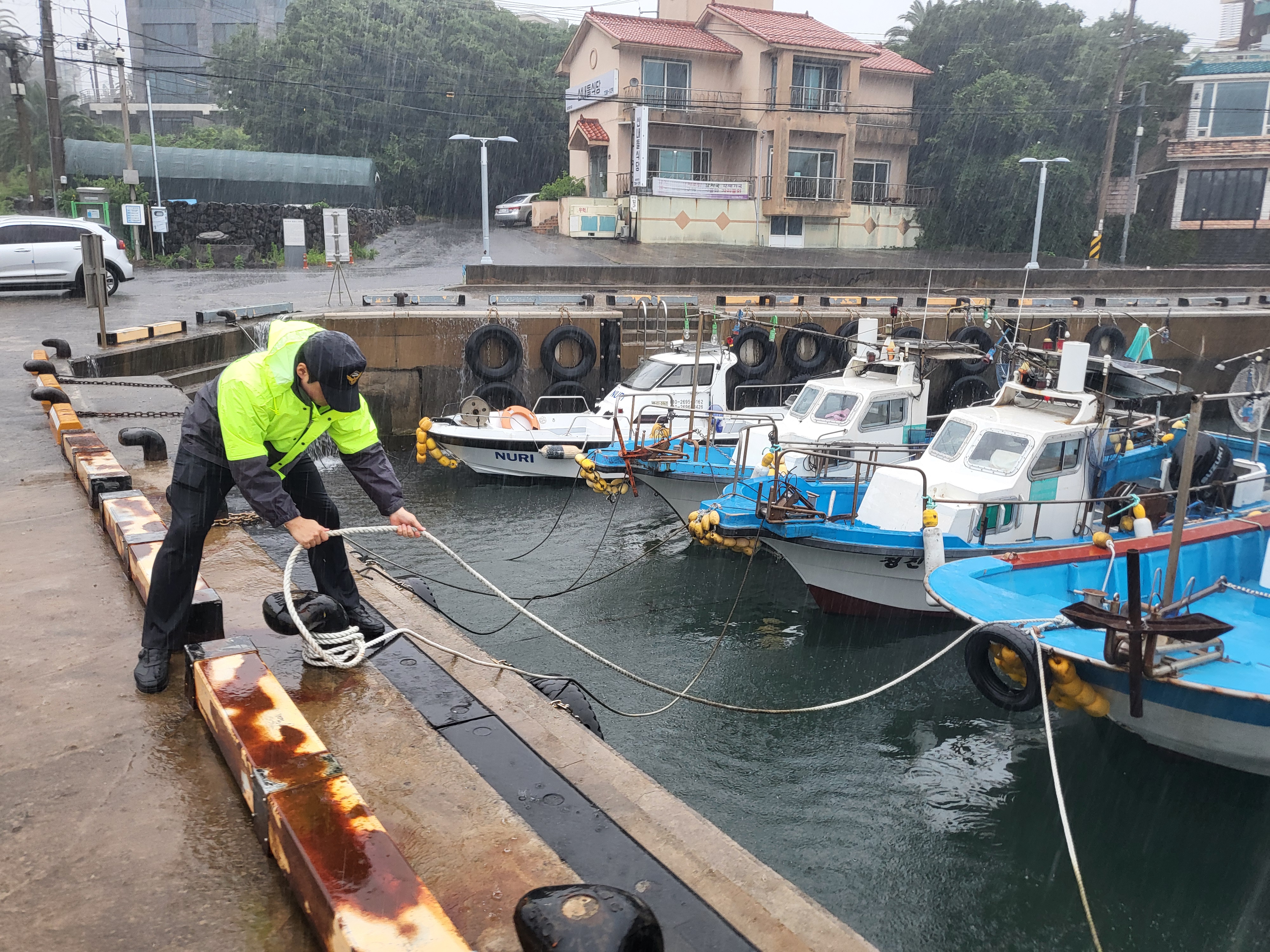 고성림 서귀포해경서장은 “집중호우가 맞물린 이번 대조기에 안전사고 예방을 위해 선주는 정박 선박의 전복과 침수를 대비해 안전 점검을 해주시고 방문객 등 해양활동자는 만조시 비가 내리면 바다 접근은 지양해달라”고 말했다.