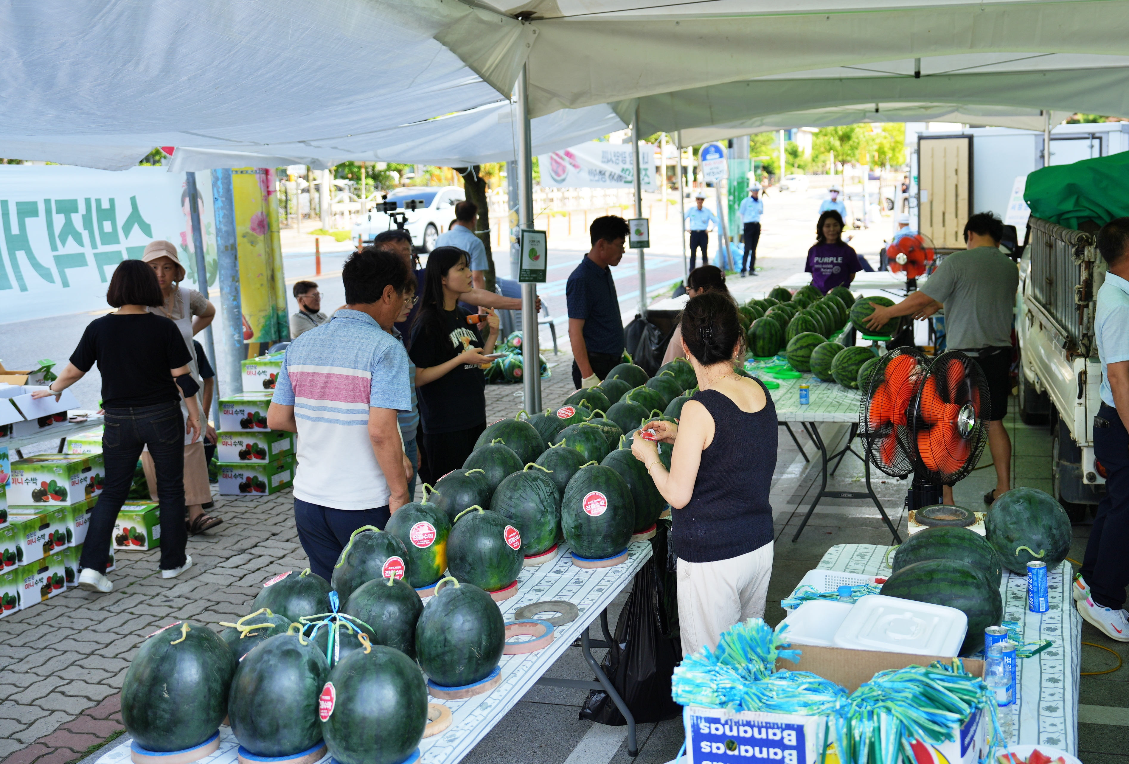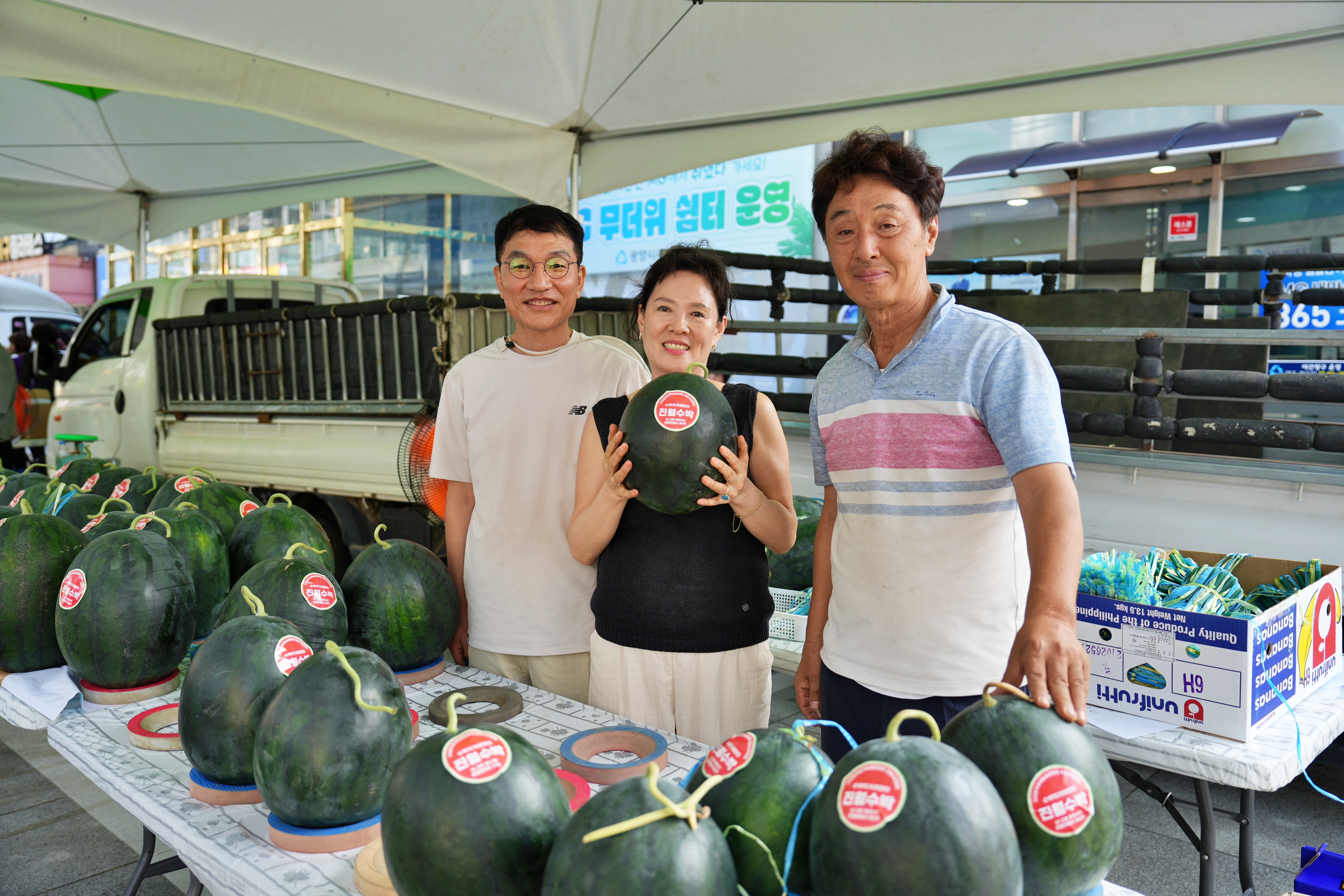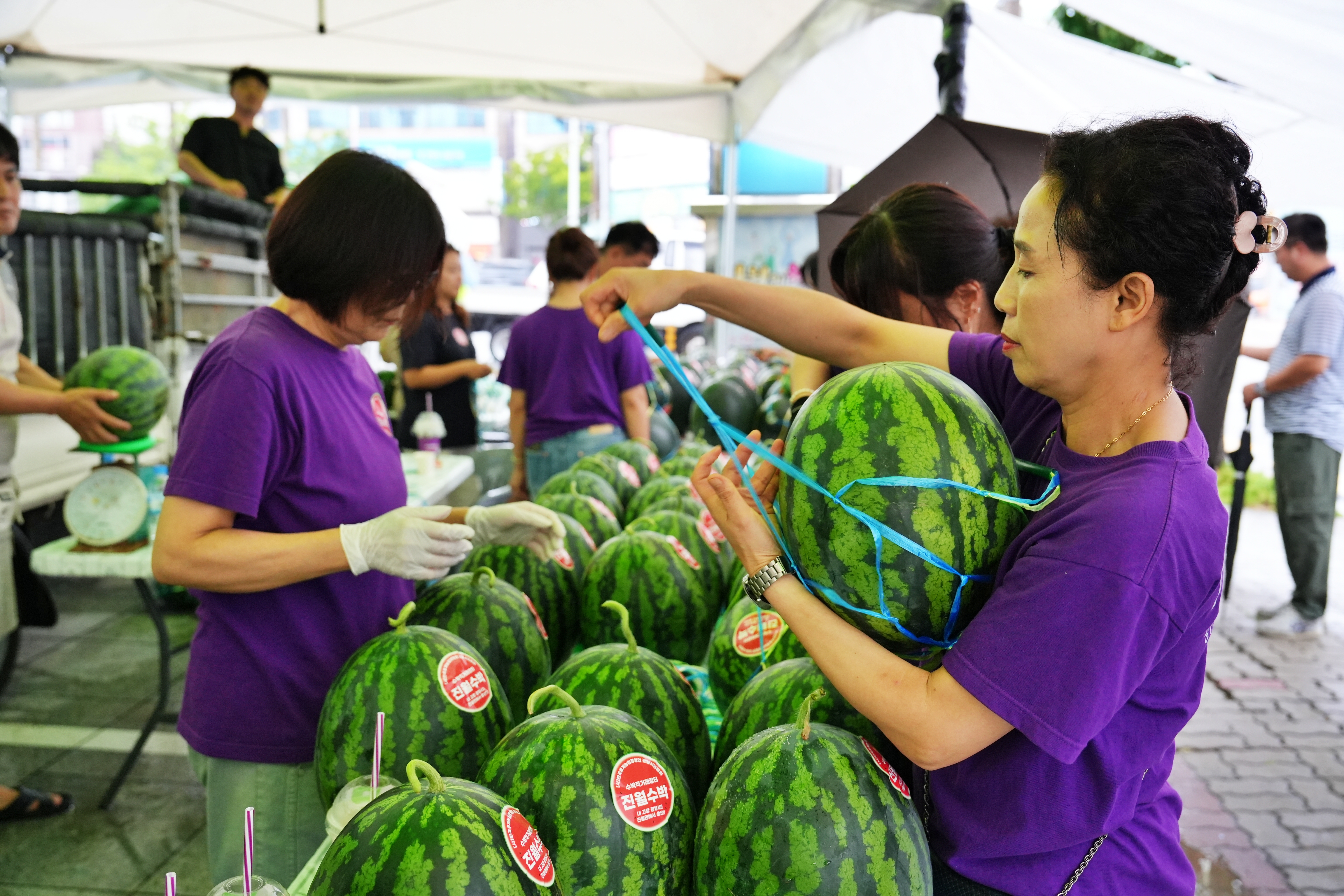행사기간 동안 온종일 연합회원과 수박을 판매한 송명종 농업정책과장은 직원들과 직접 수박을 나르고 지역 농산물 홍보에 나섰다. 송 과장은 “농가 소득 증대에 도움이 되었으면 좋겠다.”고 밝혔다.