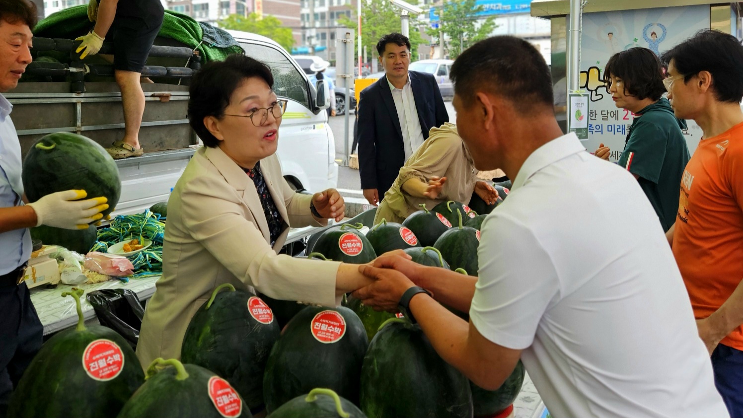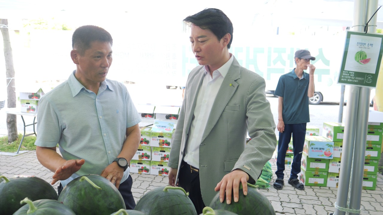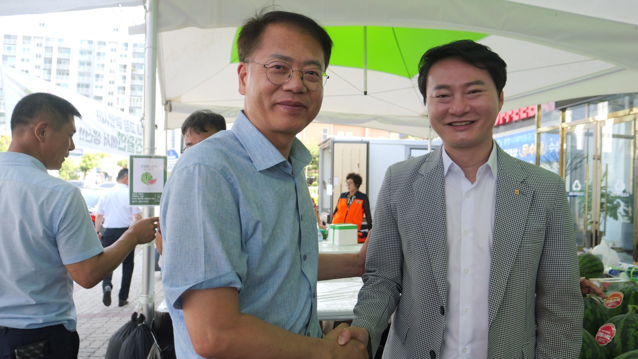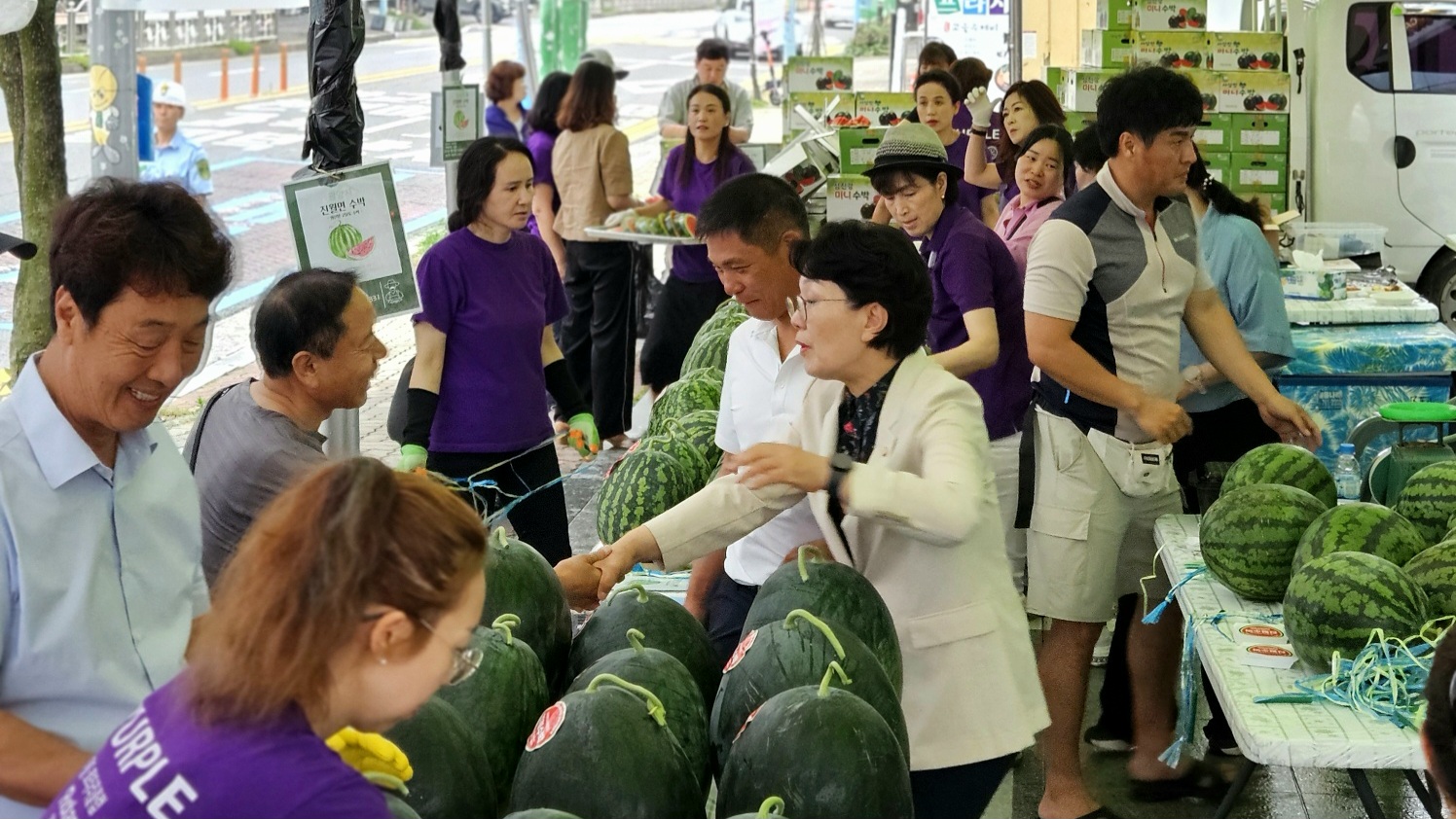 행사기간 동안 온종일 연합회원과 수박을 판매한 송명종 농업정책과장은 직원들과 직접 수박을 나르고 지역 농산물 홍보에 나섰다. 송 과장은 “농가 소득 증대에 도움이 되었으면 좋겠다.”고 밝혔다.