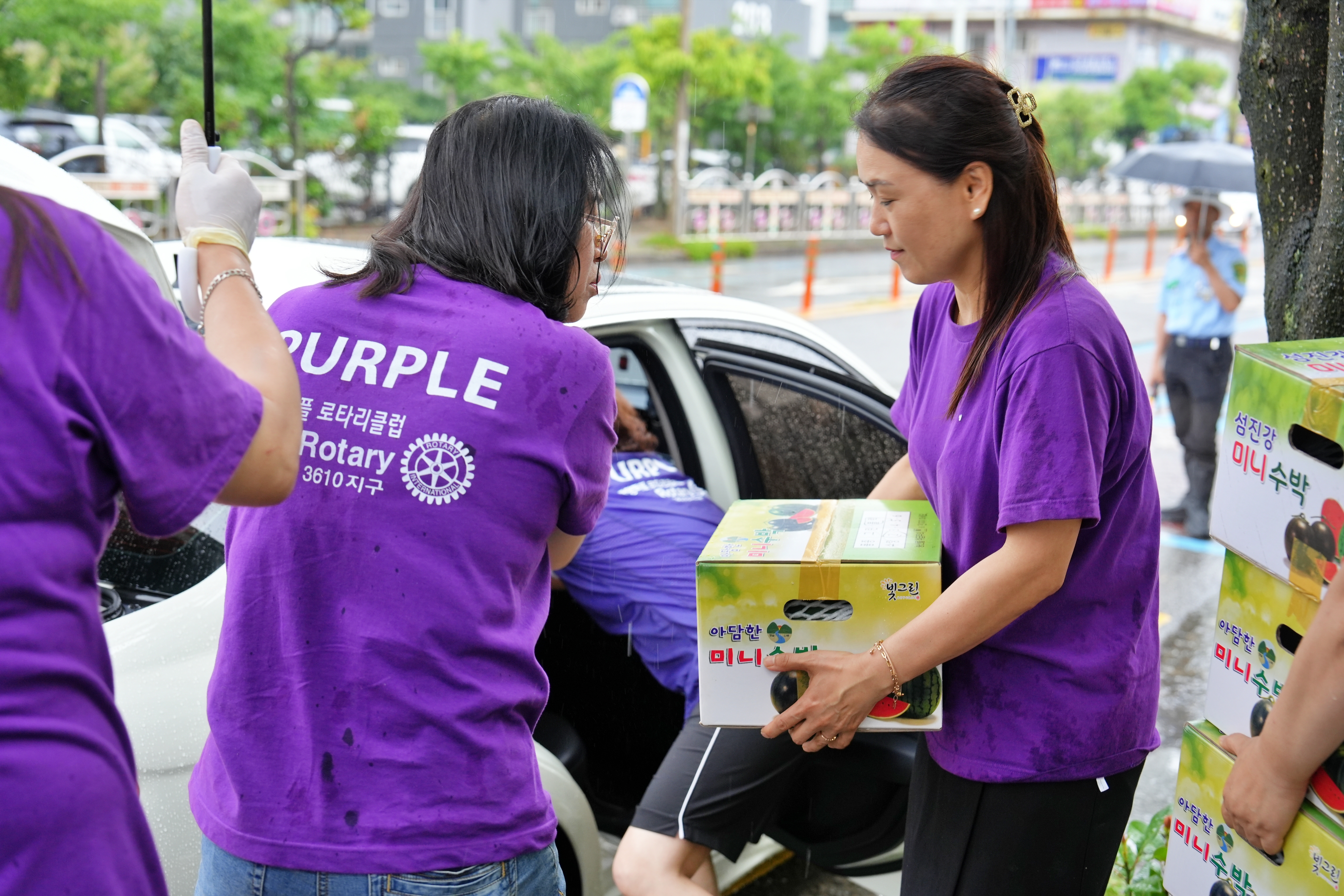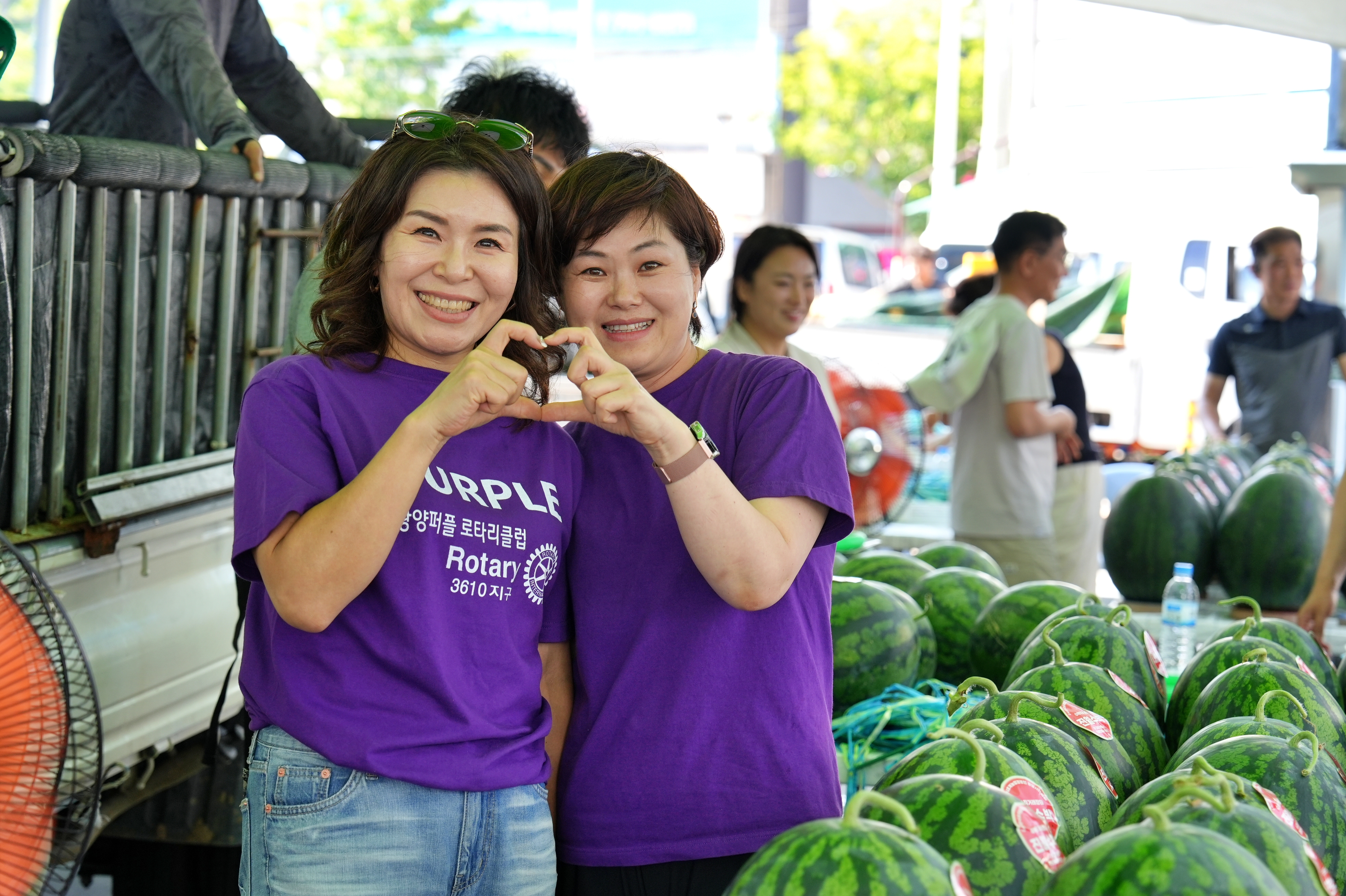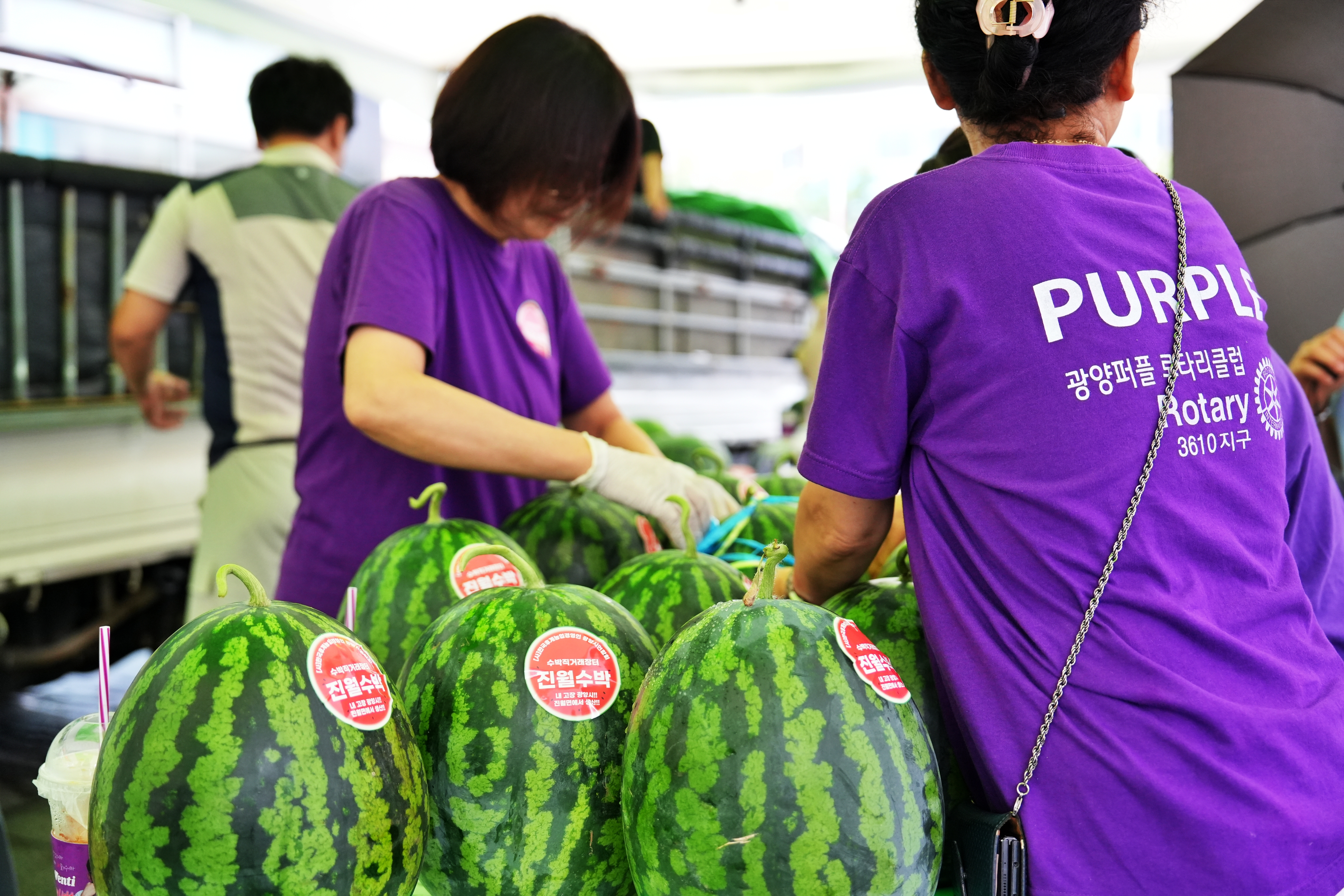 국제로타리 3610지구 제5지역 광양퍼플 로타리클럽 회원(창립 이형선, 회장 김현숙)들은 판매와 더불어 수박 시식코너를 마련해 행사장을 지나가는 시민들에게 제공했다. 클럽 회원들은 고객 편의를 위해 박스를 차 트렁크에 옮겨 실어 주기도 하였다.