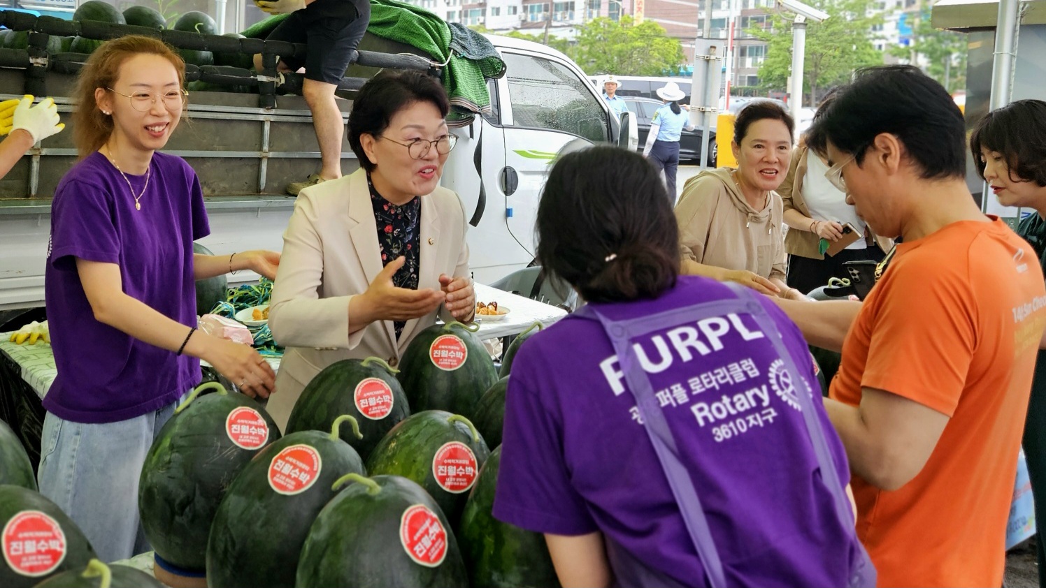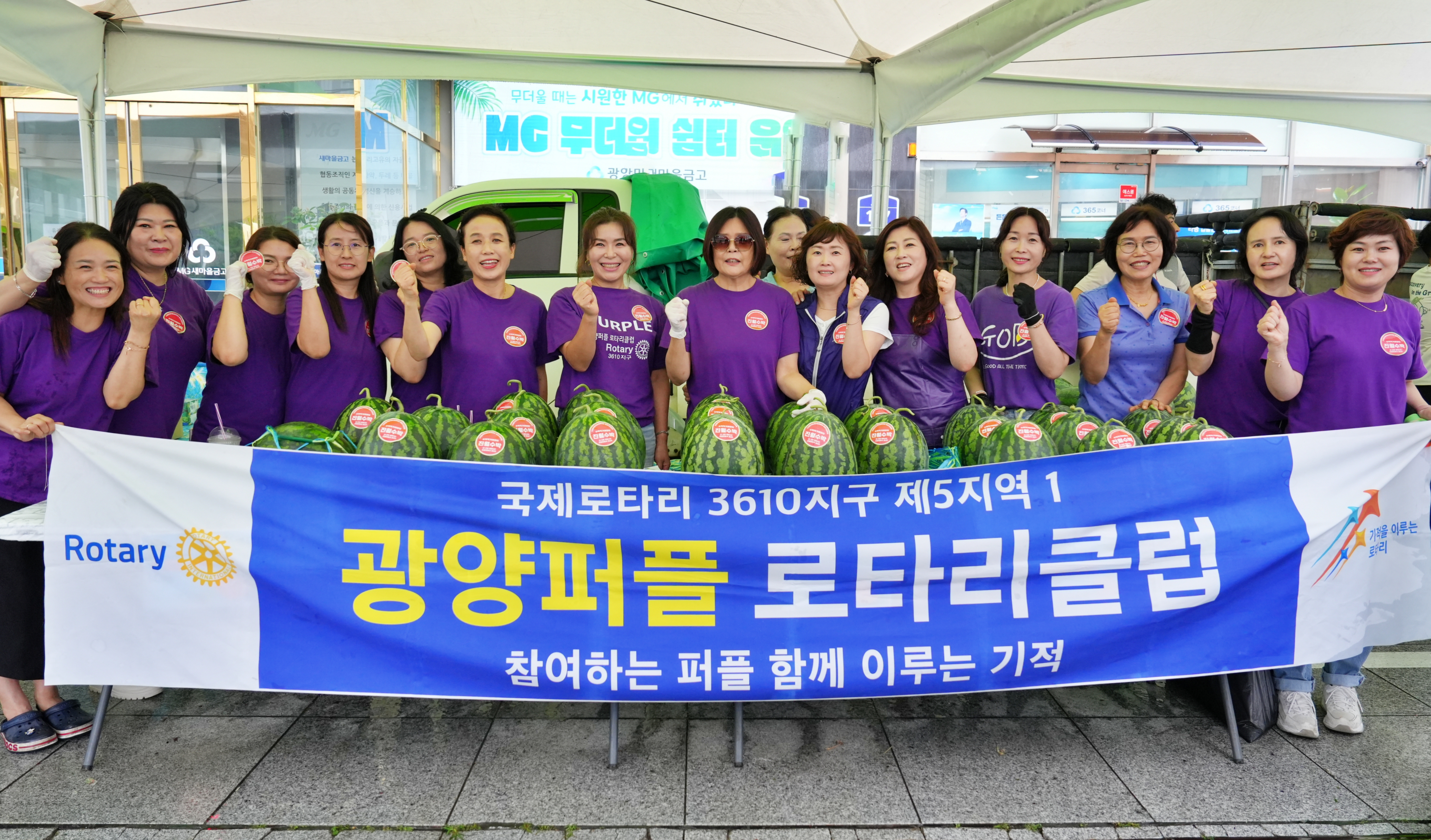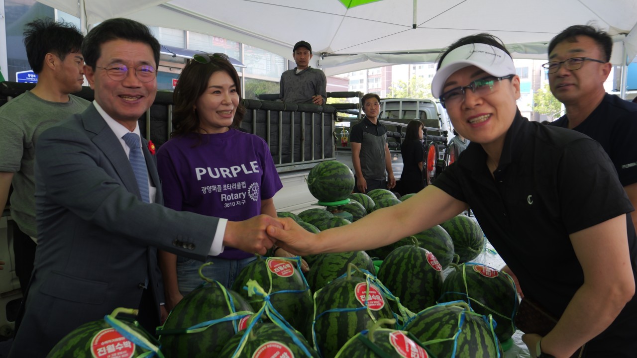 국제로타리 3610지구 제5지역 광양퍼플 로타리클럽 회원(창립 이형선, 회장 김현숙)들은 판매와 더불어 수박 시식코너를 마련해 행사장을 지나가는 시민들에게 제공했다. 클럽 회원들은 고객 편의를 위해 박스를 차 트렁크에 옮겨 실어 주기도 하였다.