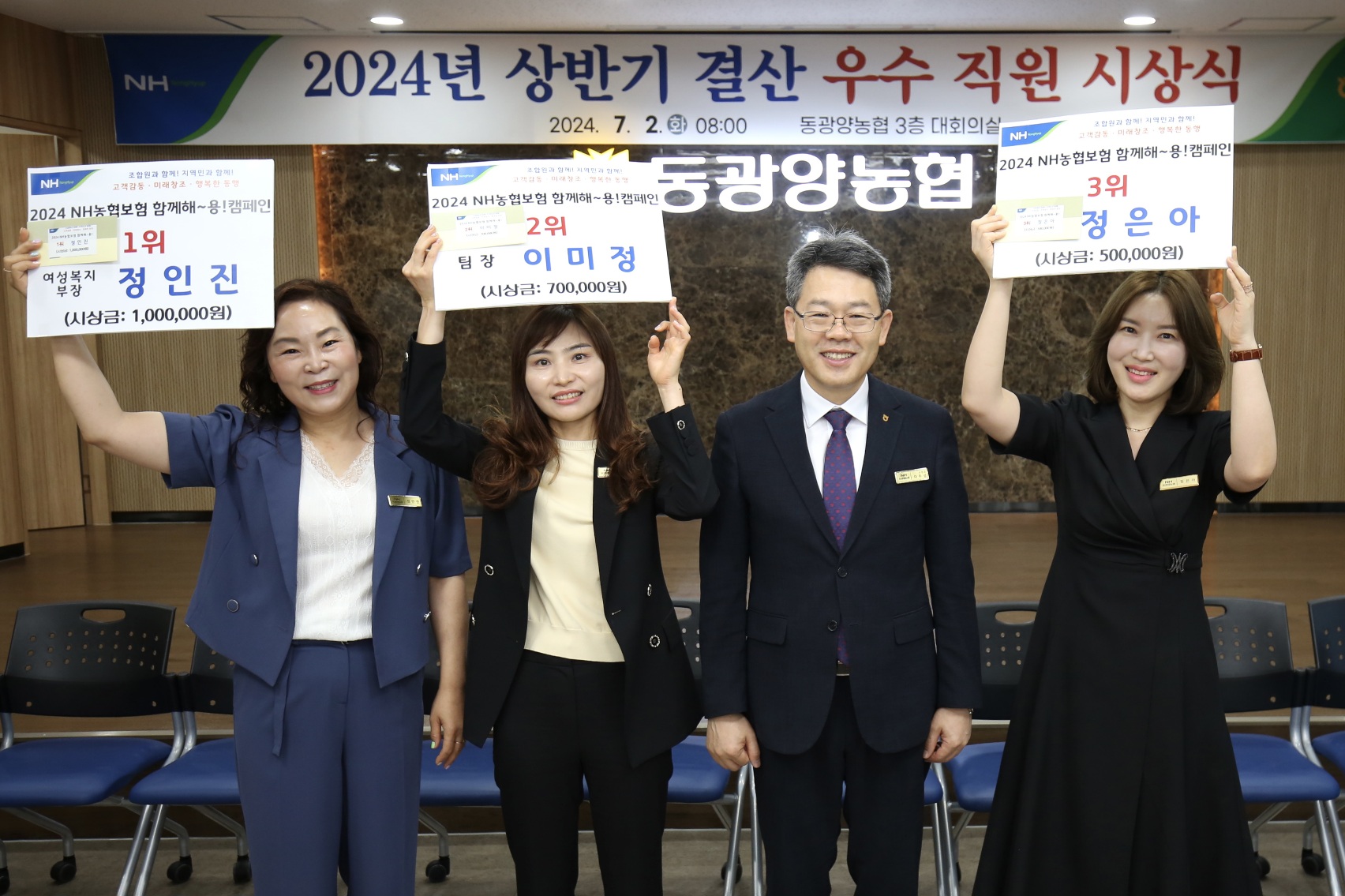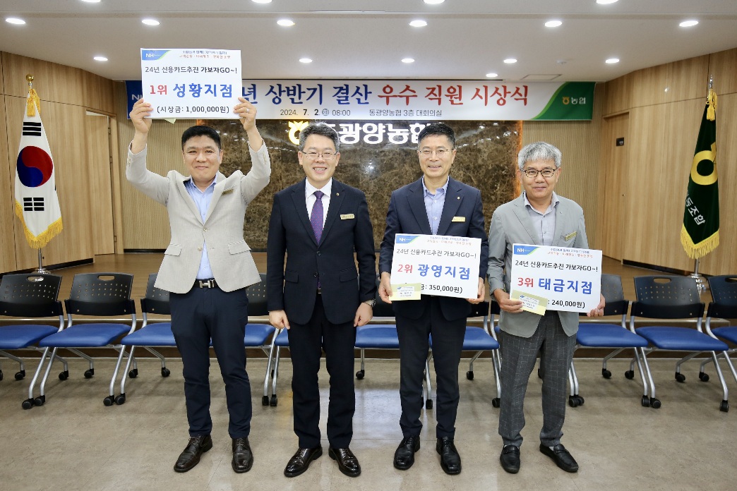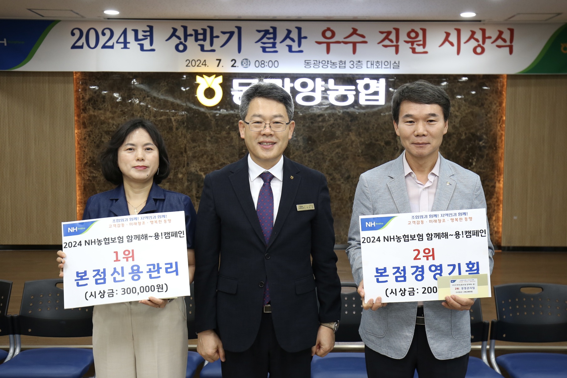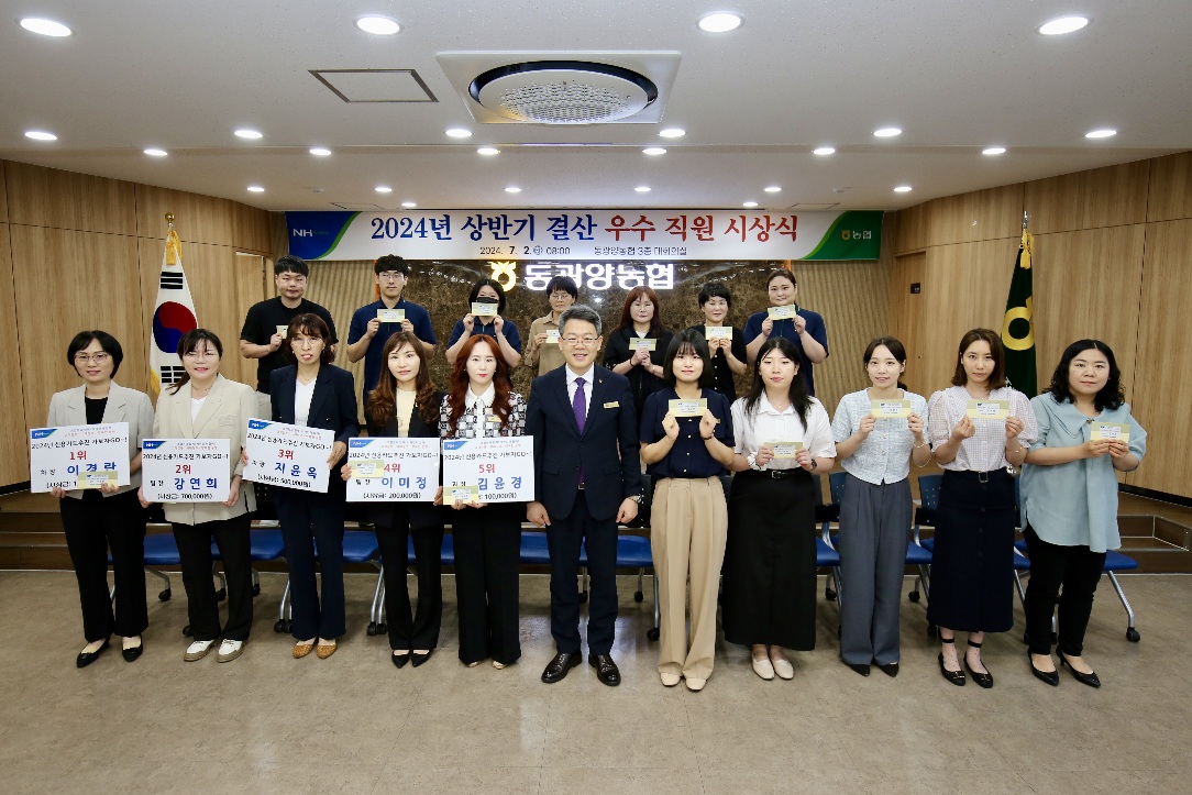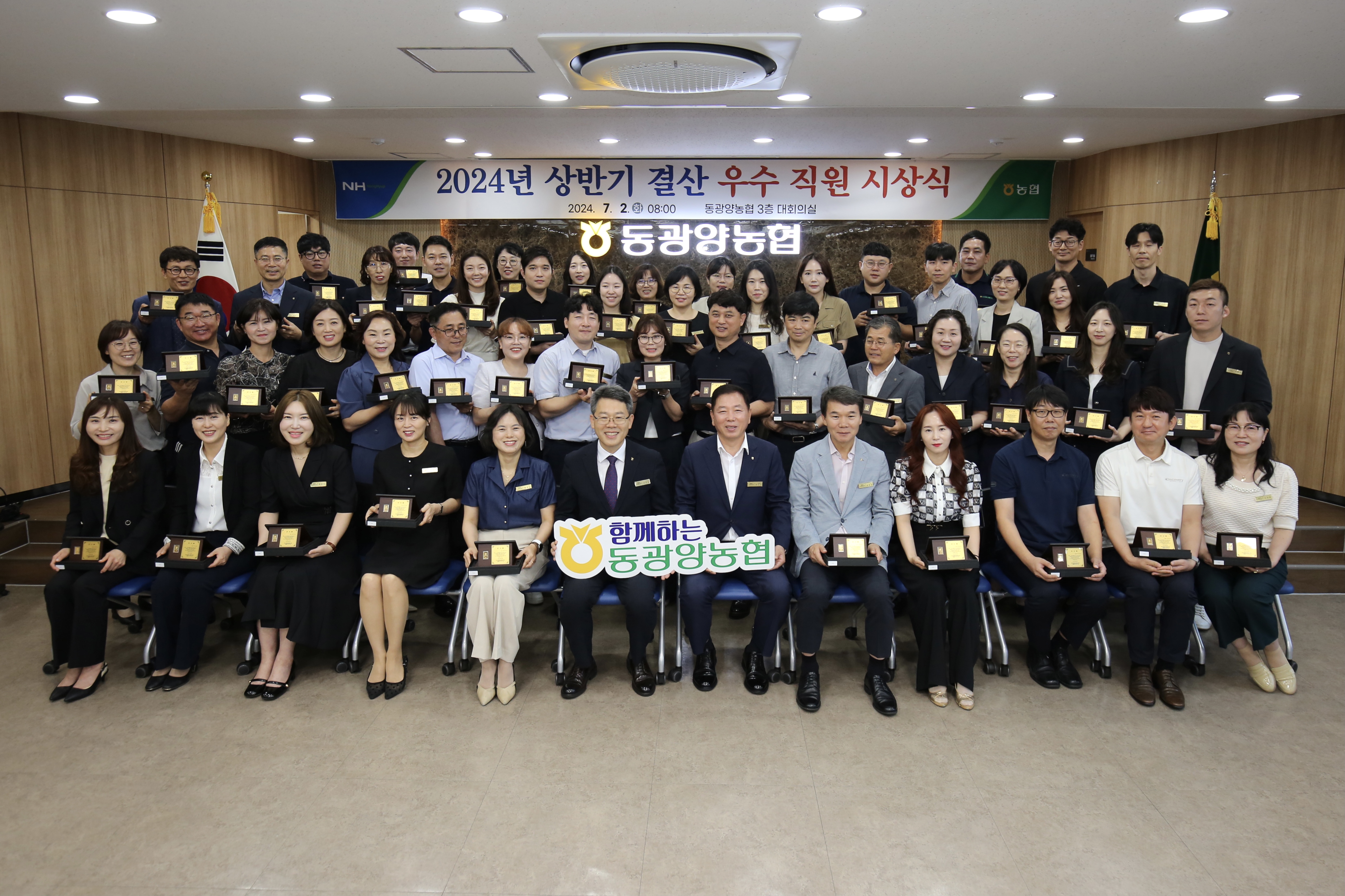 동광양농협(조합장 이돈성)이 지난 2일 본점 3층 대회의실에서 2024년 상반기 결산 시상식을 열었다.