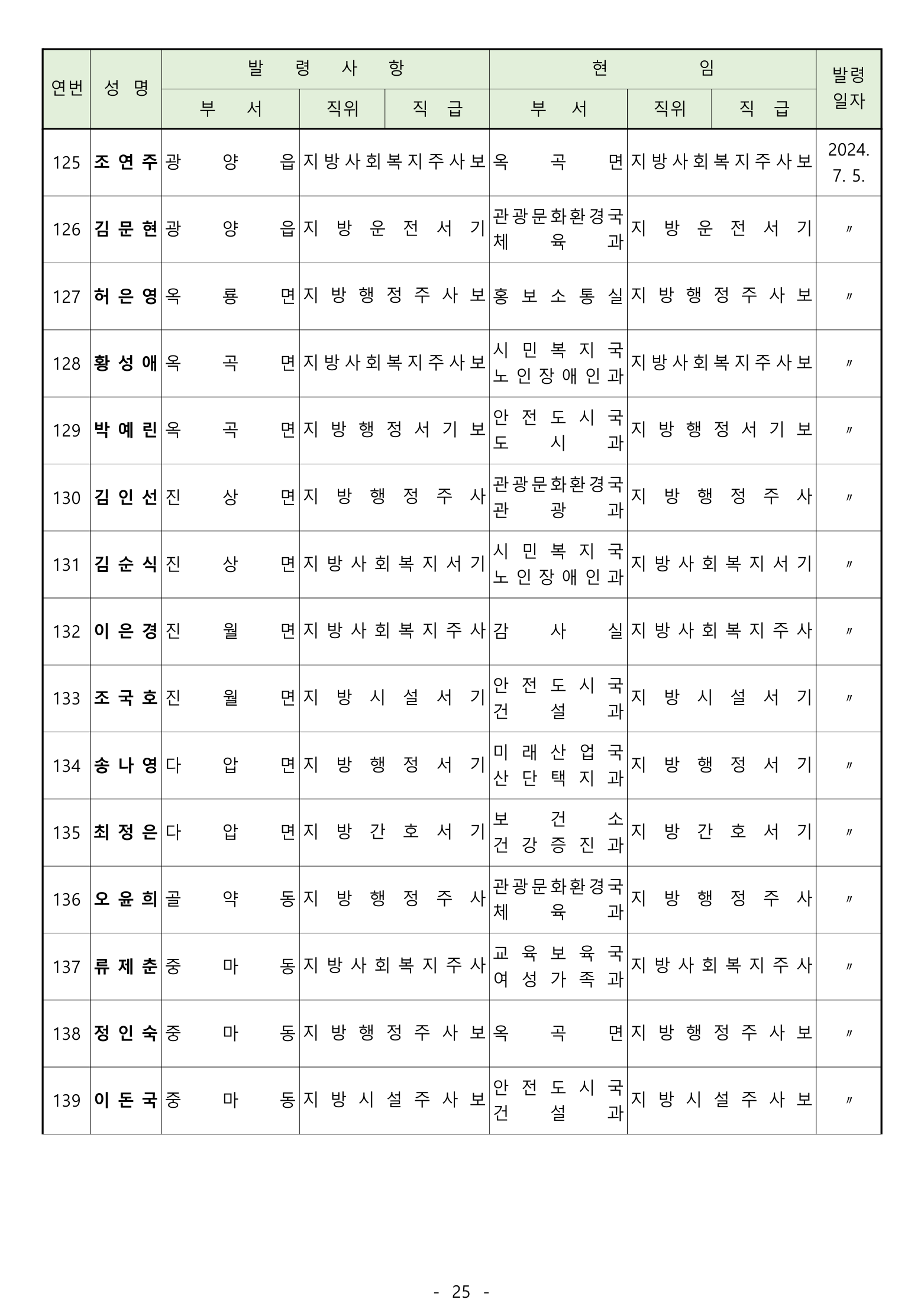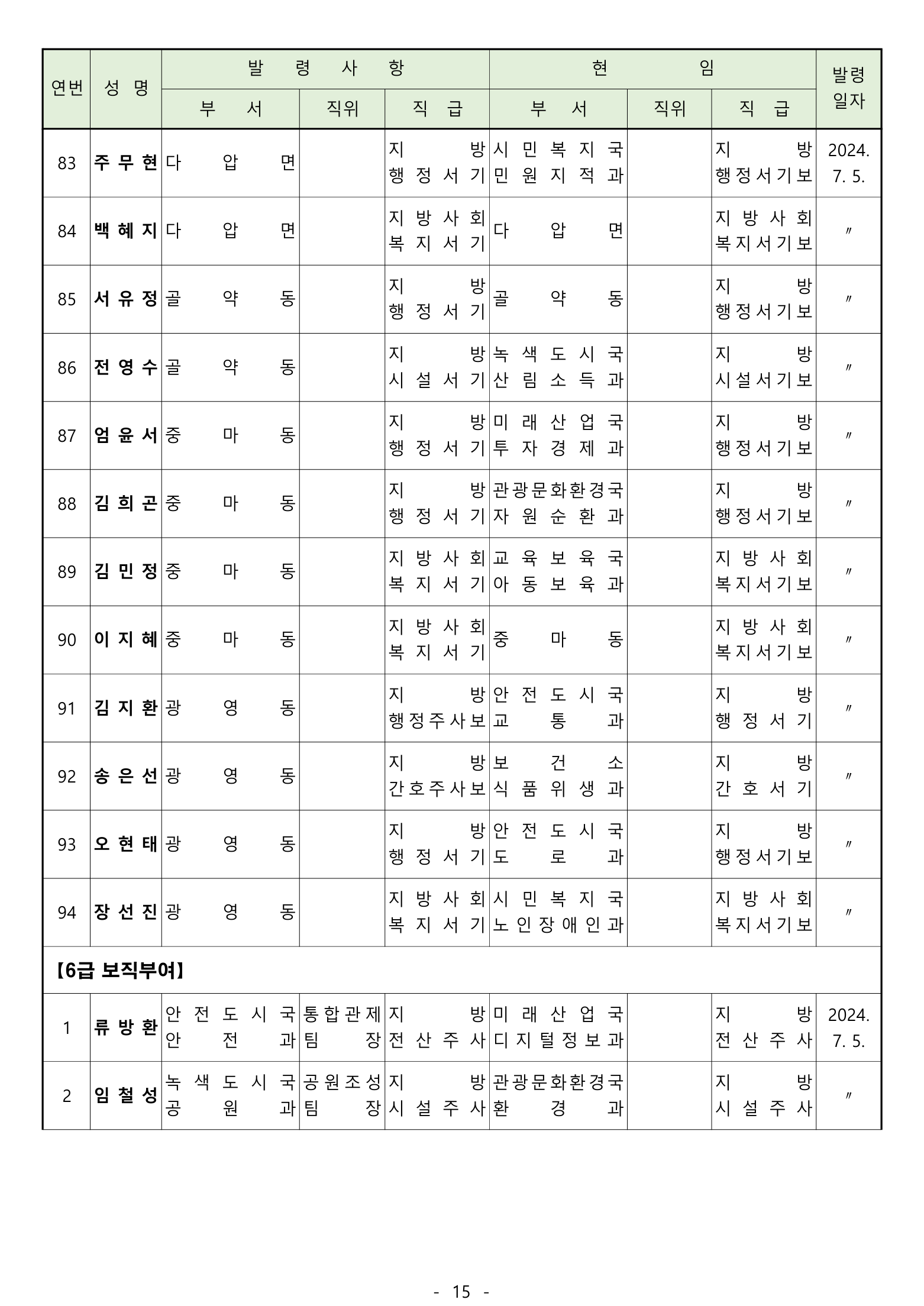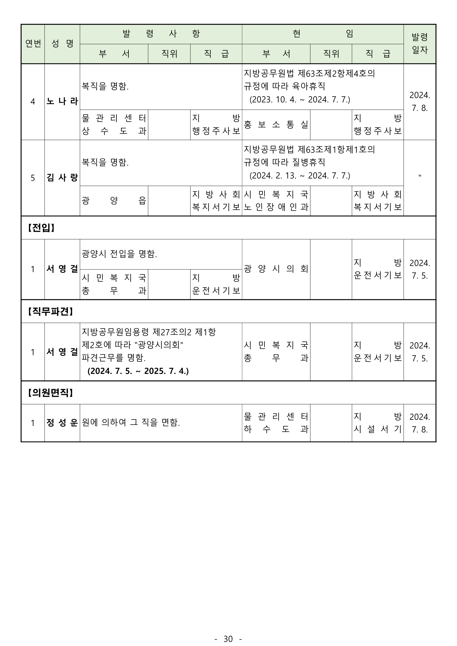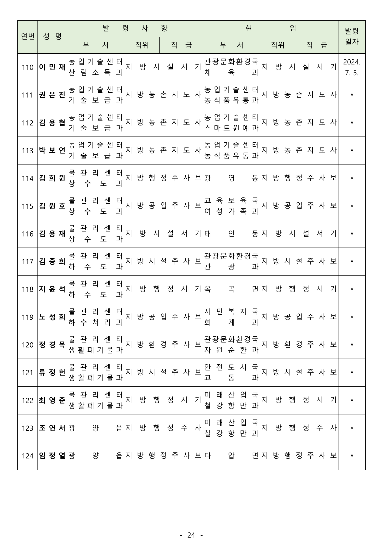 [광양] 유경열 대표기자=광양시는 2024년 후반기 "인사발령"을 발표하였다.
