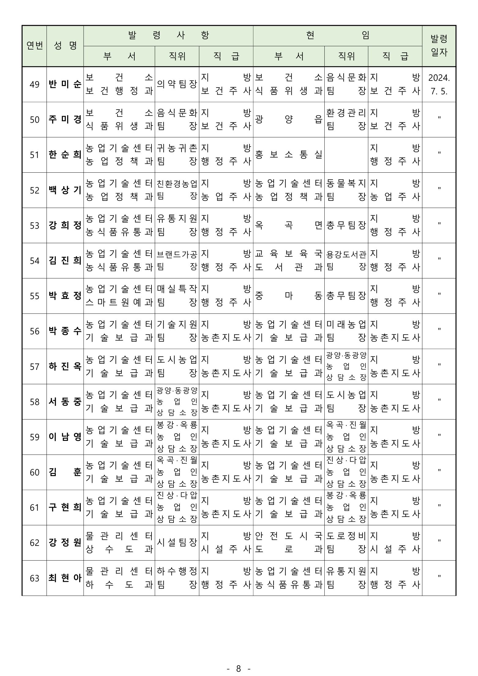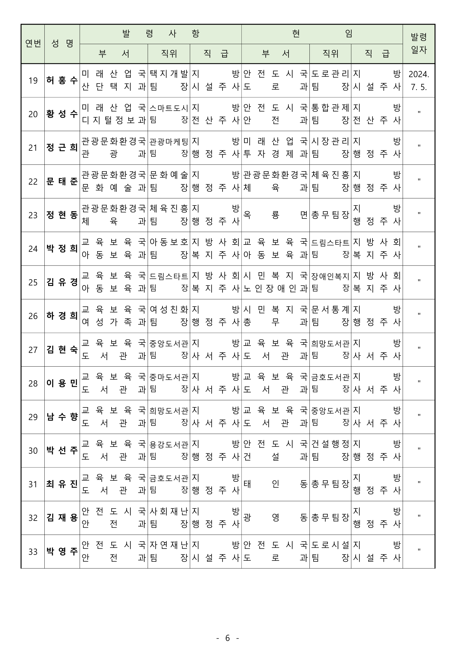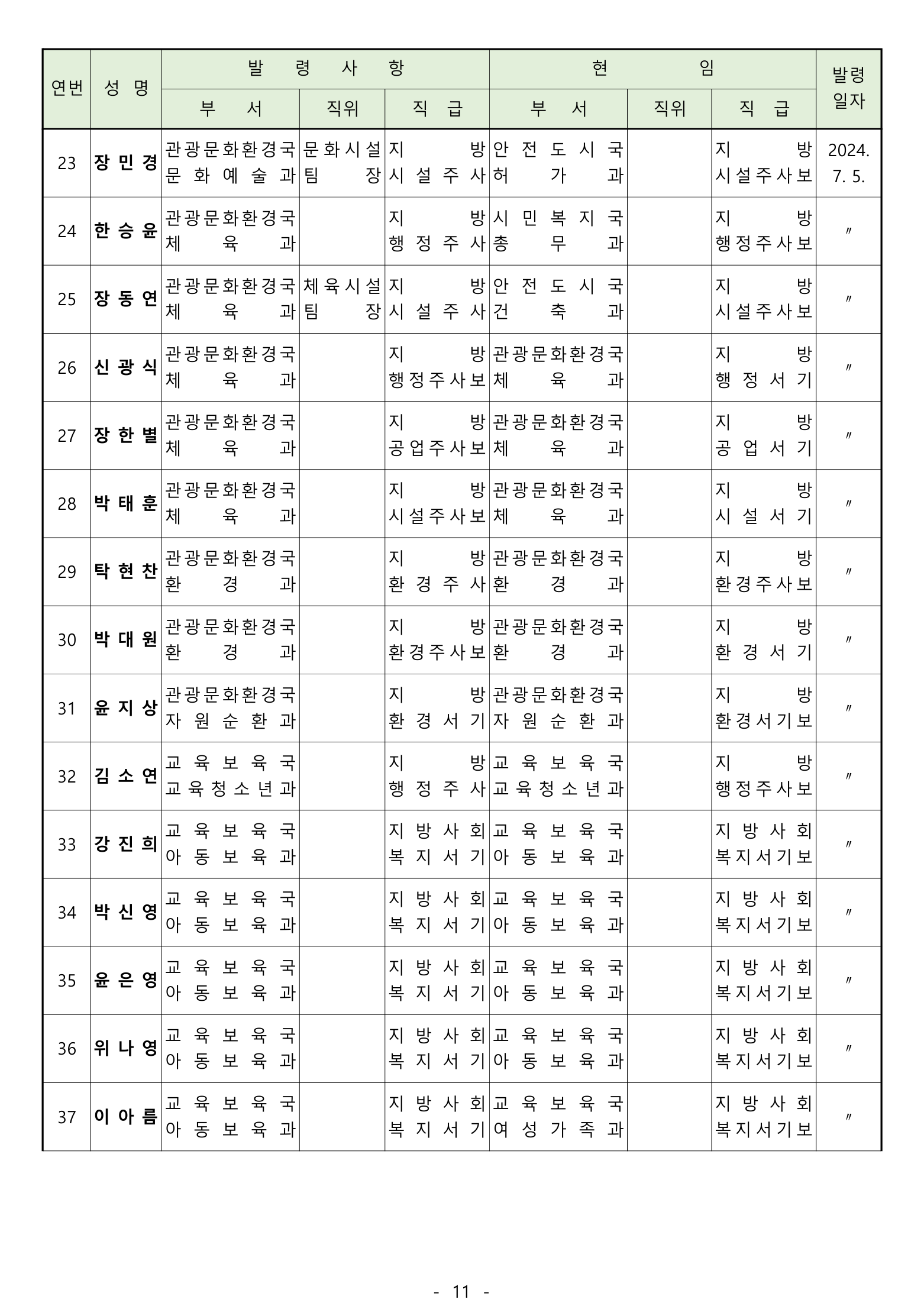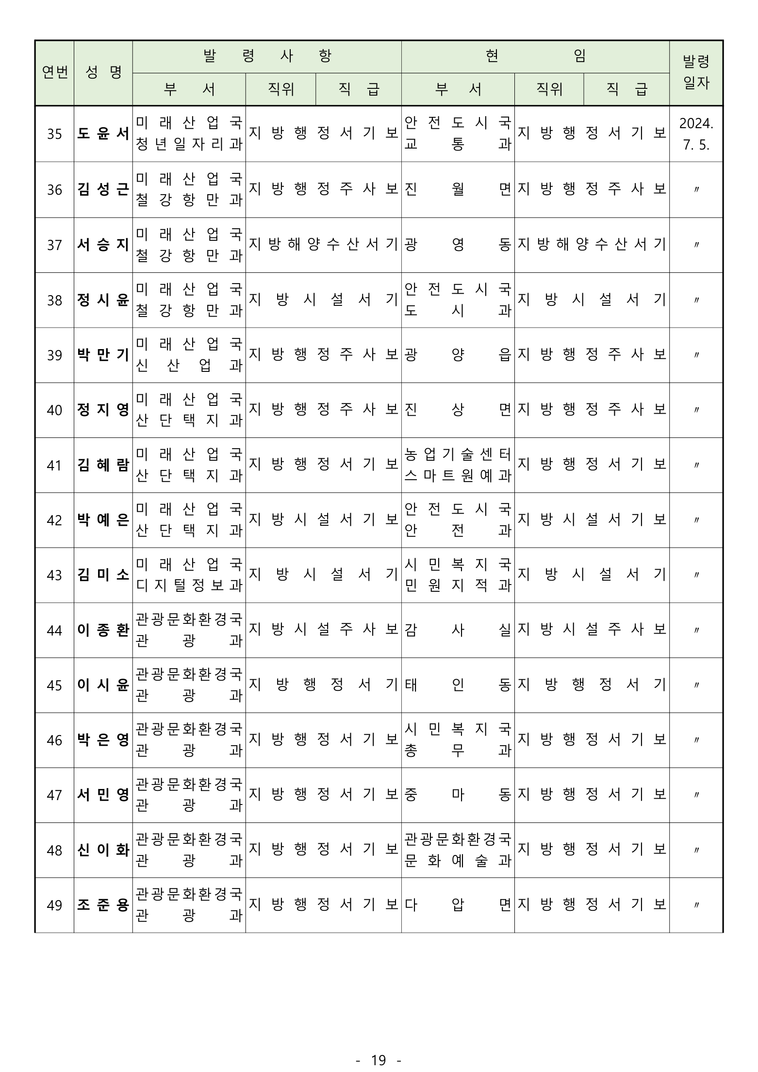 [광양] 유경열 대표기자=광양시는 2024년 후반기 "인사발령"을 발표하였다.