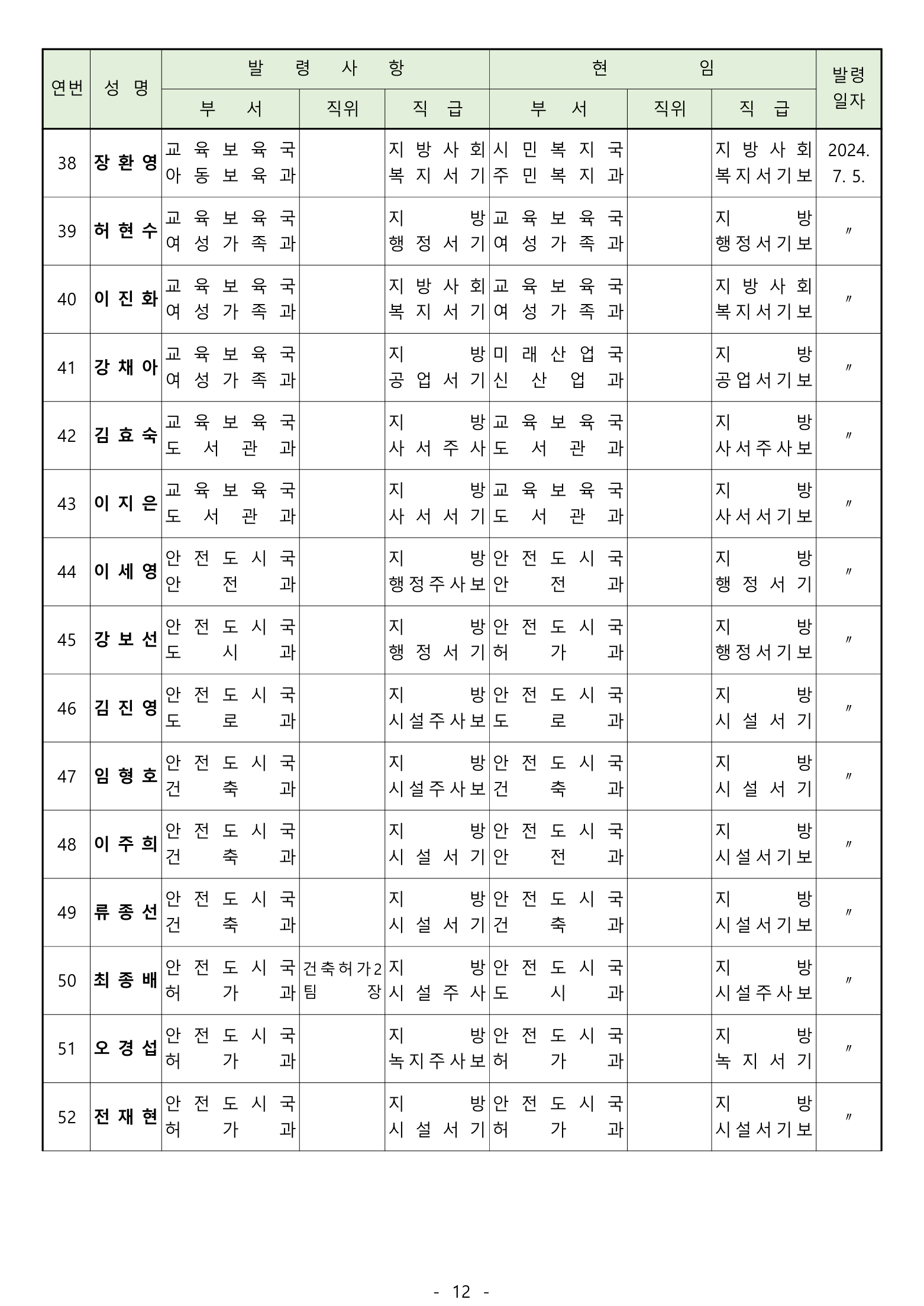 보직부여 :12명