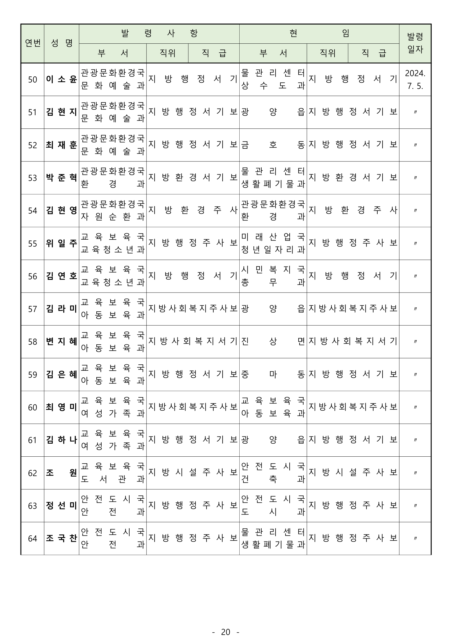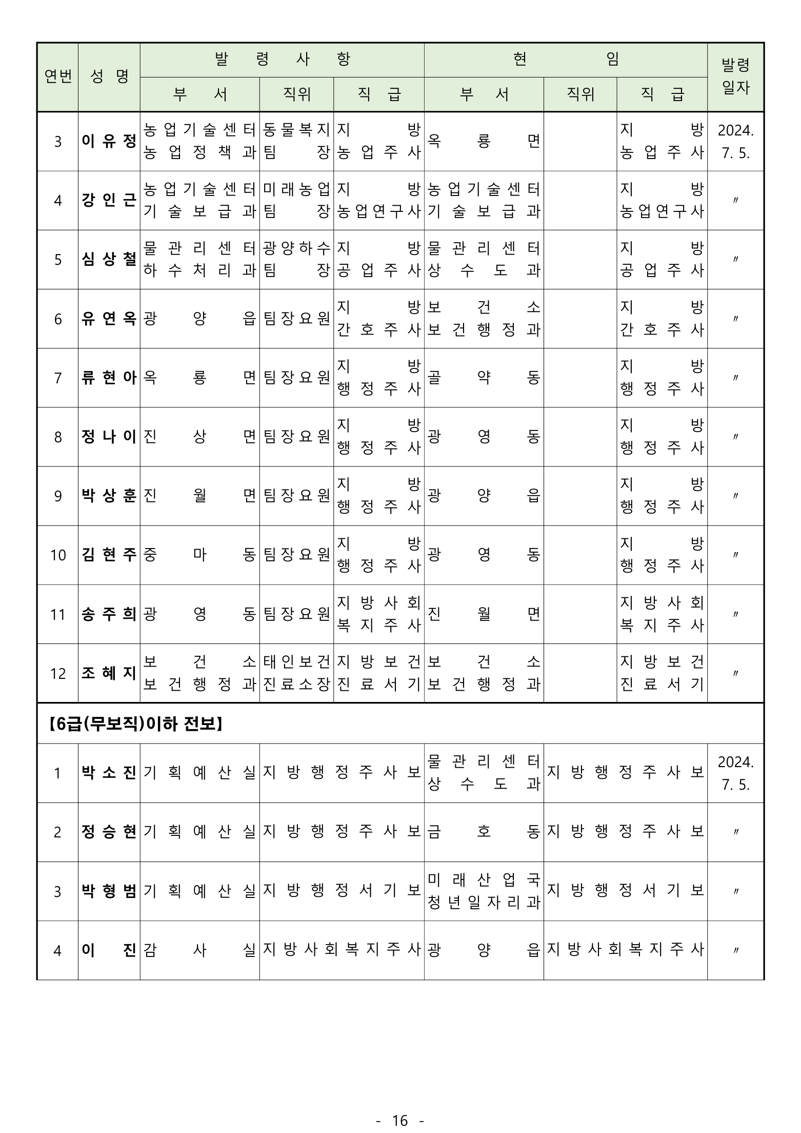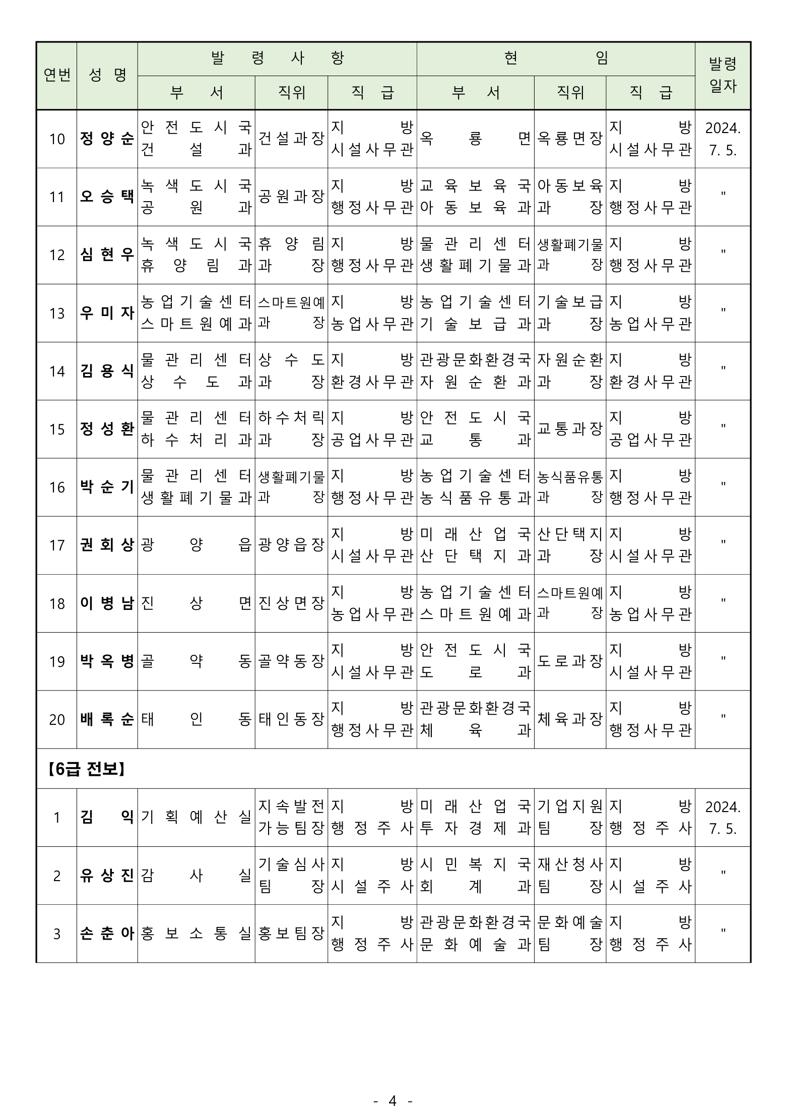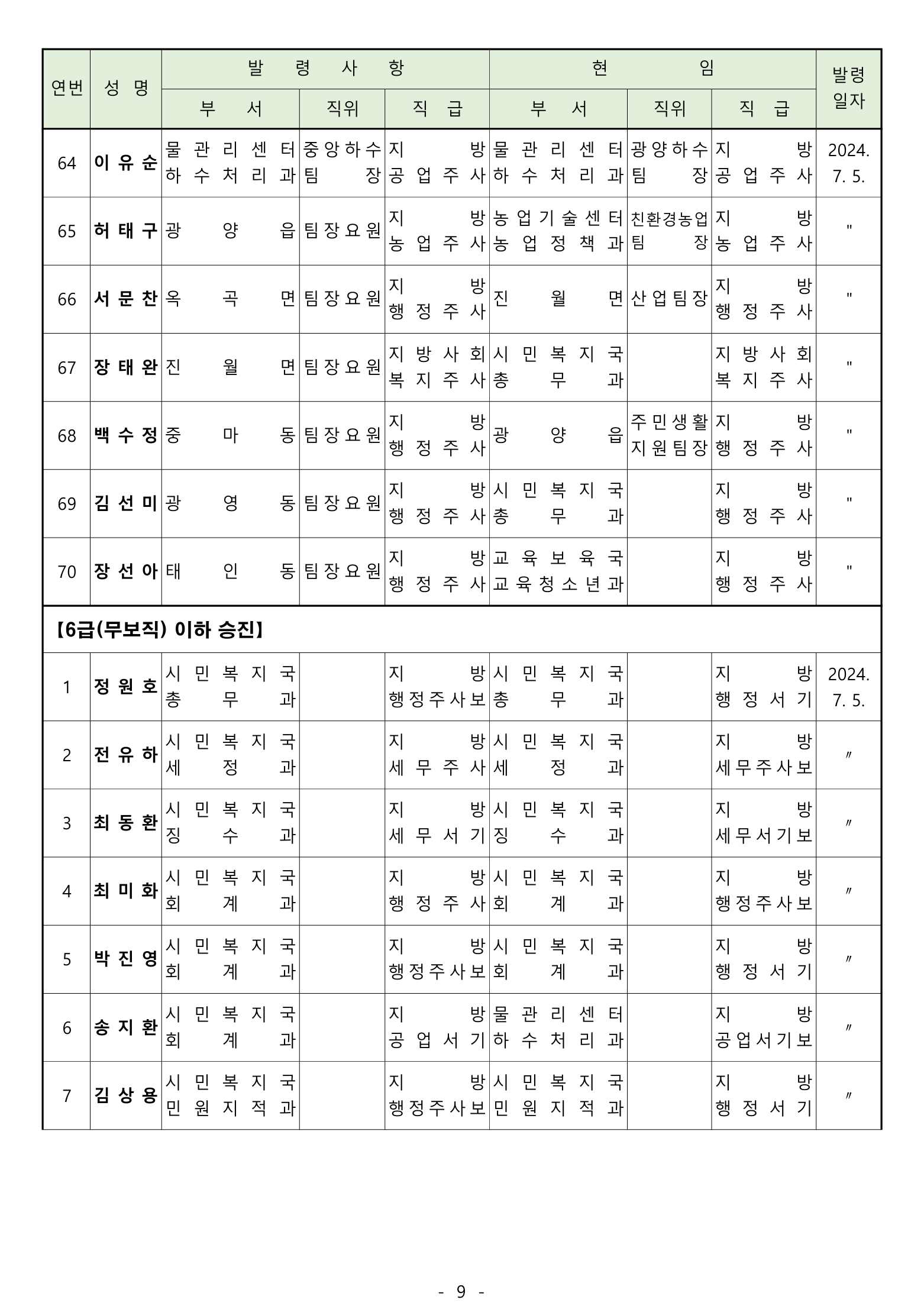 전보 : 238명 [4급 4명 / 5급 20명 / 6급 70명 / 6급(무보직) 이하 144명