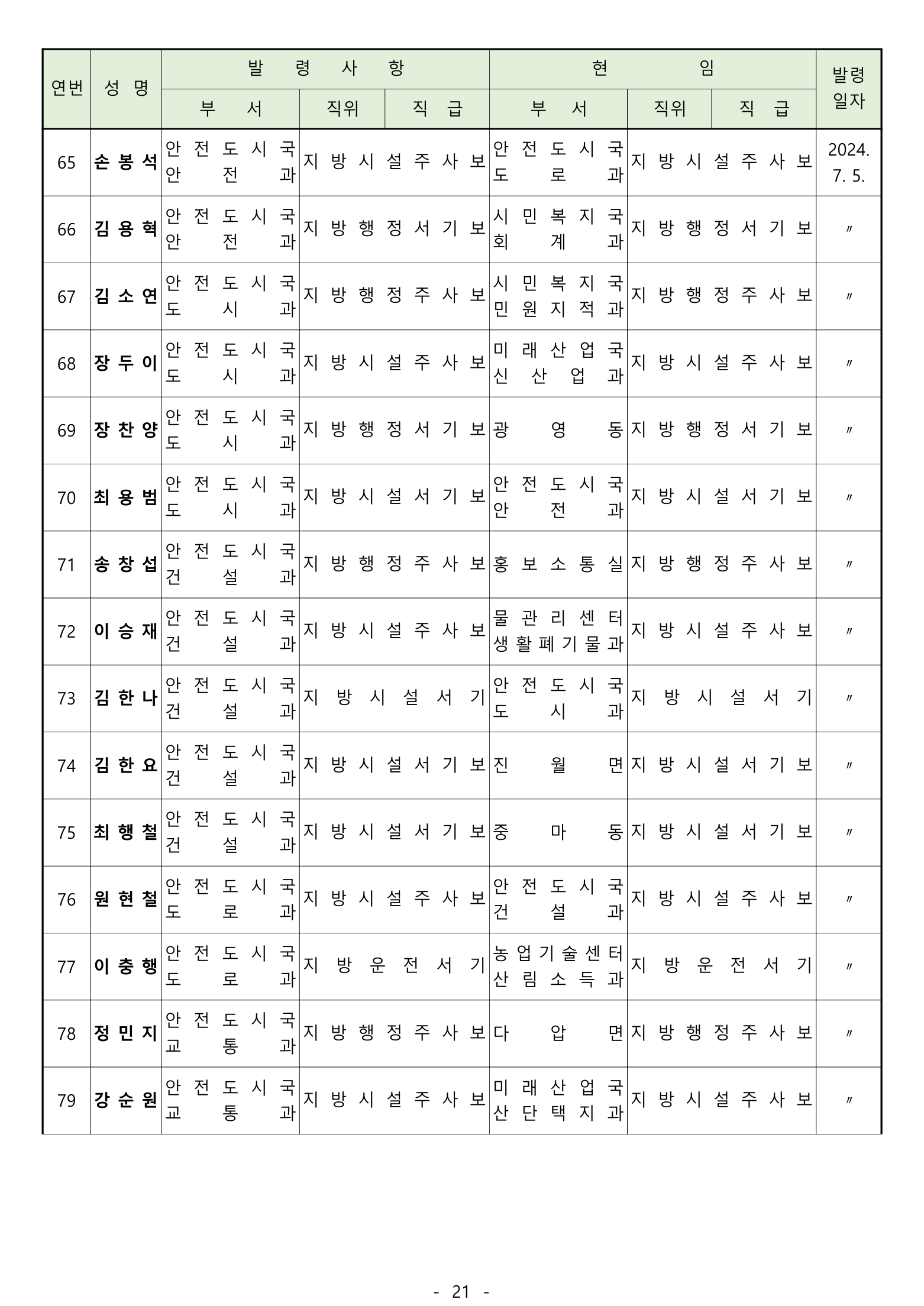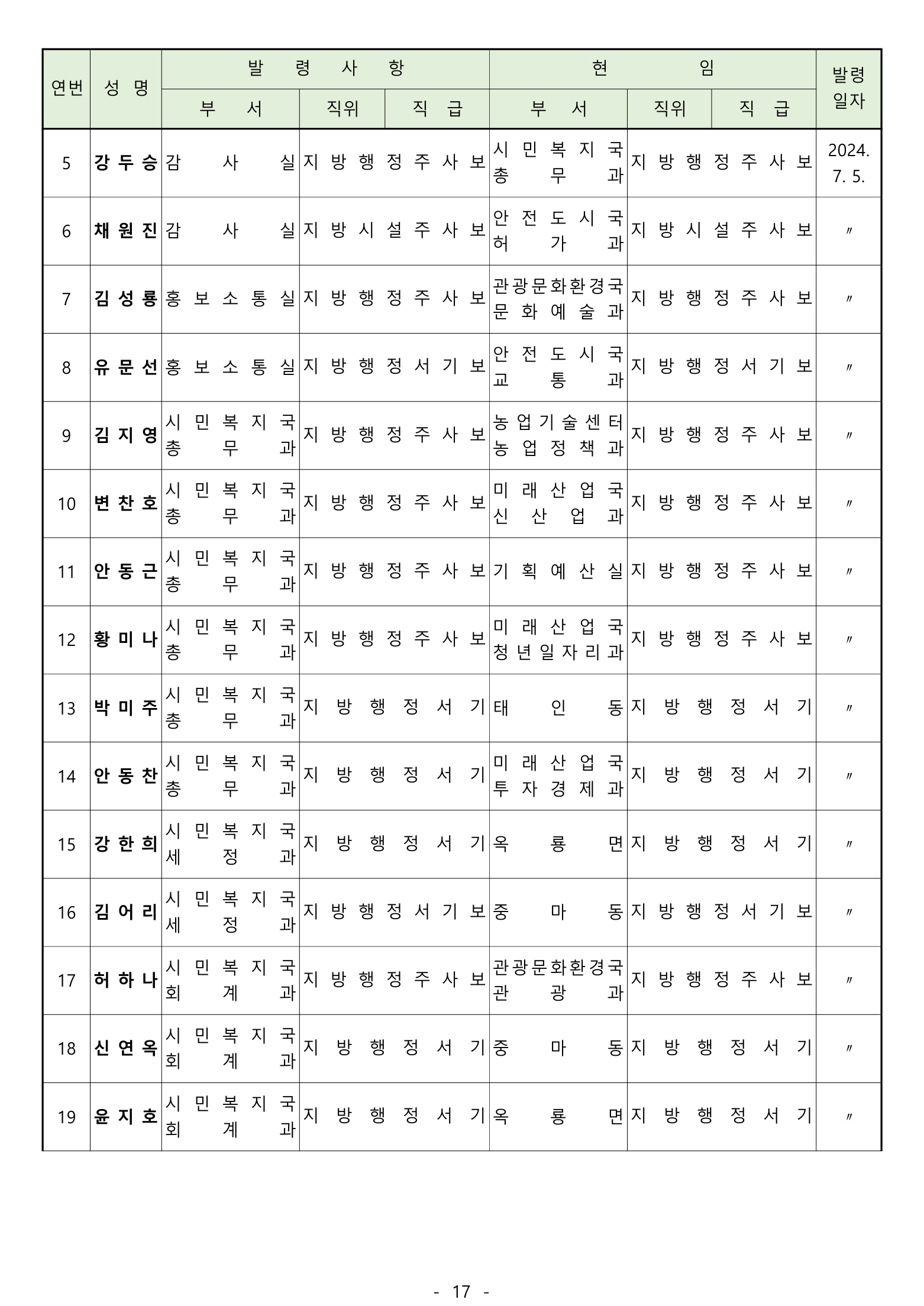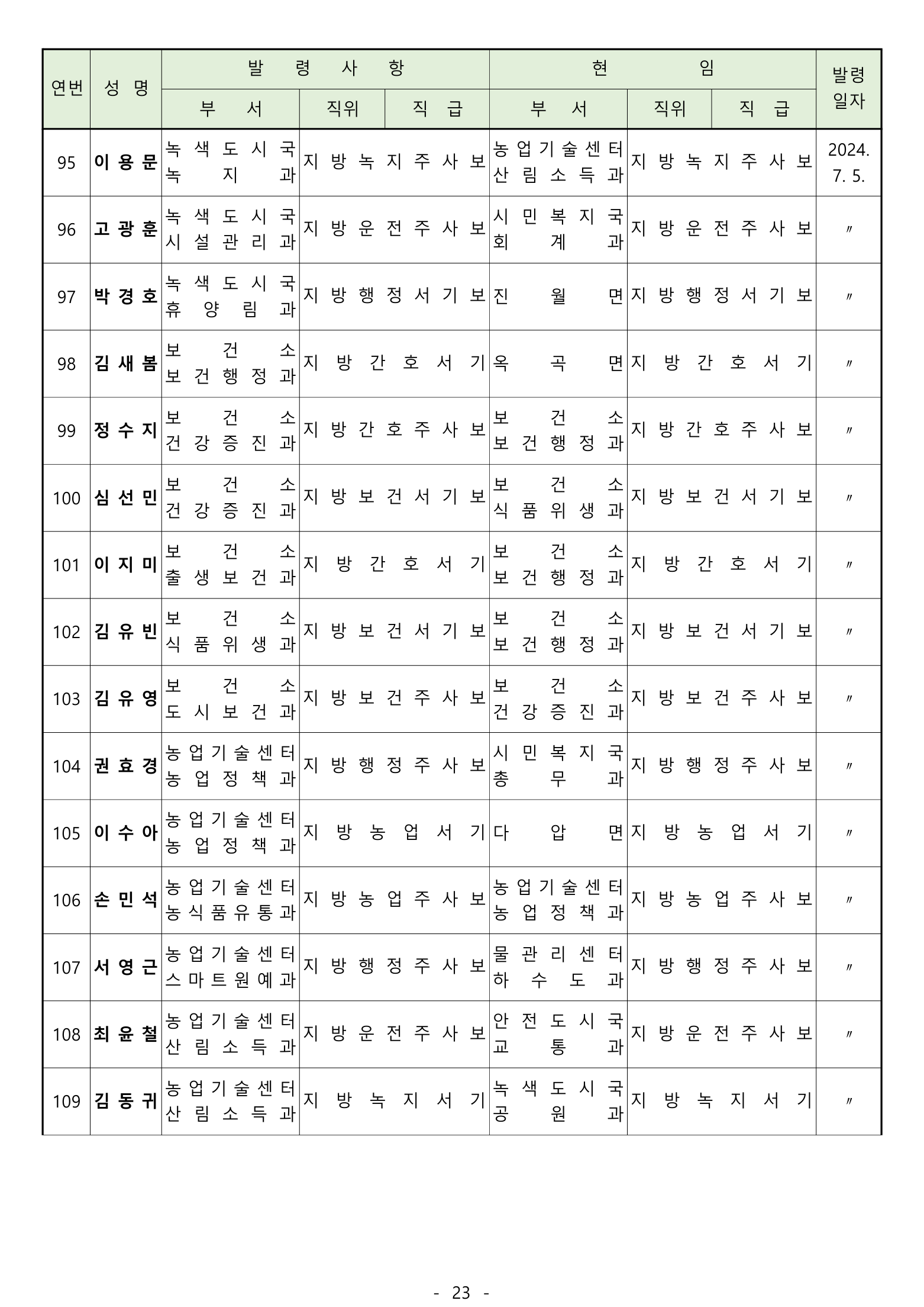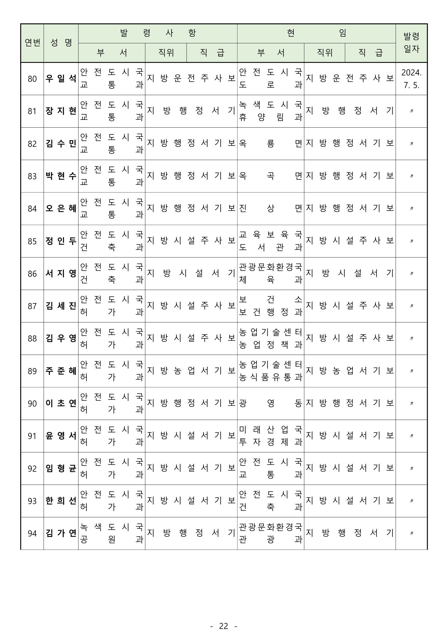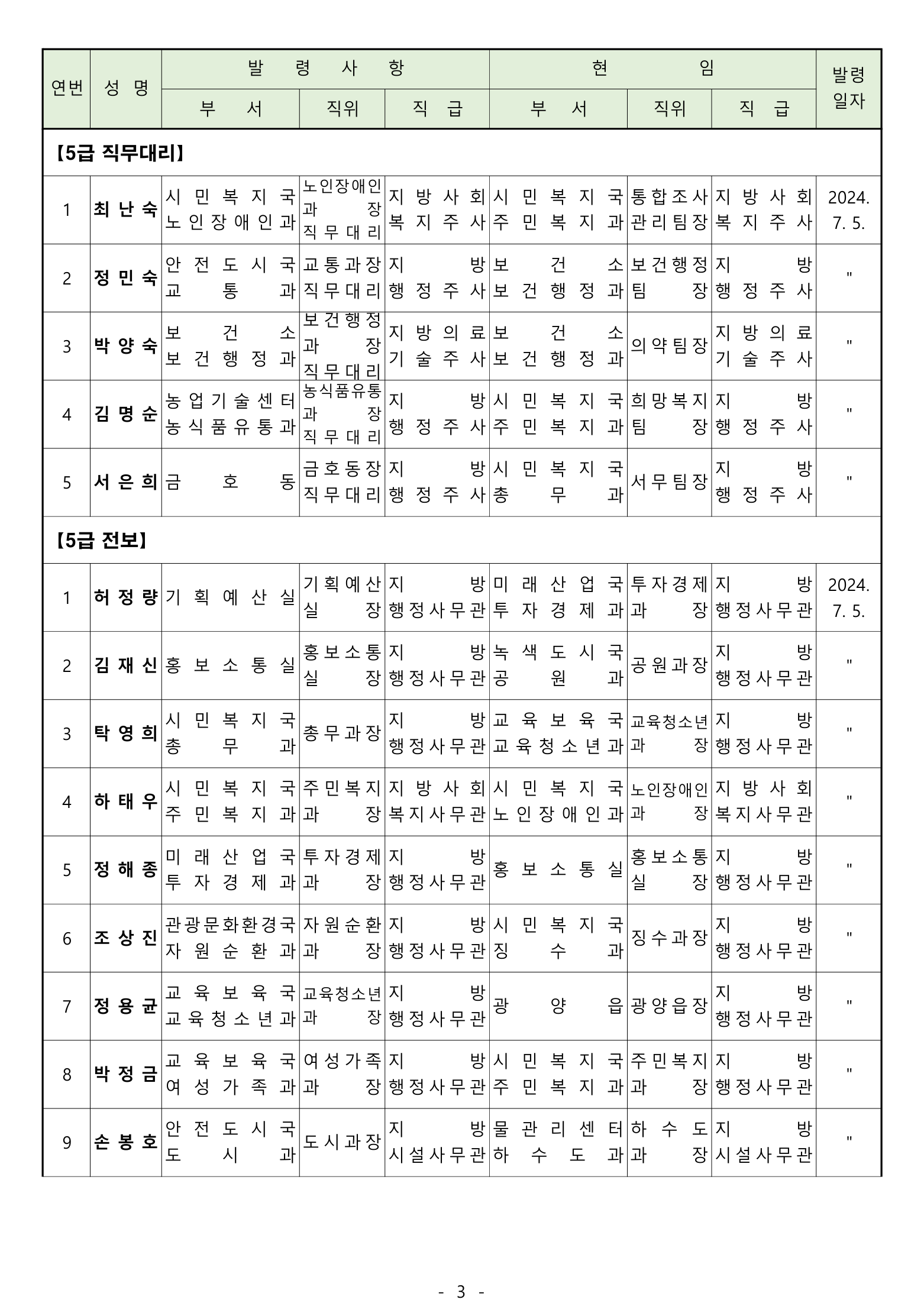 전보 : 238명 [4급 4명 / 5급 20명 / 6급 70명 / 6급(무보직) 이하 144명