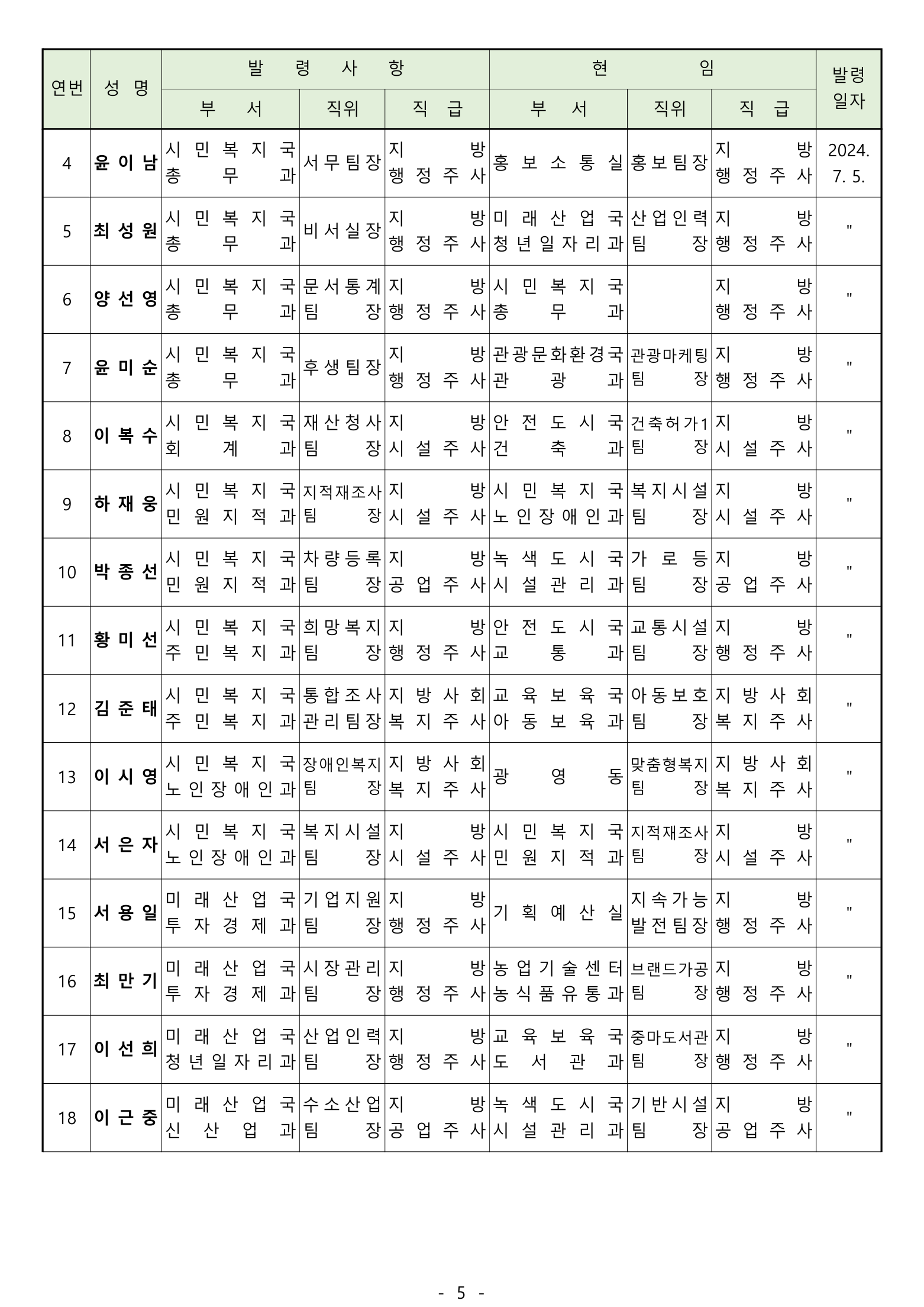 직무대리 :5명