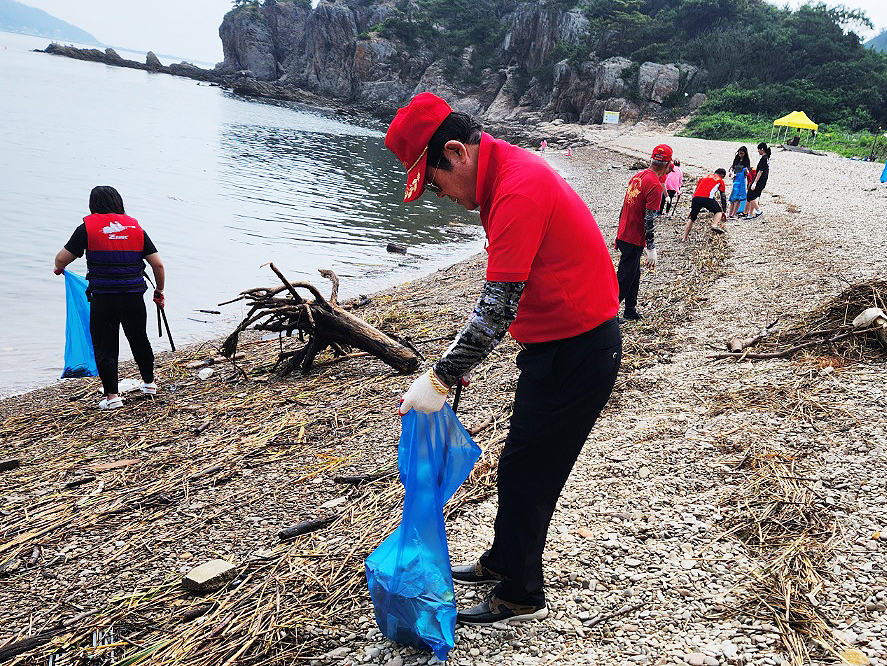 이날 신지도 몽돌해수욕장 정화활동은 수중에서도 진행되어 앞으로 시작될 여름성수기 해수욕장