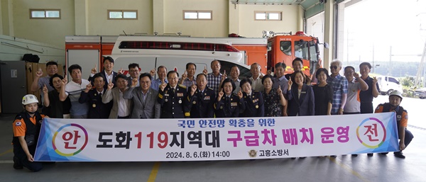 고흥소방서(서장 서승호)는 6일 송형곤 ․ 박선준 도의원을 비롯한 군의원, 기관단체장, 이장단 등 70여 명이 참석한 가운데 도화119구급차 배치 ․ 운영 행사를 치뤘다고 밝혔다.