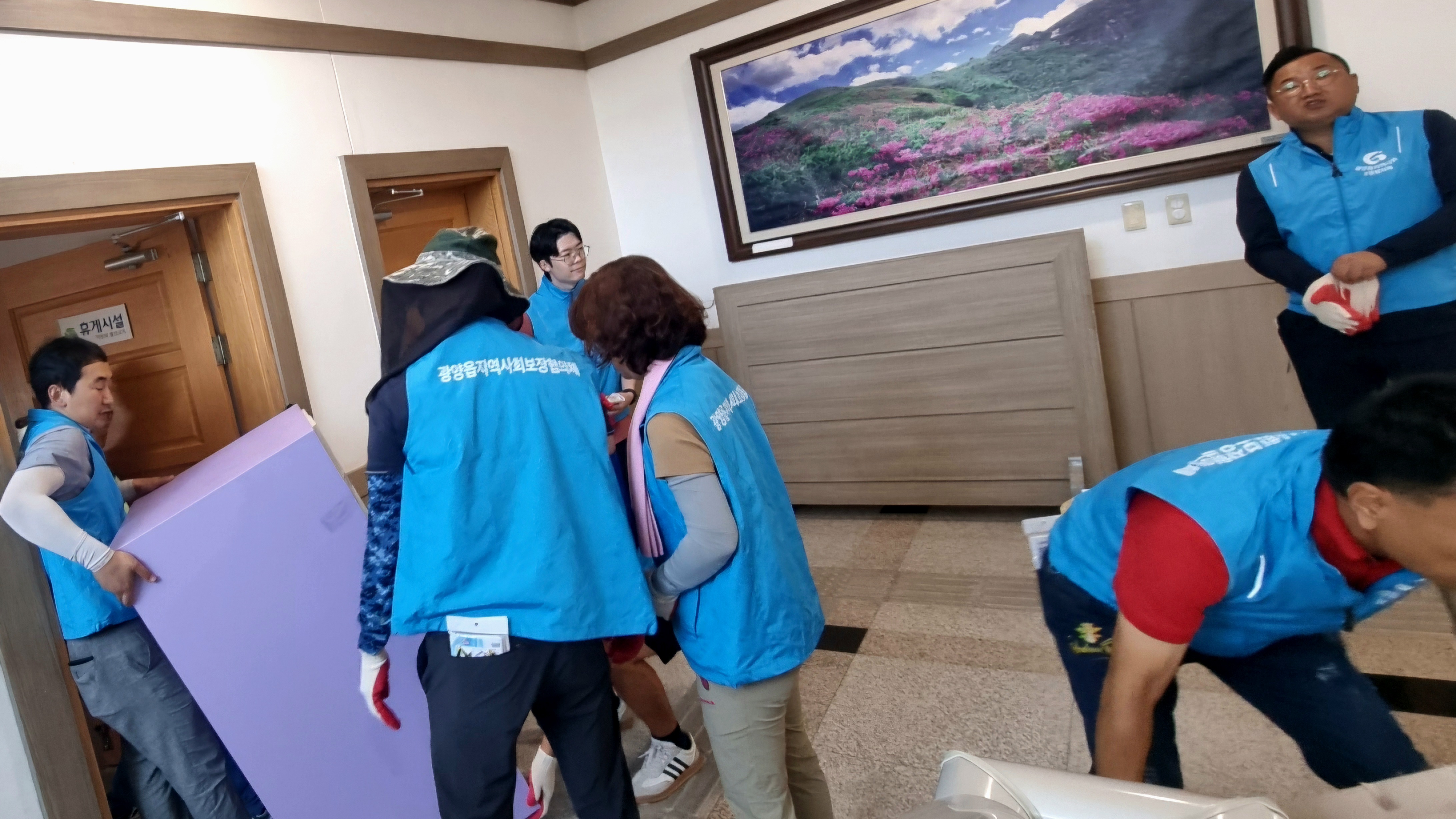 맞춤형복지팀 직원들은 23. 12. 29. 여관으로 이사한 후 여기에서 멈추지 않고 자격 검증 및 입주자 선정이 까다롭다는 LH 비정상거처 주거상향지원(열악한 주거지에서 생활하는 취약계층이 주거환경이 좋은 공공임대주택으로의 이주를 돕는 제도) 신청이 선정되어 7개월간의 긴 여관 생활을 정리하고, 광양읍지역사회보장협의체 내 새롭게 구성된 감동기동대 6명이 화물차 2대를 가져와 맞춤형복지팀과 함께 폭염 속에 굶은 땀방울을 흘리며 선한 영향력으로 아름다운 봉사활동 이사와 청소를 마쳤다.