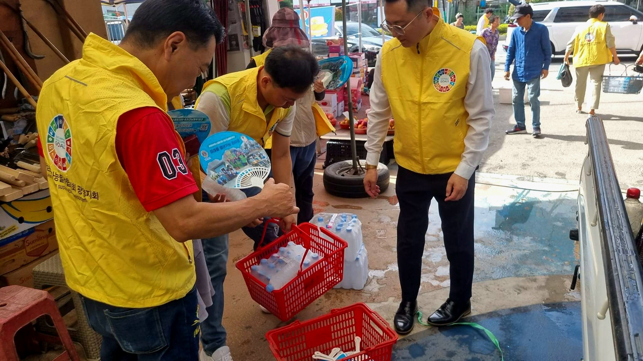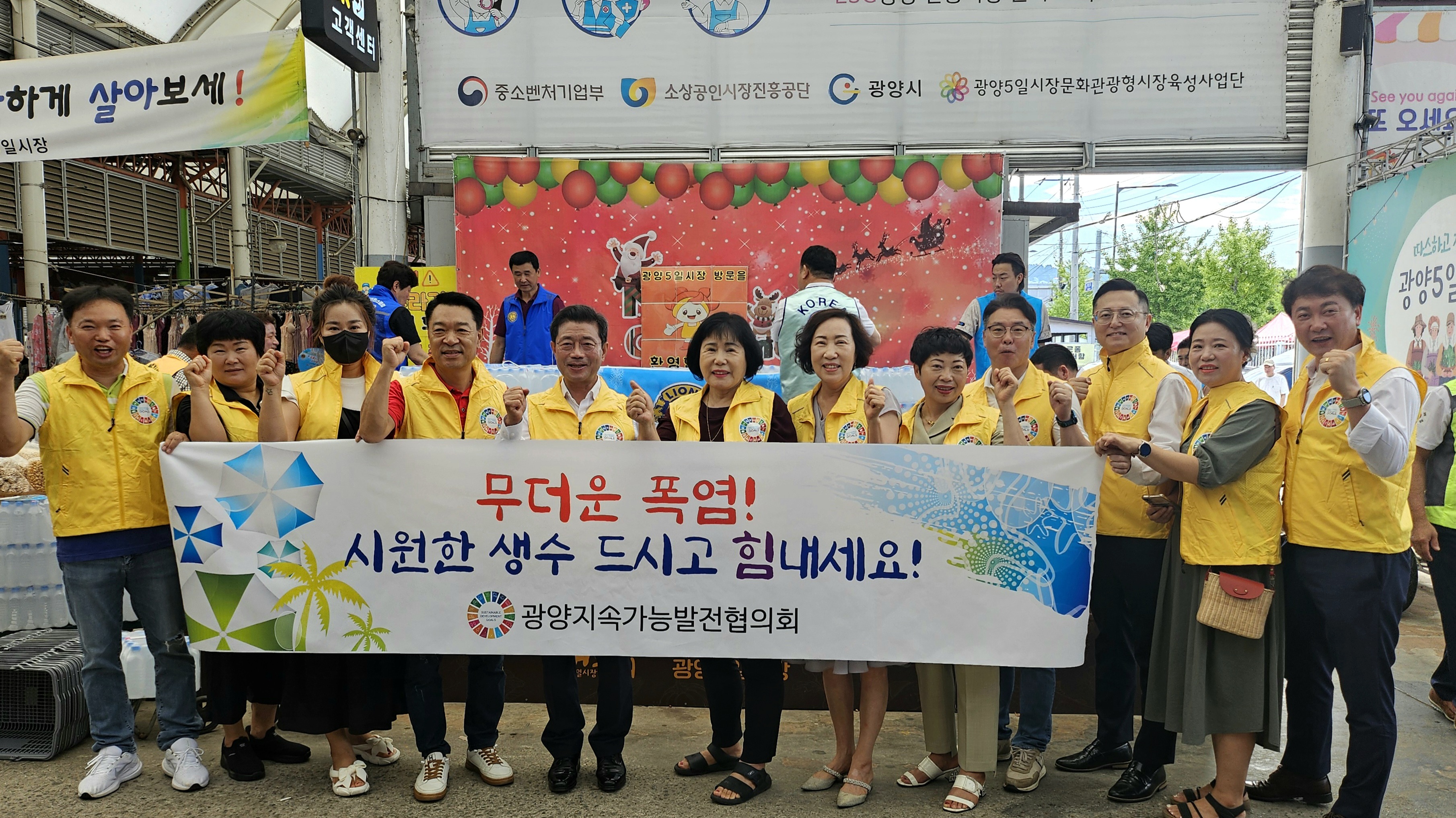 광양지속가능발전협의회(상임의장 최기자)는 지난 16일 회원들과 함께 장날을 맞아 광양5일시장 노점상 및 폭염에 지친 지역주민들을 위해 ‘얼음 생수 나눠주기 캠페인’을 진행했다.